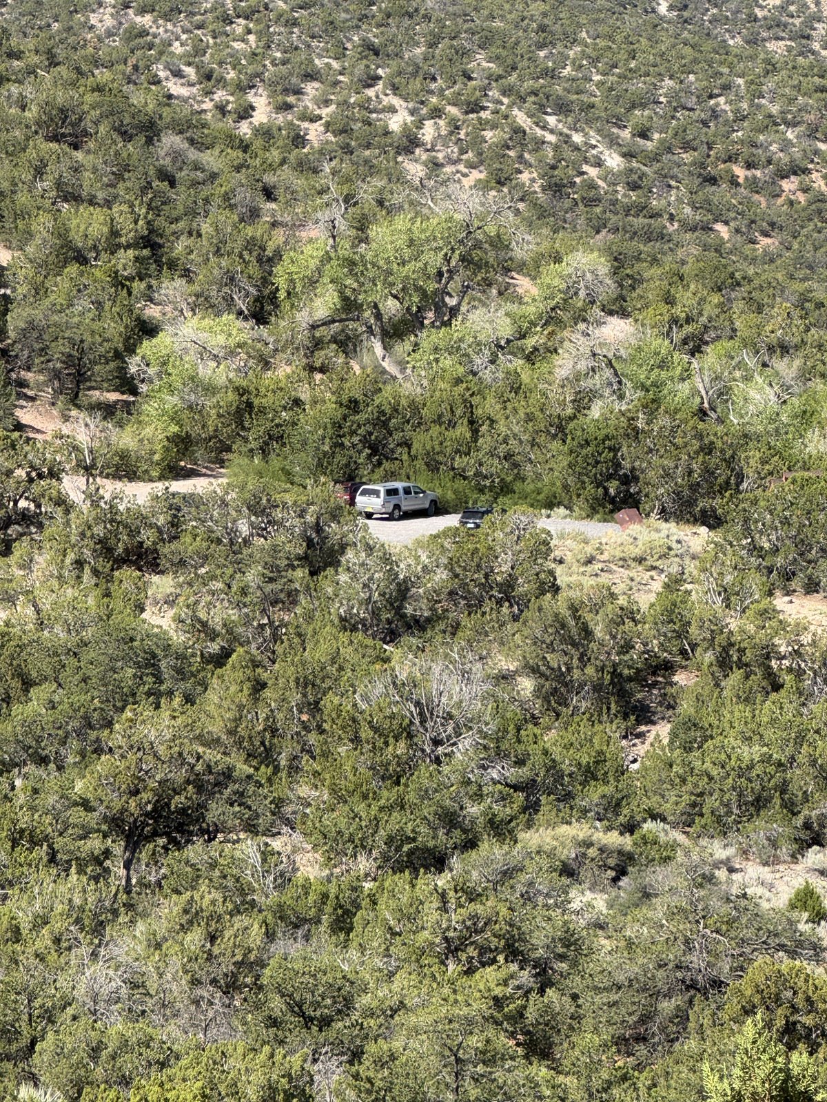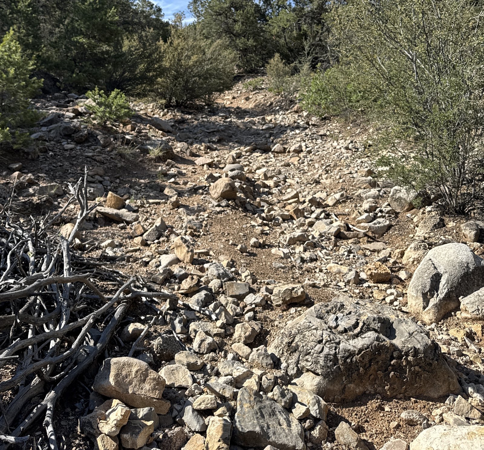 - Returning towards parking and noting on the map a parallel trail just downhill from our trail out, we descended to the right, off of the North Crest Trail onto -the real- Tunnel Spring Trail (also discovered while reviewing details on GAIA, also on AllTrails). So then on the Tunnel Spring Trail we returned to the trailhead – still a nice trail with some elevation changes.