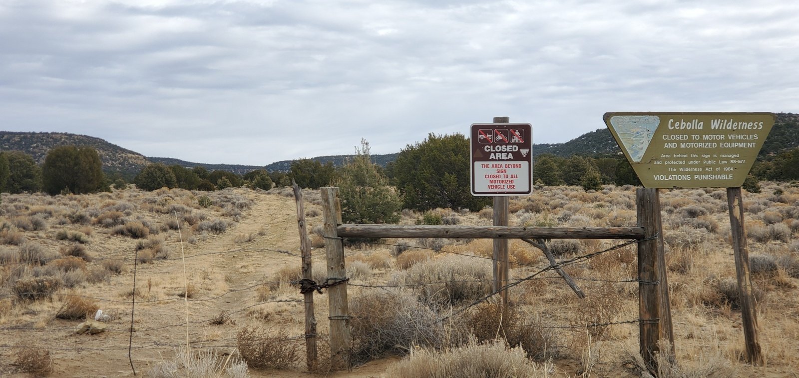 From Albuquerque, west on I-40 (68 miles), then south on NM 117 along the east edge of the Malpais. You will pass La Ventana (10 miles from I-40) then drive through the Narrows (there is a nice trail here, the Narrows Rim Trail that starts at the south end of the Narrows and goes north to a nice overlook of La Ventana). Continue on NM 117 for 16 miles, turn left onto Pie Town Road (also identified as Rd 41), a Class 3 road (New Mexico Pavement – graded and sanded). Another 3 miles, turn left onto Armijo Canyon Road, a Class 4 road. Park at the gate 1.5 miles from Pie Town Road, the boundary of the El Malpais National Conservation Area (NCA),.