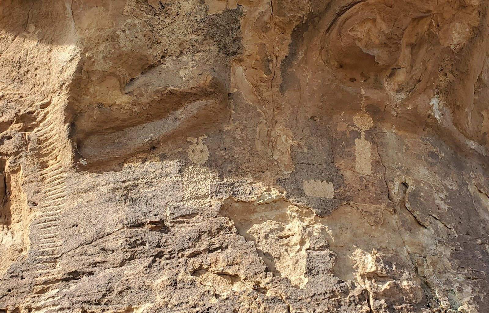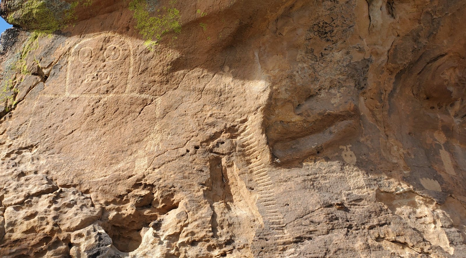 Climbing closer to the rock we found that there are other petroglyphs, some quite clear, others a bit washed out.