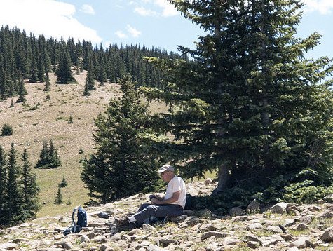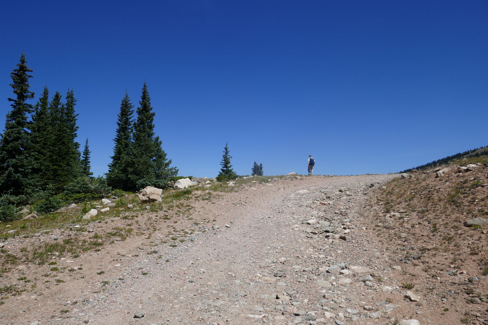 Jay here: Long uphill slog to get to a magnificent view and of course the elevation is always a reminder that most of our hiking is done well below 8,000 feet. You would think that downhill all the way back would be easier…but you would be wrong. It still requires you to put one foot behind the other.