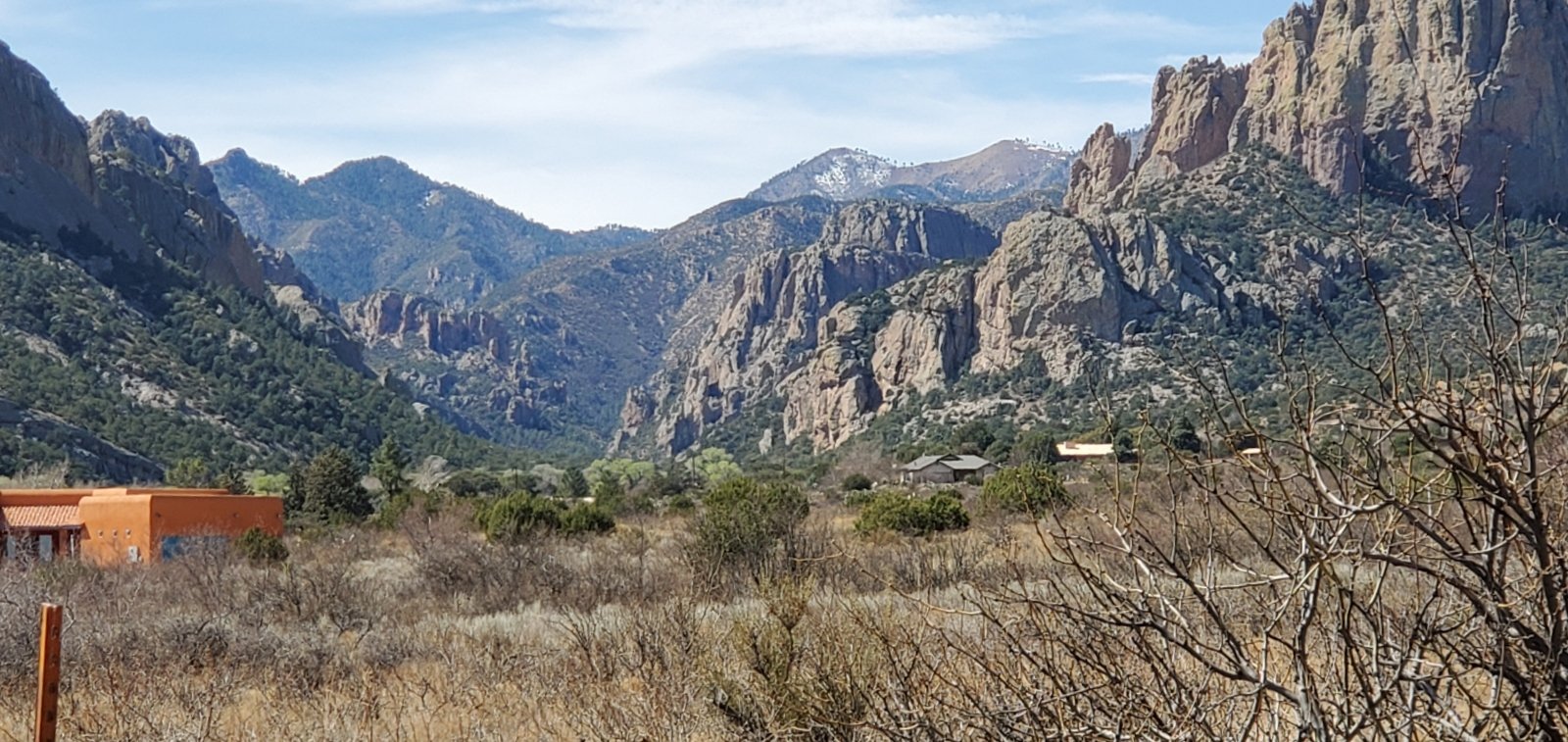 We had been advised that there were no services nearby – no gas, food, lodging, or internet service; fill up your gas tank in Lordsburg. We found otherwise: yes, no gas, but a small general store in Portal with the basic necessities (and a small menu plus beer) and lodging (Portal Peak Lodge, Store, & Cafe), and the Sky Island Grill and Grocery with a larger inventory of groceries and cafe menu. Internet service is available at both places courtesy their WiFi; cellular service is not available in the canyon and spotty even out in the open on the road between Portal and Rodeo.