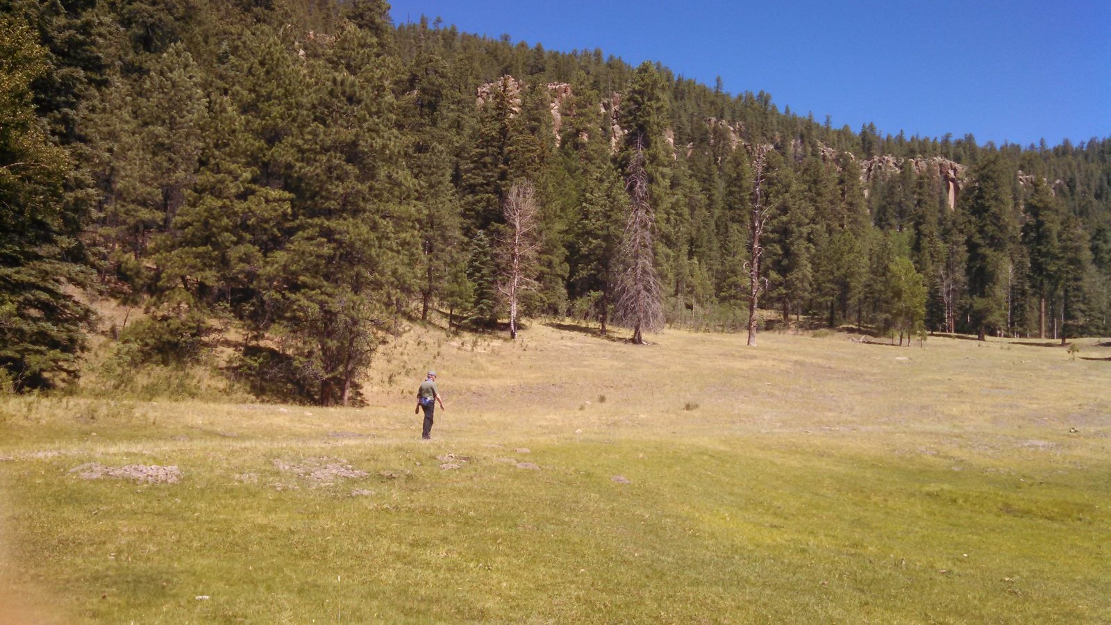 Jay here: I had done this hike with a group way back in July of 2009 after just moving to New Mexico. It was great to get back to a hike that traverses meadow land most of the way (no cows this time). The Diego fire was burning in the Jemez that weekend, so this was an introduction to that annual summertime threat.