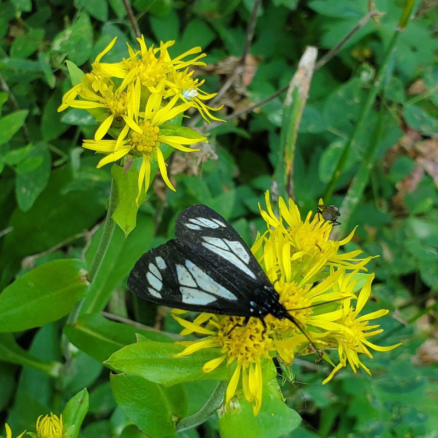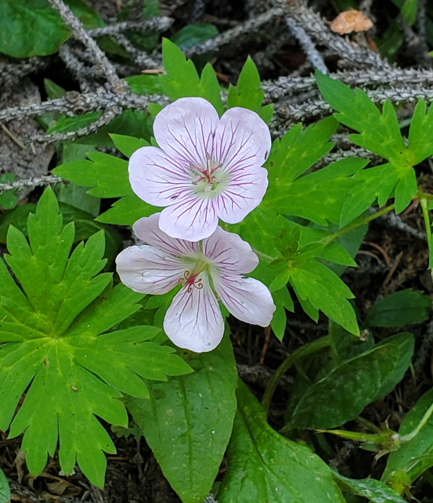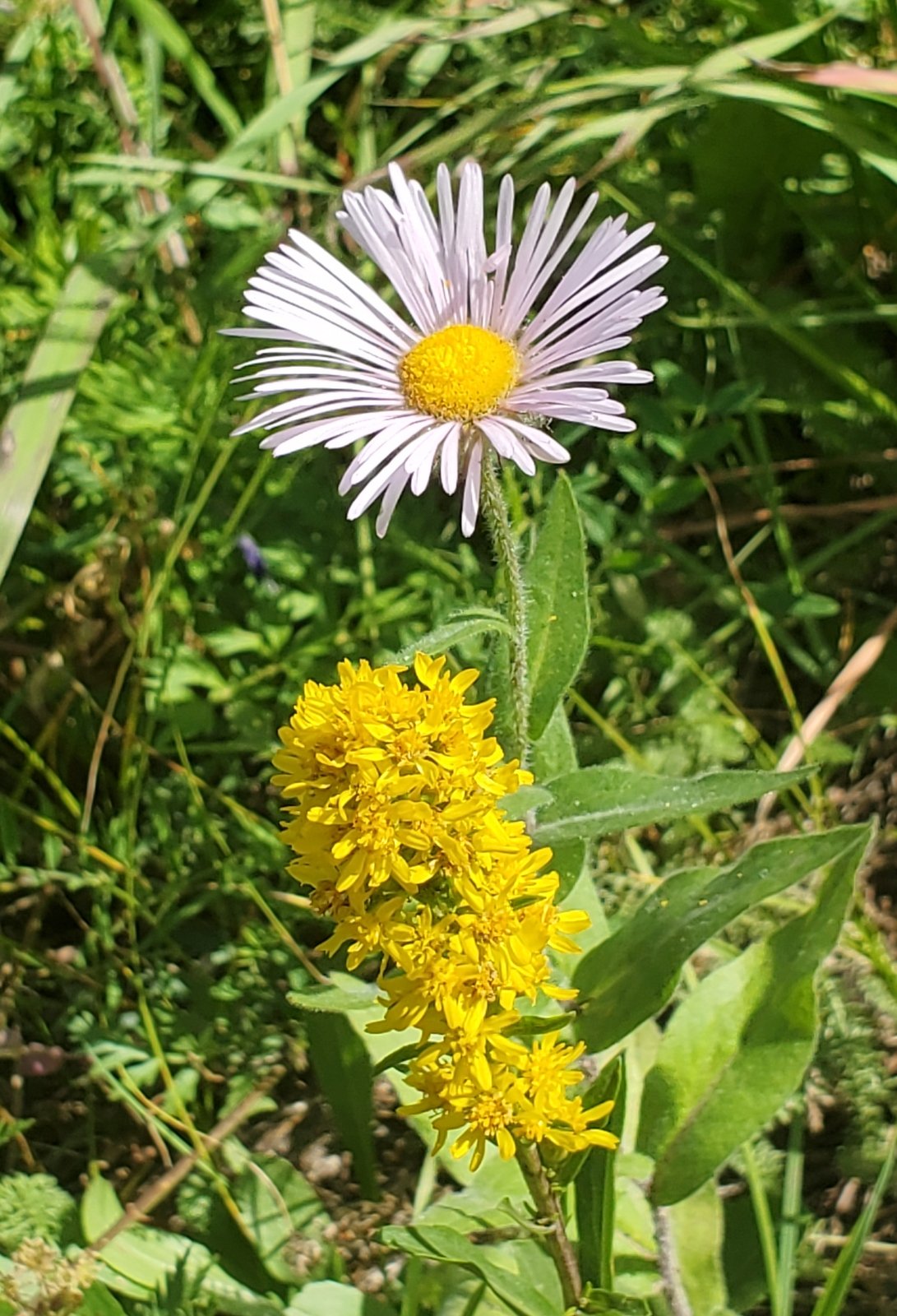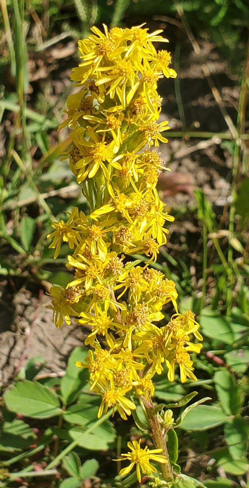 As it was for the CDT North, the trail is well used, smooth ground bordered by very green grasses with an abundance of flowers. From just under 10,000 feet elevation, the trail climbs a couple of hundred feet in the first half mile, then descends a bit on the top of a ridge for 3/4 mile. The views are spectacular, to the west towards Chama down the Wolf Creek valley. For the next 1.25 miles the trail climbs close to 500 feet, up to 10,469 feet elevation. Most of the distance is in open grassland with parcels of forest along the way.