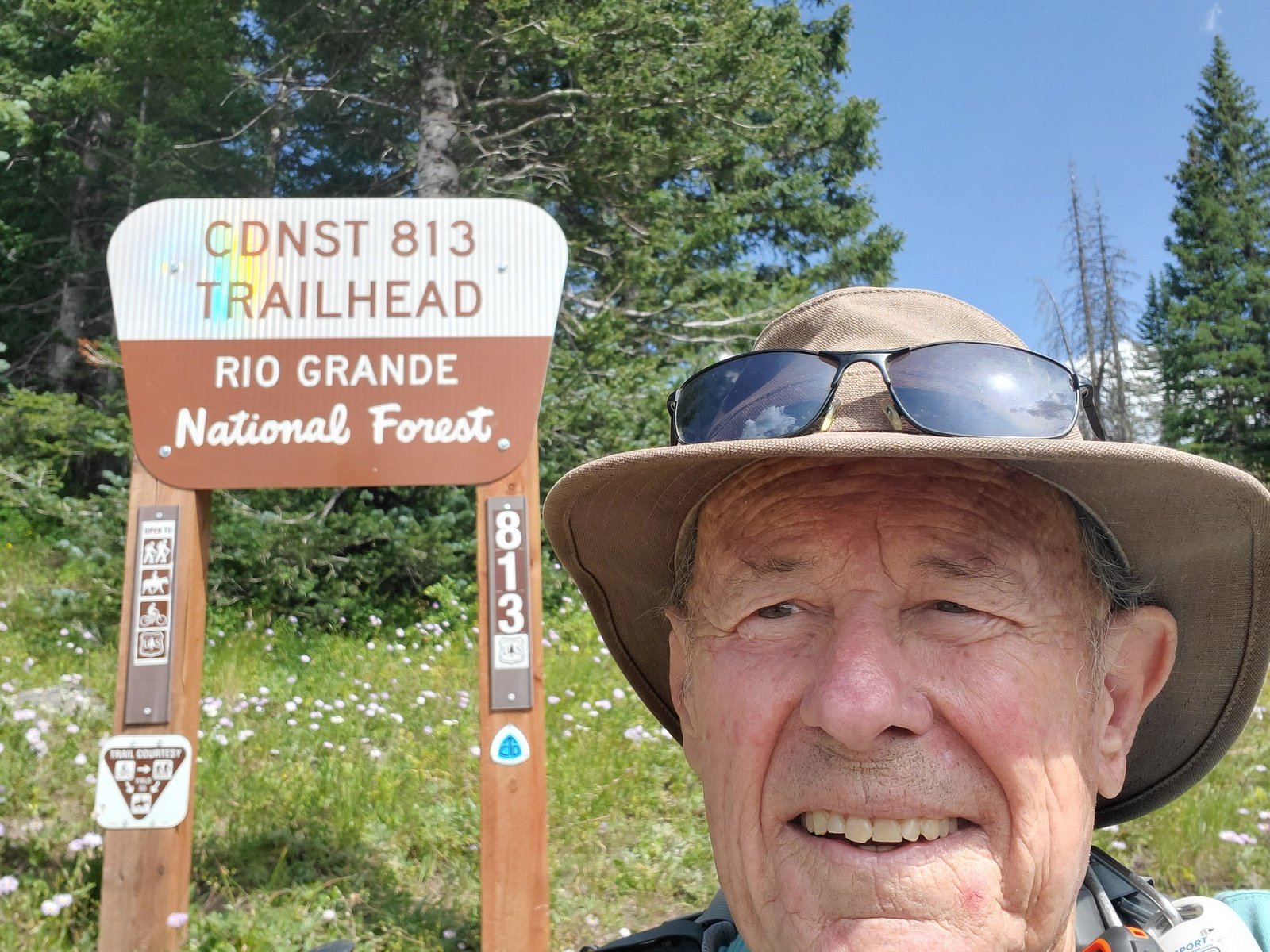 This was the 2nd hike was during a 5 day camping trip to Northern New Mexico. We set up the R-Pod at Heron Lake for 4 nights. While Pat attended a 3 day workshop in Chama on dyeing wool, I drove up to Cumbres Pass for a hike on the Continental Divide Trail. The day before, I had hiked the CDT north from Cumbres Pass.