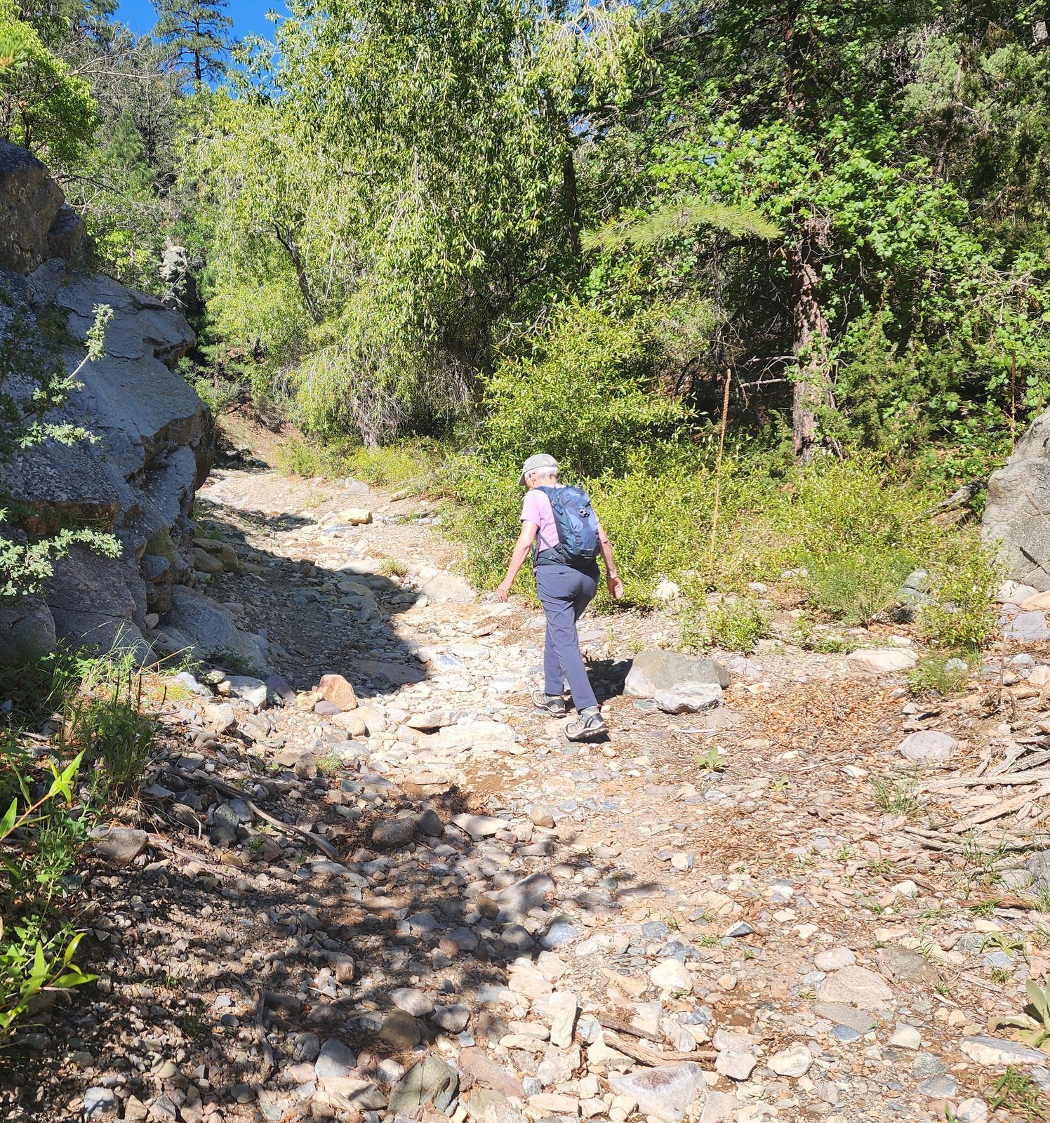‘Tis Friday, and we’re off to another trail, today to the Magdalena Mountains. We were seeking a trail with moderate elevation gain for 1.5 to 2.0 miles for an out-and-back hike; we’re back hiking regularly after nearly a year away from trails. We hoped for cool temperatures, but ’tis 1.5 hour drive from home so starting about 9:30, the temperatures was on the rise. And the elevation isn’t high enough to really get cooler air.