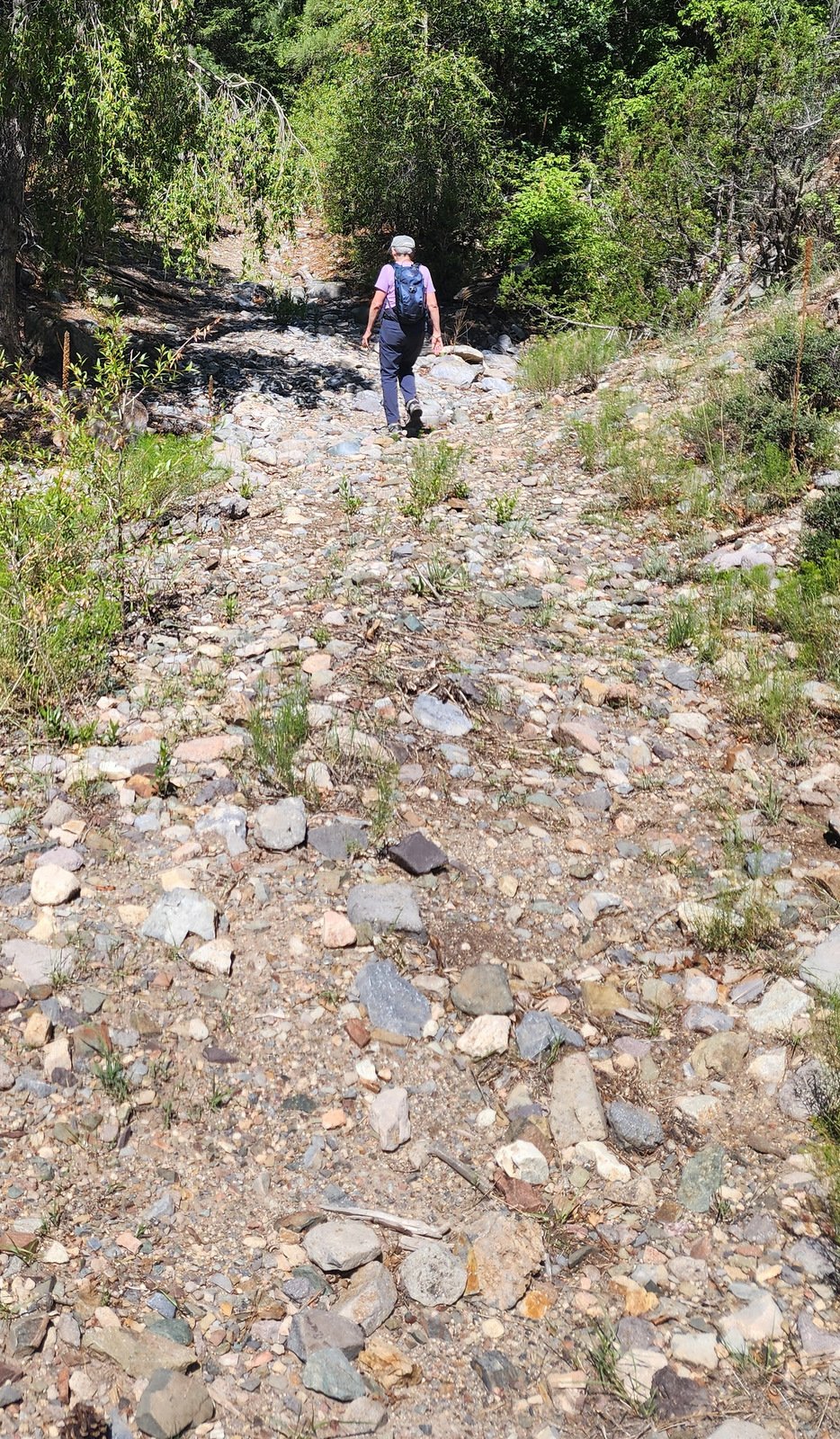 Geeze, it was 7 years ago that we camped here in Water Canyon, and one of our two hikes was .. Dark Canyon (or “North Fork Water Canyon”. My post back then provides a good description for this hike: “.. old two track .. hardly suitable for any but the best off-road vehicle .. etc”. The “trail”/canyon is much like it was back then – for the first half mile or so, it was sections of rocky stream bed interspersed with a smoother trail alongside the stream bed. Then the stream bed widened a bit and there was more “two track” for an easier trail.