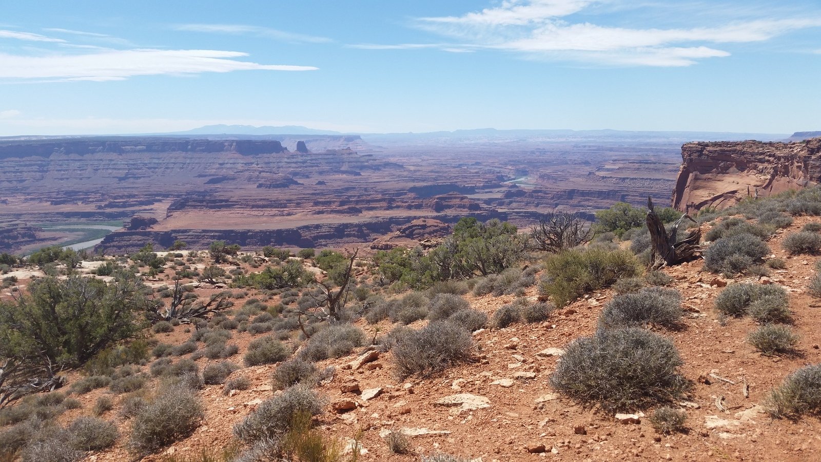 Dead Horse Point.Pat.2017-05-26 Amazing mesa overlooking an amazing array of canyons of the Canyonlands National Park and the Colorado River. (Note: The track shown above has been edited because the positions that the GPS recorded did not match the ground in GoogleEarth’s “3D” image, i.e. without the editing, the track would have gone “over the cliff” in 3 or 4 places.)