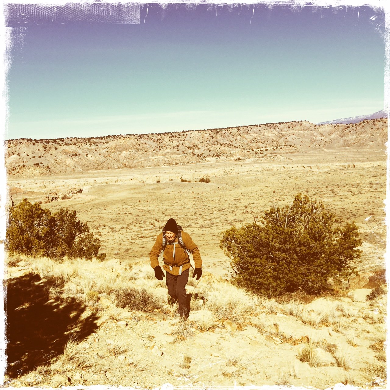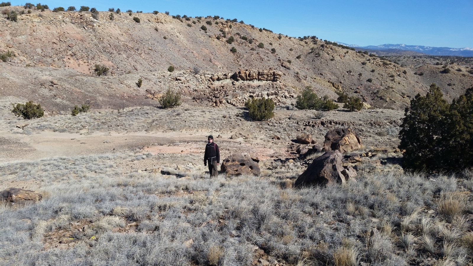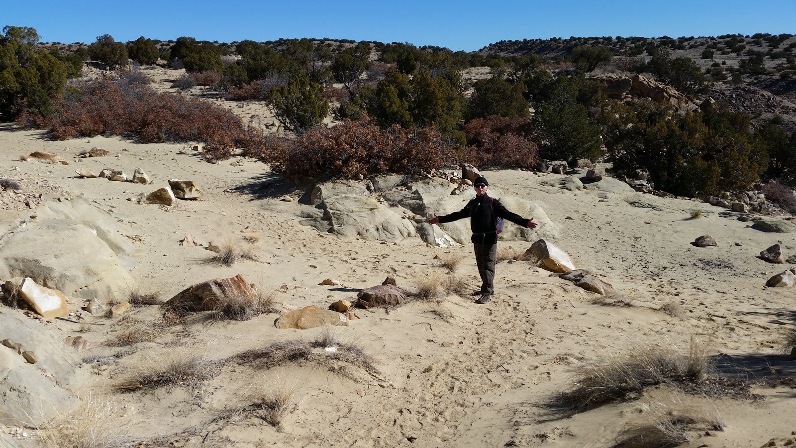 Another beautiful day in the amazing Ojito Wilderness. Temperature was a bit chilly leaving the car, 38 F, with just enough breeze to make us bundle up with gloves and ear coverings. As always happens here in the Mountain West, with the elevation, dry air, and crystal blue skies, temperatures rose by noon, causing us to start shedding layers.