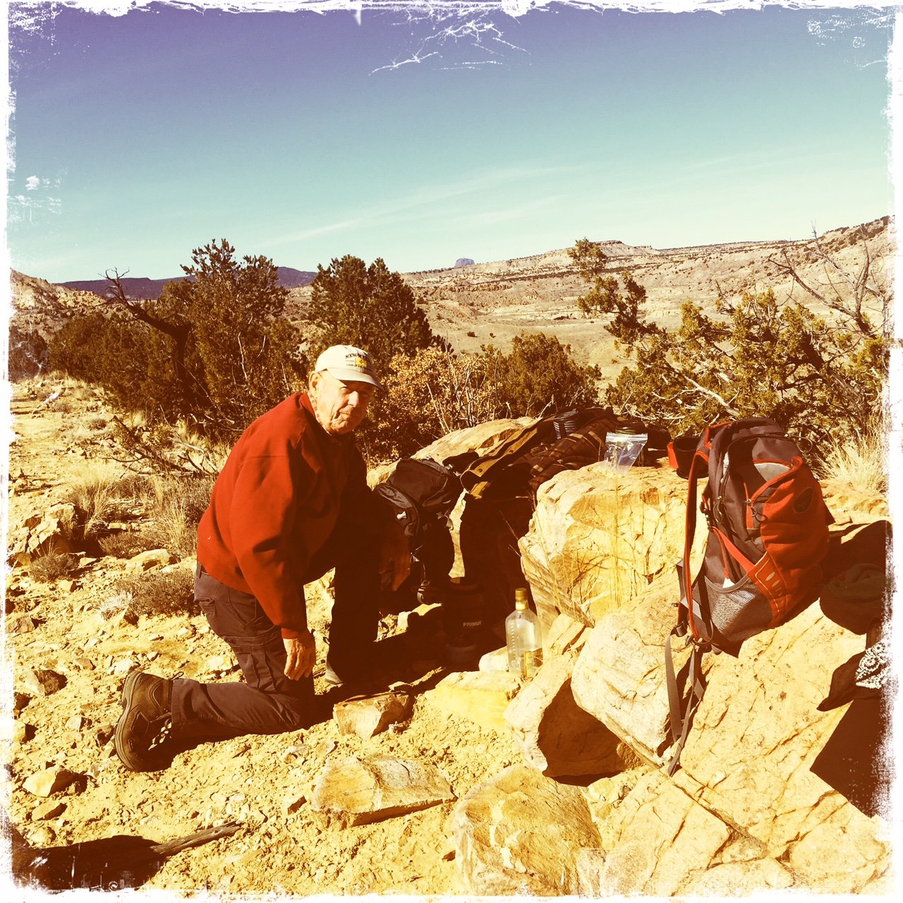 Jay here: Okay, okay, so I don’t like being on the edge. But I did tackle about a 400 foot scramble up a lot of rocks to get to the top of the mesa, and I got there a lot sooner than someone else did. The Ojito Wilderness keeps giving back when it comes to fascinating rock geology and we have only just begun to explore what’s out there. Here’s to more Ojito discoveries.
