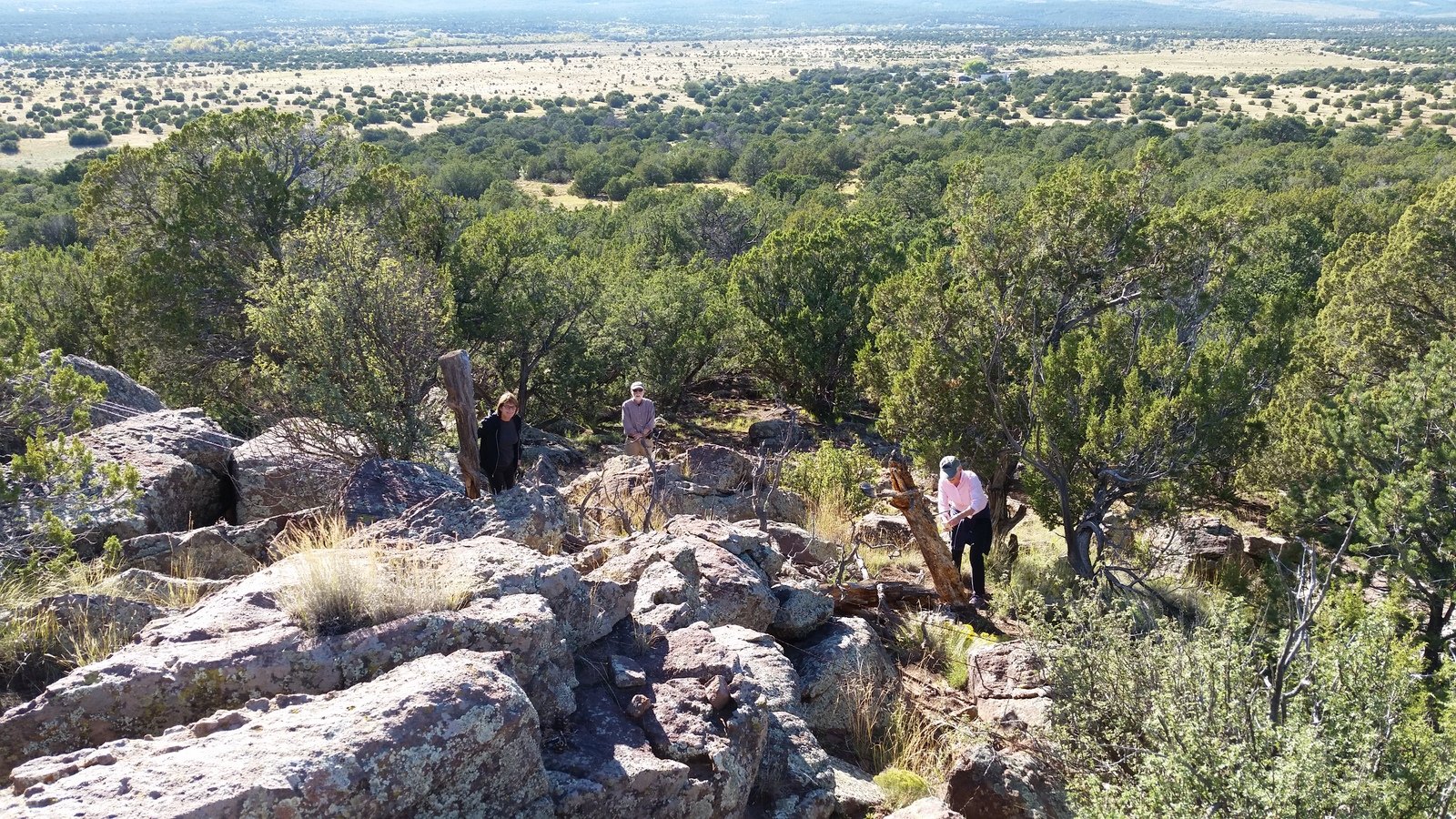 We made the usual tour of our cabin and 120 acres. Up the hill from the cabin to the top/eastern border, then down to the rock overlook at the southeast east corner of Cerrito del Llano. From there down hill to corners of our boundary, a visit to the Ruins, the well, and back to the Shop Area and the Cabin.