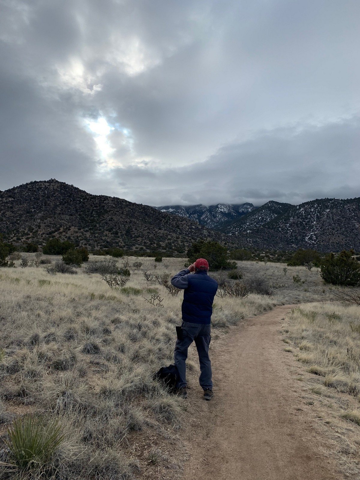 Pat & I started early, breakfast at Flying Star on our way to Albuquerque’s wonderful Elena Gallegos Open Space. ‘Tis close to the city, yet it is truly Open Spaces, giving one the feeling of being away from the city and close to the Sandia Mountains. In years past we’ve hiked numerous times within the Open Spaces and through it on our way to other hikes -into- the Sandias, but all some time back. ‘Tis nice to return (and to explore trails going south where we had not gone before).