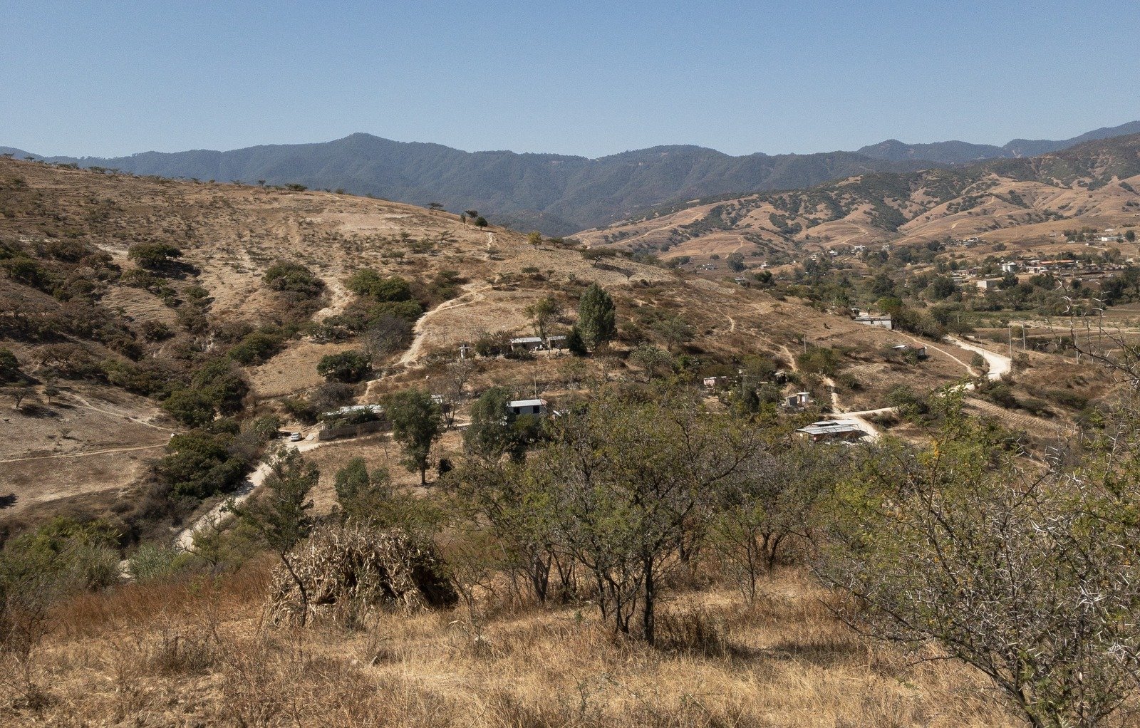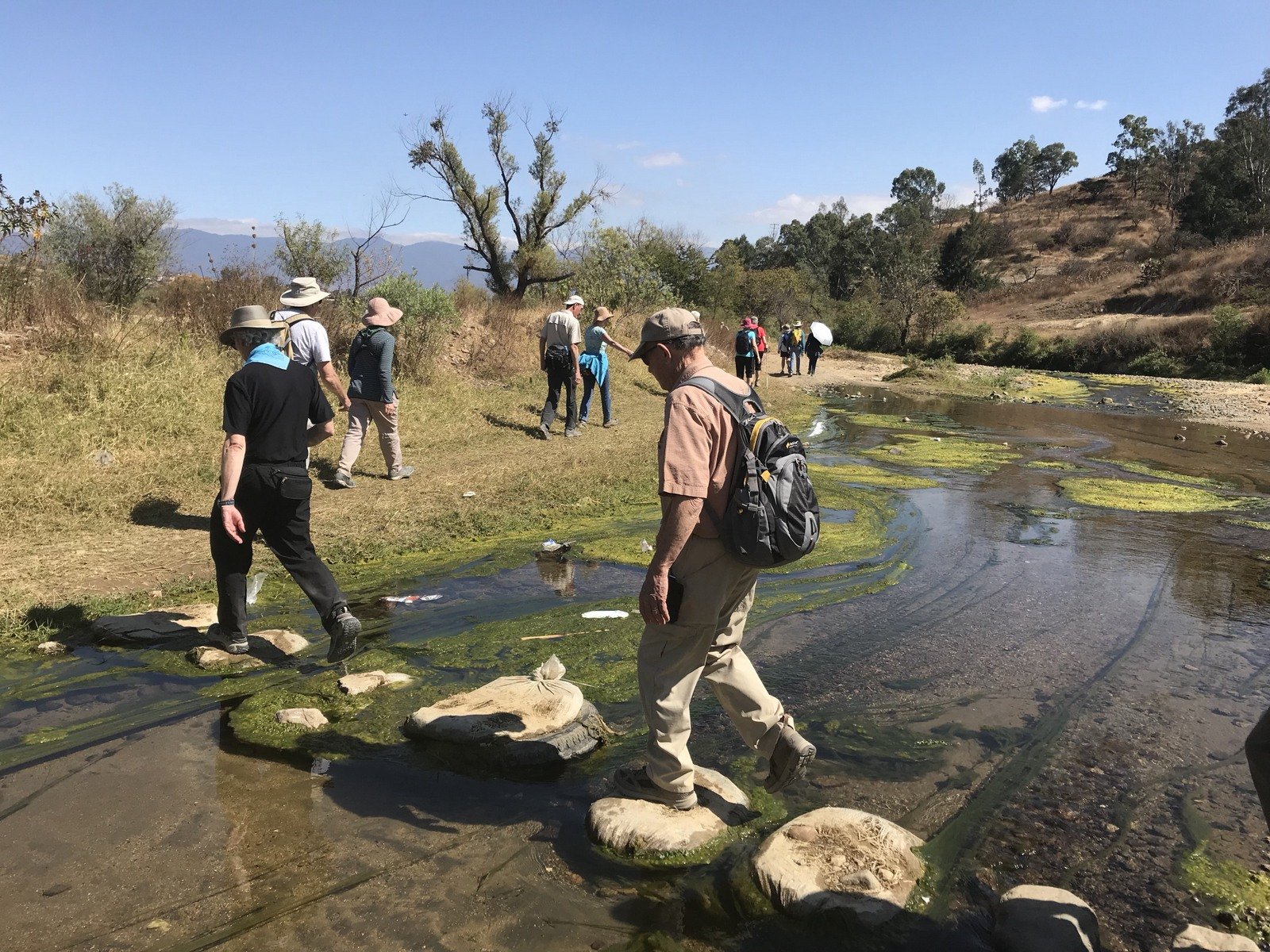 The Lending Library in Oaxaca arranges for numerous hikes throughout the year. Jay and I joined a group for a hike in the Etla Valley, northwest from Oaxaca City. They provided vans from the City for a group of about 30 people, dropped us in the village of San Andrés Ixtlahuaca. The valley is not mountainous or forested, but with hills and many pastures and fields. It being the dry season, everything was dry and tan colored (even the soil is tan in color), although along the rivers some cultivated fields had green crops.
