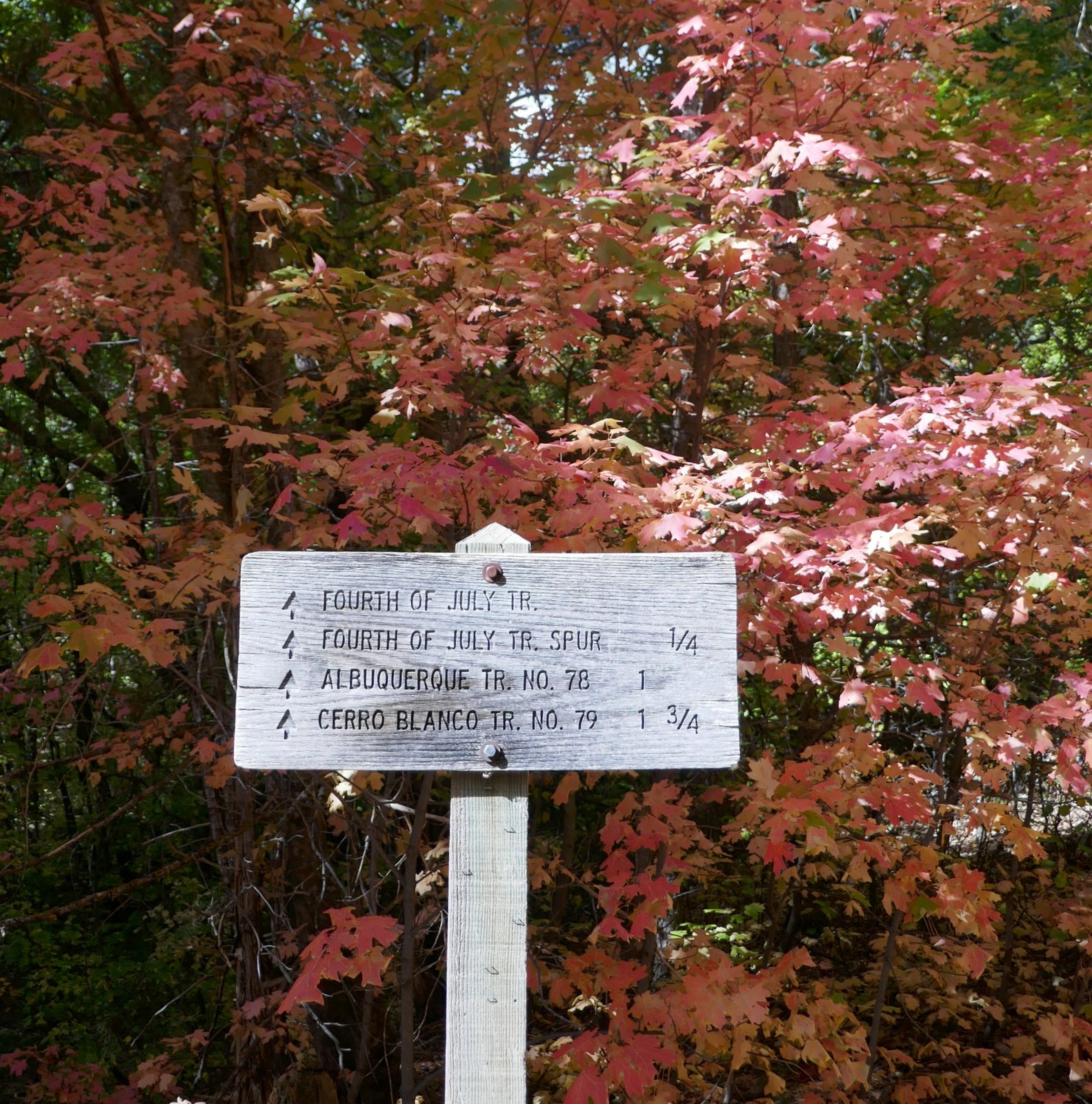 Fourth of July Campground and the Trail are a favorite place to visit in autumn. The maple trees burst forth in autumn with colors that rival that of the flowers during spring and summer in New Mexico.