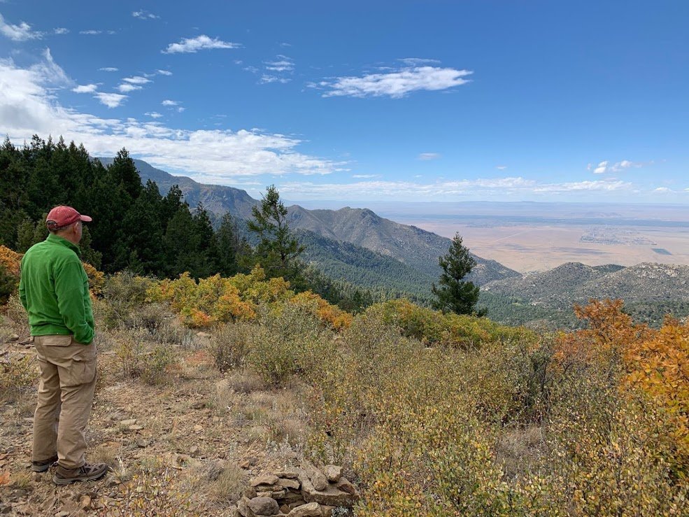 Reaching the intersection with the Manzano Crest Trail, Mosca Peak came into view to the north. From there it was a short distance to the saddle between Mosca and Bosque Peaks. From there we could see to the west, across the Rio Grande valley, to Albuquerque, Belen, and the Rio Grande’s Bosque (forest in Spanish). We paused here for our mid hike break, then retraced our route back to the truck.