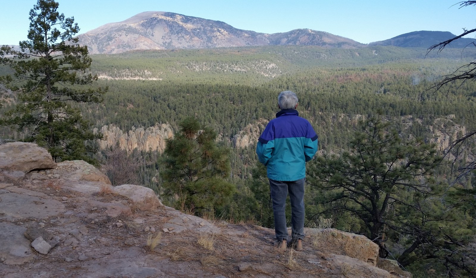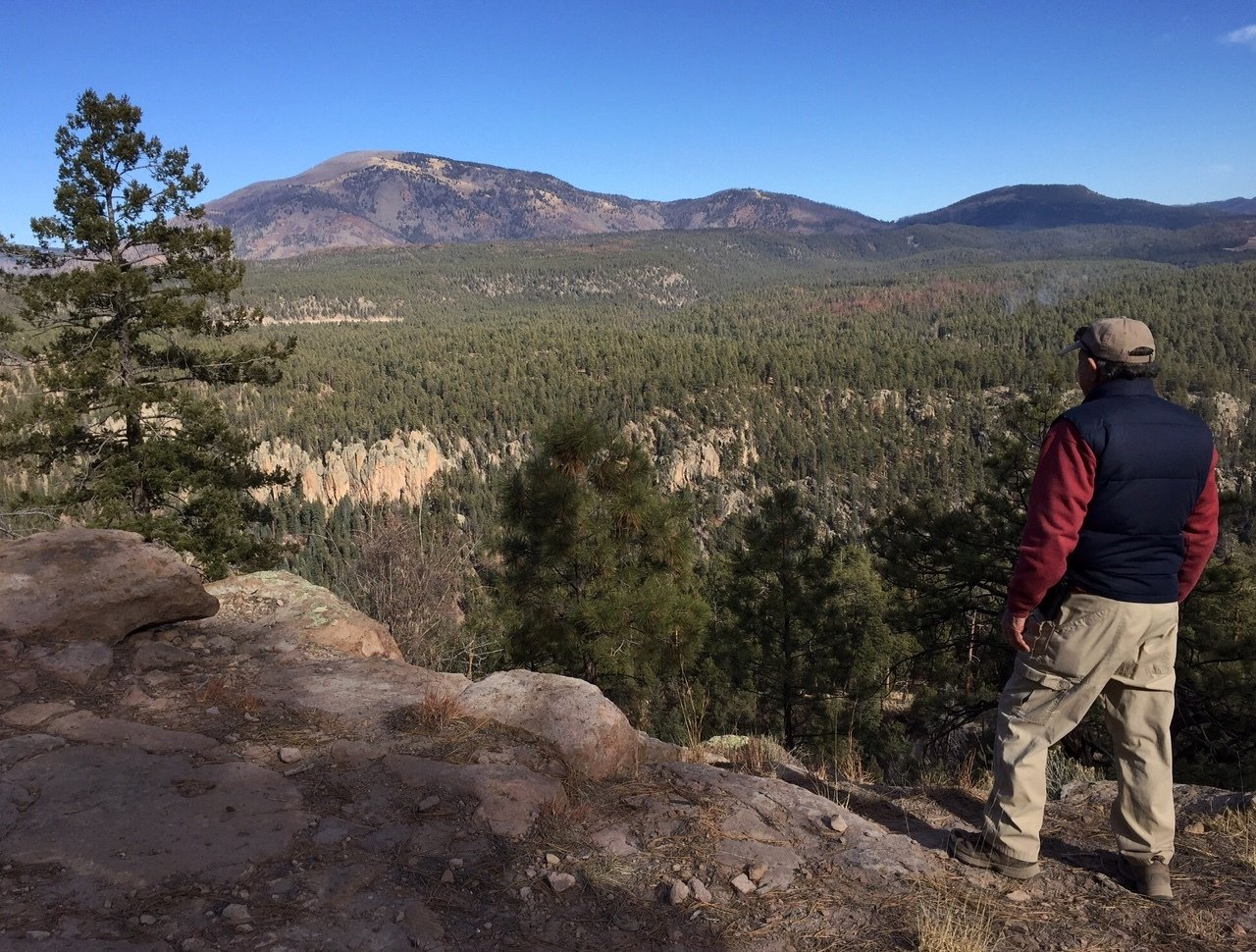 This was a combination trip – explore a Forest Road that has been on our to-do list (FR 10) and take advantage of the Forest Service’s permission to cut a Christmas tree. We first stopped by the Forest Service Ranger Station in Jemez Springs for our tree-cutting permit. For $10, we could go anywhere in the National Forest and cut any species of tree; we were given a map and suggestions on places to go. Since we had FR 10 on our minds, we chose to proceed on up NM 4, then start at the north end of FR 10 and exit at the south end, passing familiar places: Goblin Colony, Kiatsukwa and Boletsakwa ruins, and Paliza Campground on our way out.