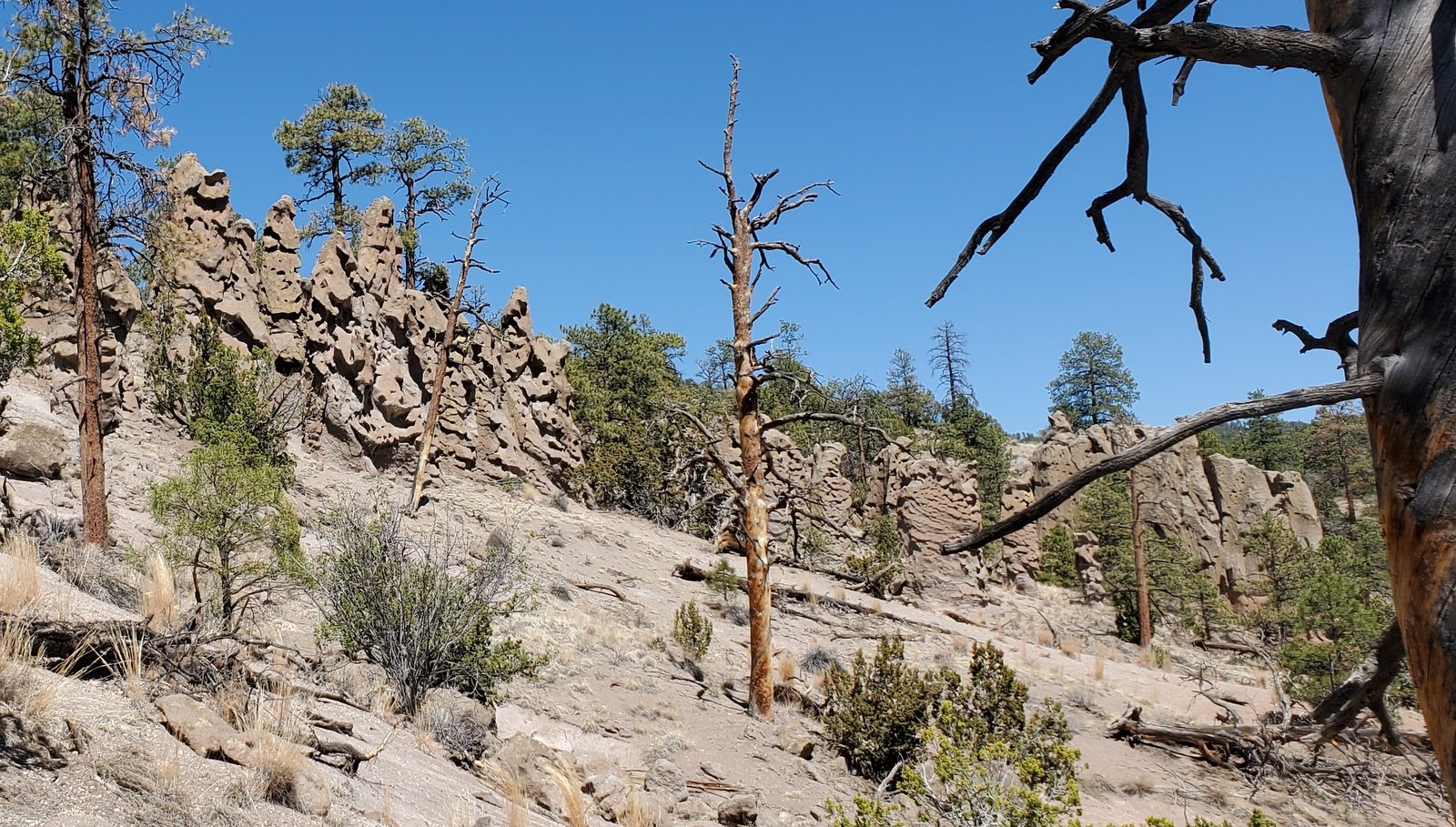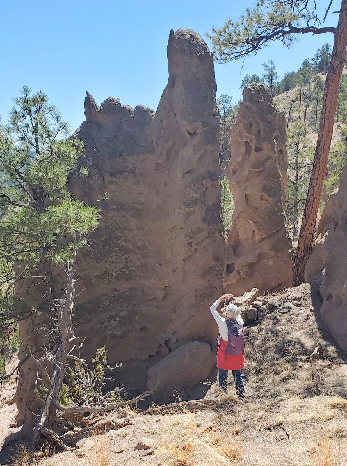 We had no advance plan, but we needed to get out into nature this week. Weather was a bit iffy, forecast to be chilly and windy. We decided to visit an old friend, Goblin Colony, up Paliza Canyon in the Jemez Mountains.