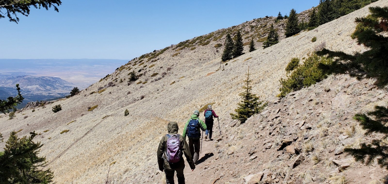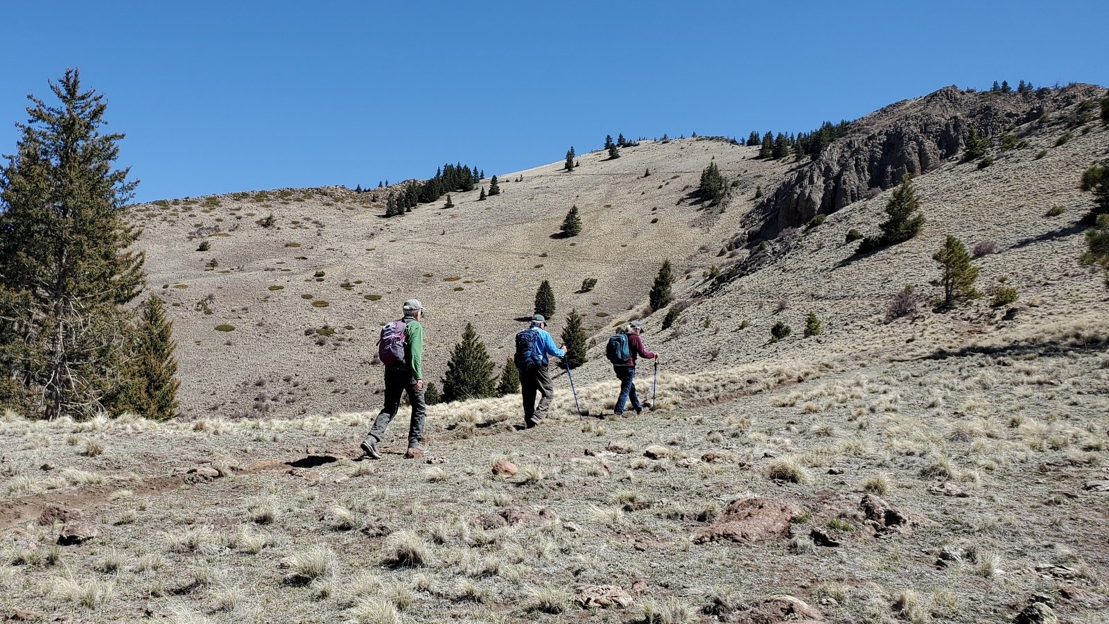 The hike this year is much like Pat & I did last year, at least the ascent; I won’t repeat the description, but invite you to review that BLOG post. For the descent, we opted to follow the precedent of our first hike to the summit: descend on the trail to the tree line, then turn right to follow Gooseberry Creek down to it’s junction with the Gooseberry Spring trail.