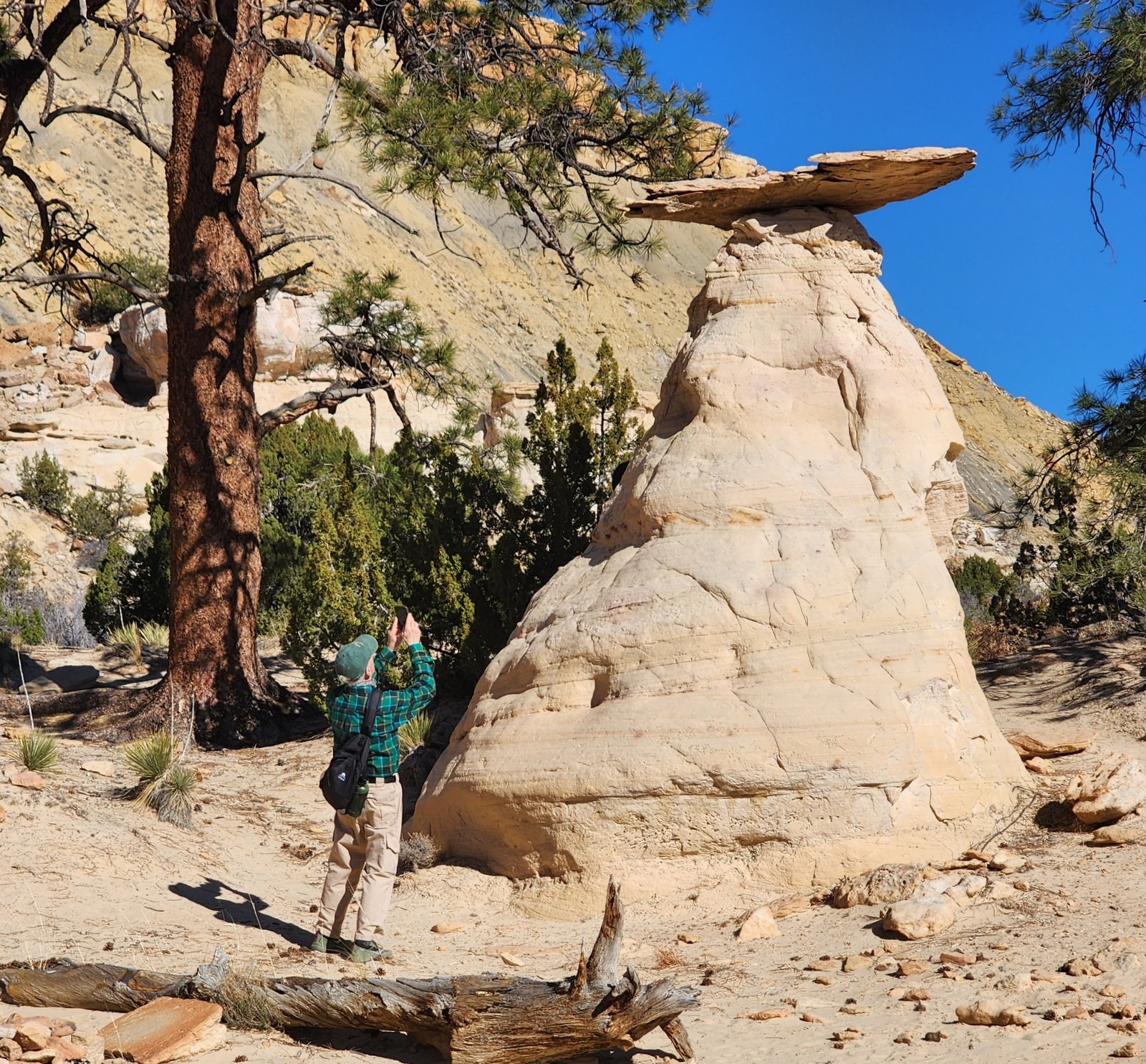 - The geology, with so many shapes, layers, rocks clear of erosion (even balanced on a hoodoo), big chunks (some I thought might be petrified logs), conglomerates, and more fascinating forms and settings.