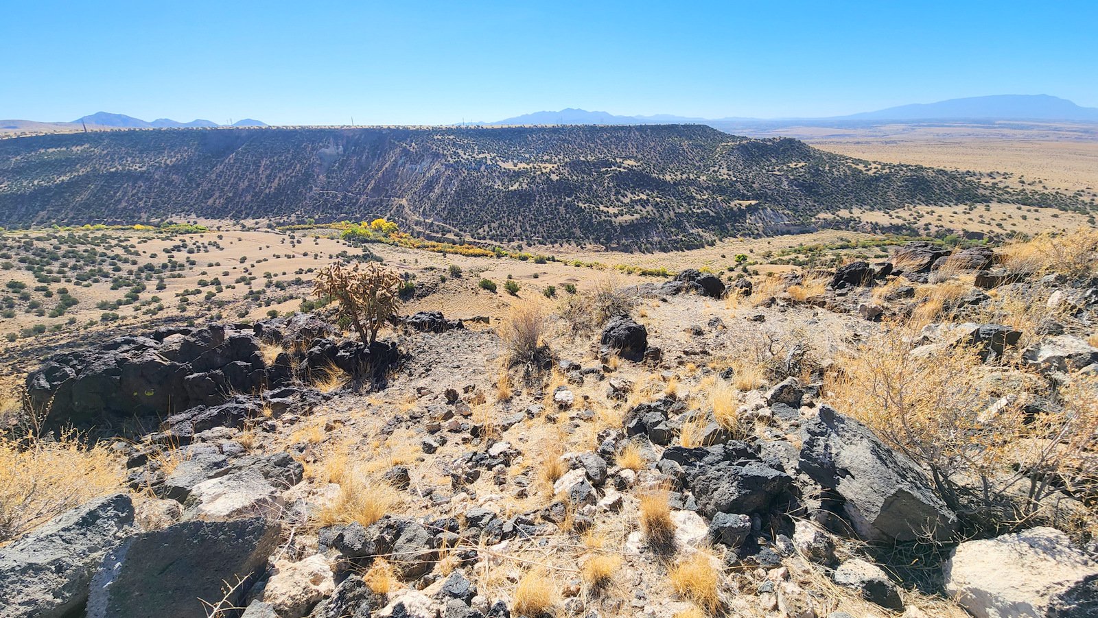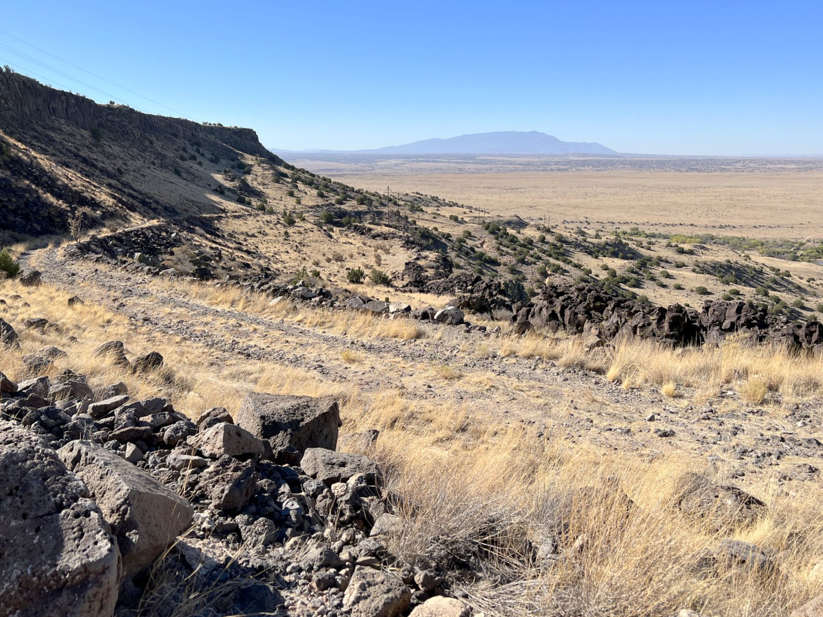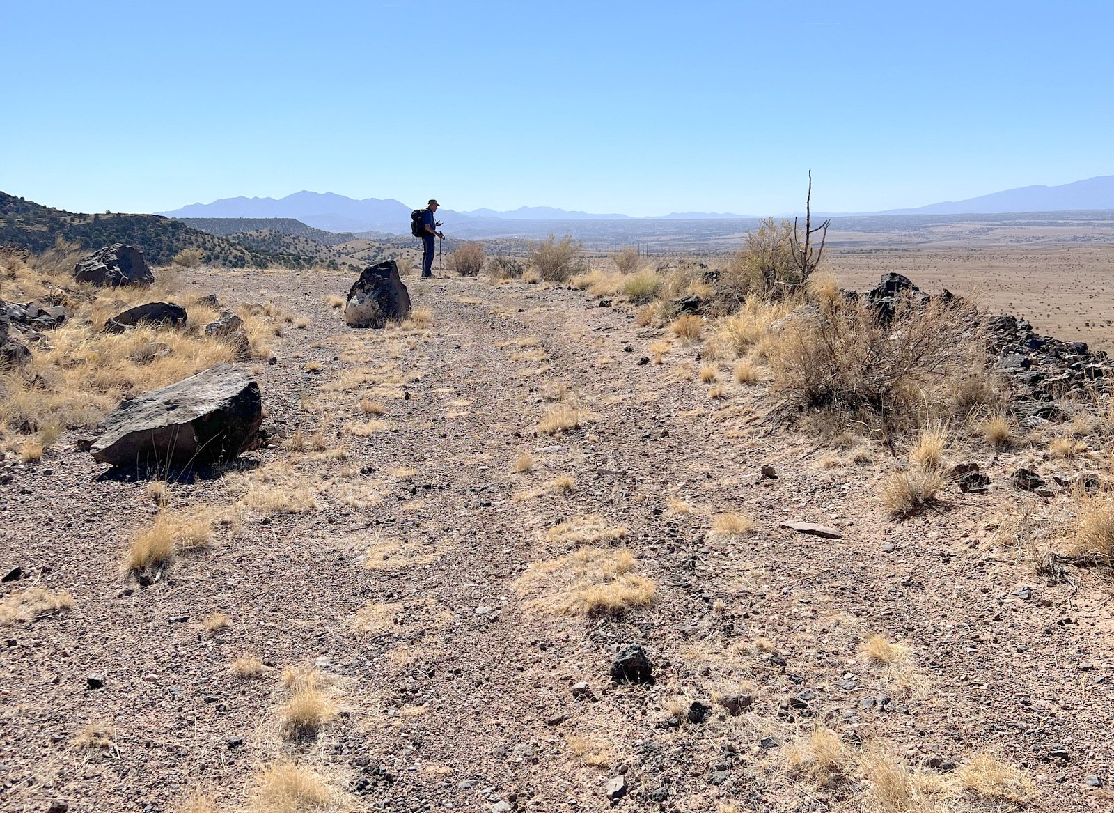 e top of the road, the view of the surrounding territory began to expand. And on top of Bajada Mesa, we had a 360° view, from the Sandias to the south, the Jemez to the northwest, and the Sangre de Cristo to the northeast.