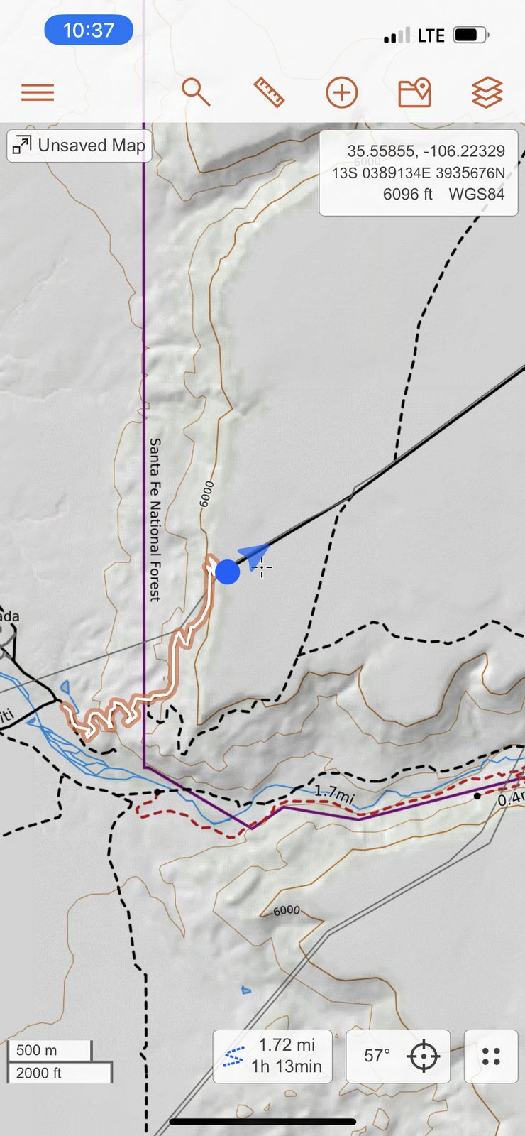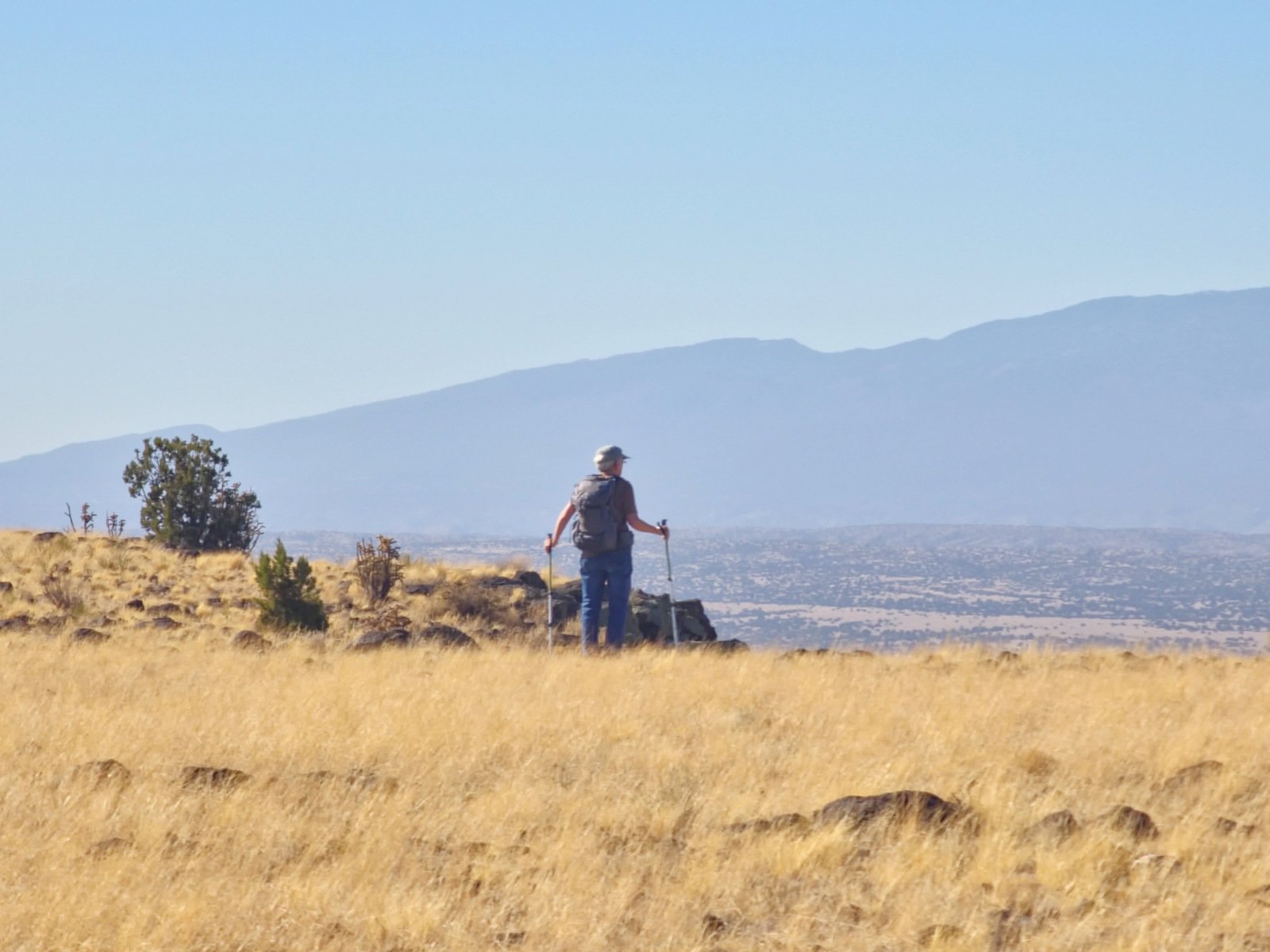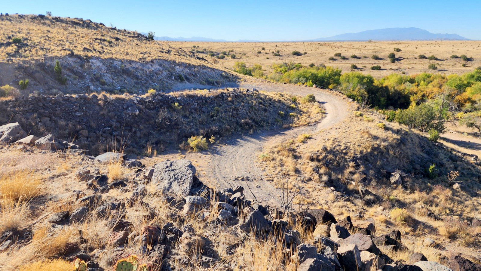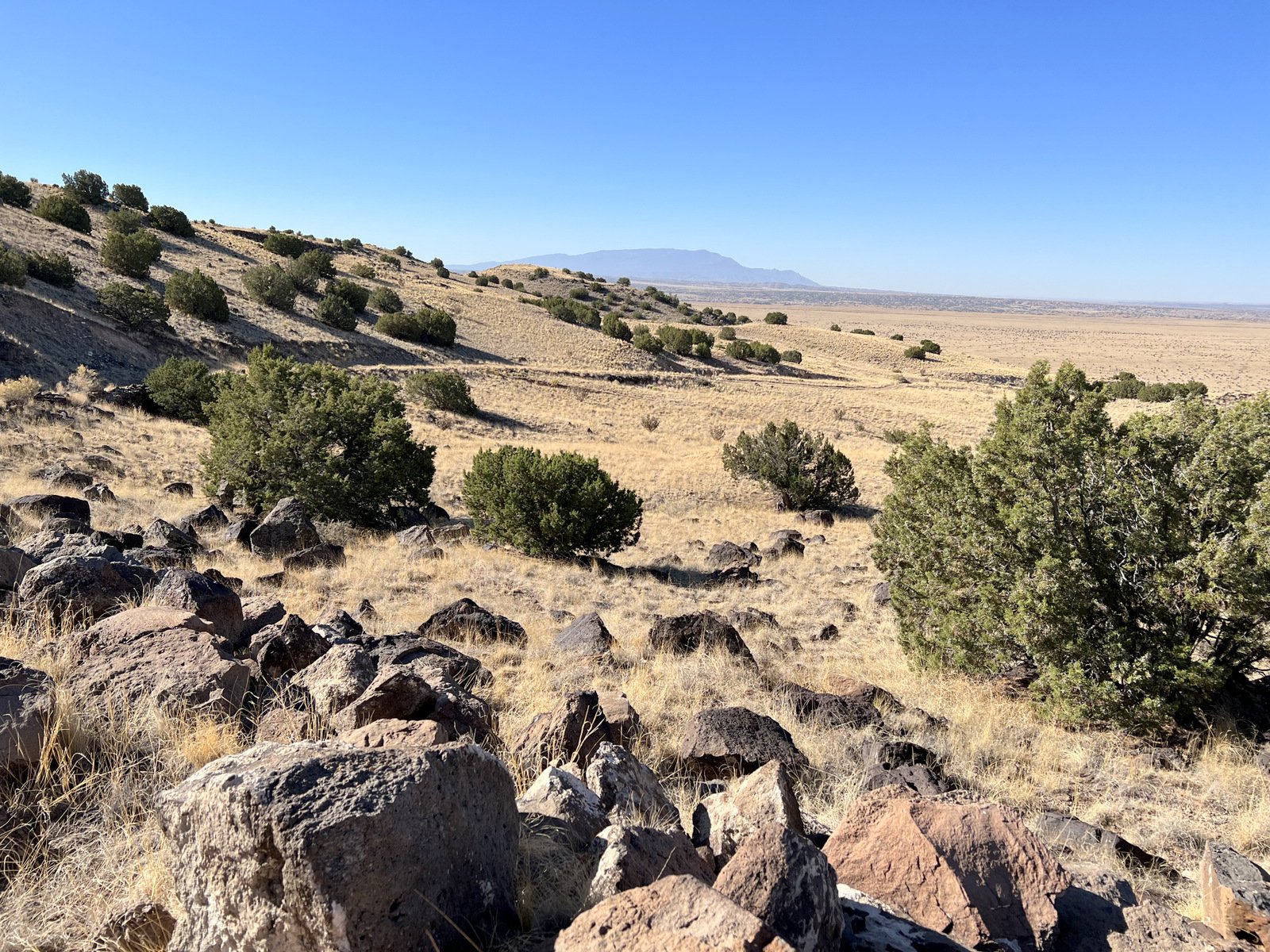 e top of the road, the view of the surrounding territory began to expand. And on top of Bajada Mesa, we had a 360° view, from the Sandias to the south, the Jemez to the northwest, and the Sangre de Cristo to the northeast.