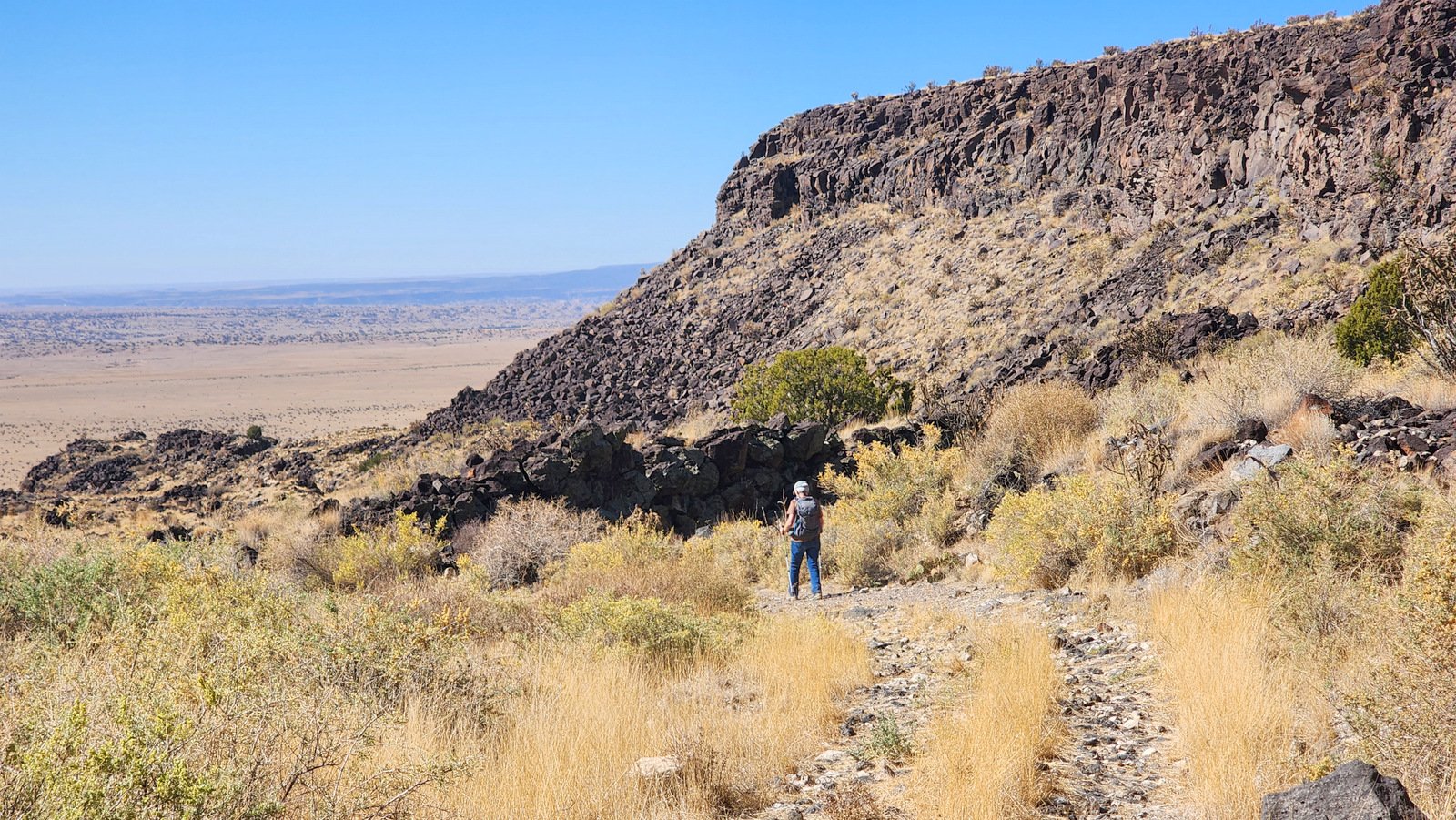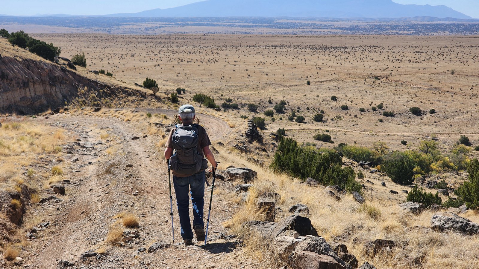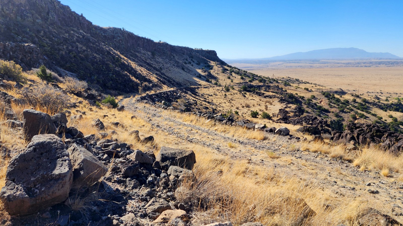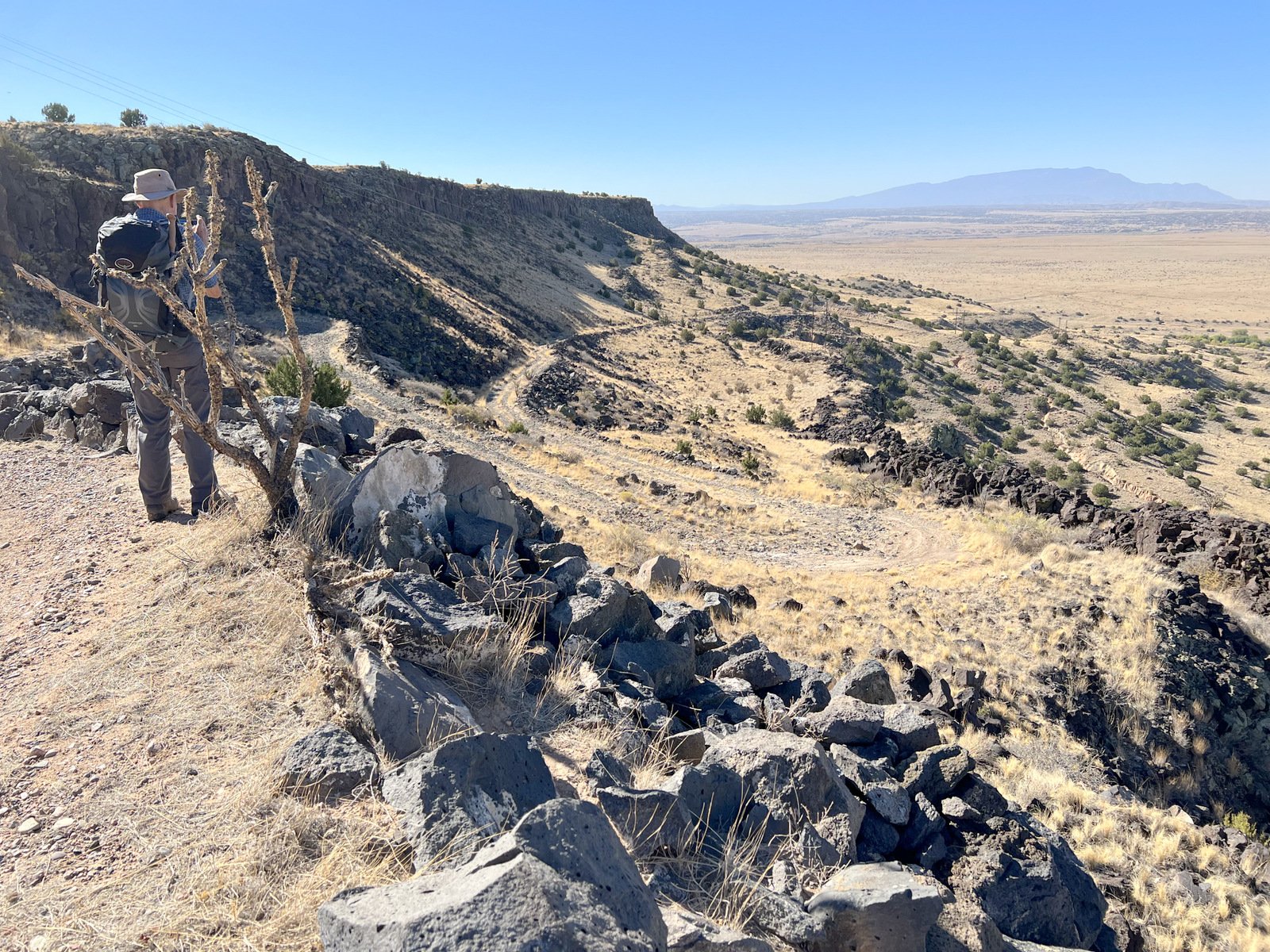 ck the scope of the La Bajada mesa was more evident, as it towered over the trail as we descended. And as we approached the junction with the up-hill track, the height of the mesa caught our attention.