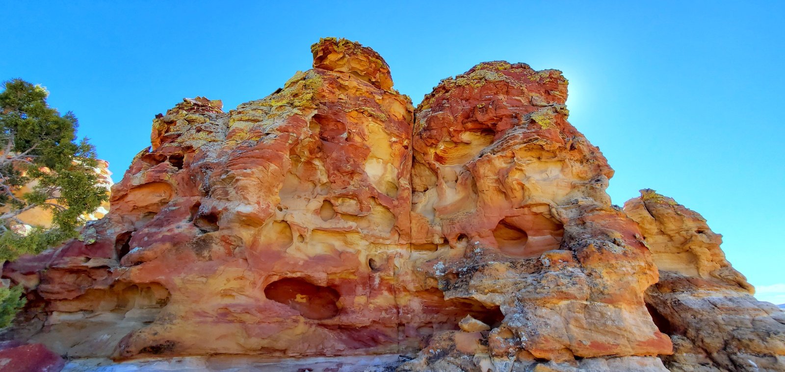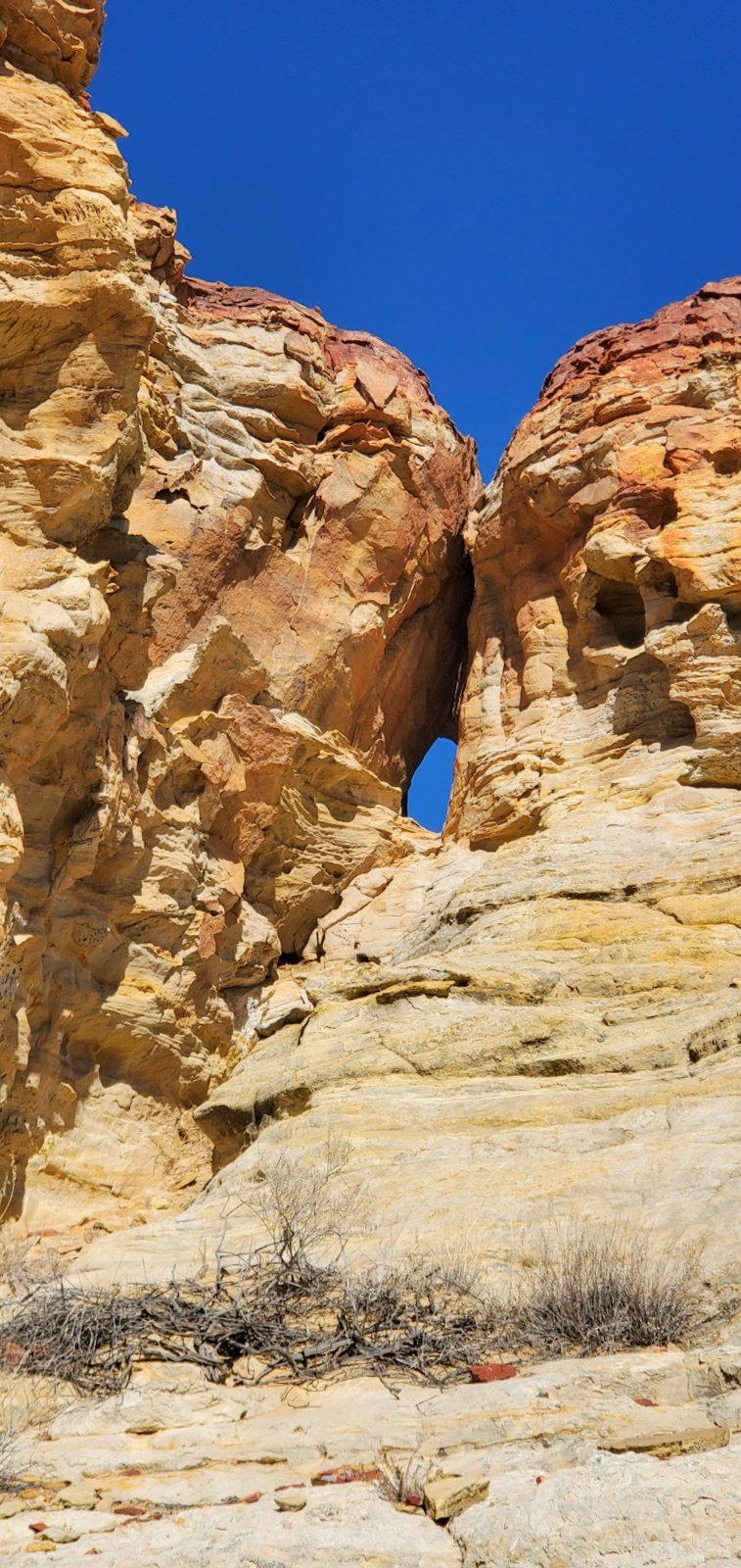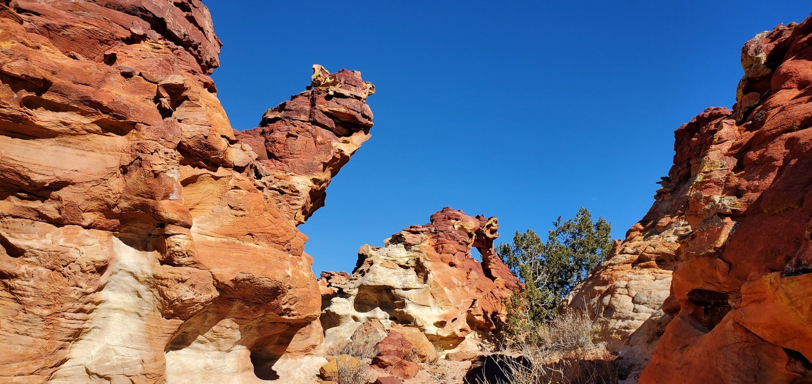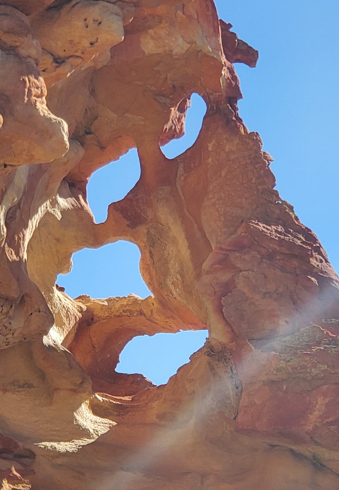 After ogling Red Butte, we headed north to Mesita Roja, the ridge of colorful red rock outcroppings. We wandered through passageways, looking at the most interesting features of color and shapes, windows and forms, passagways and dead ends. Mesita Roja is definitely the most interesting geologic features that we have visited. These photos and in the Gallery below may give you some idea of the beautiful Mesita Roja.