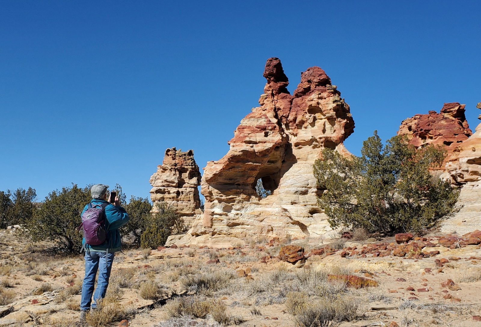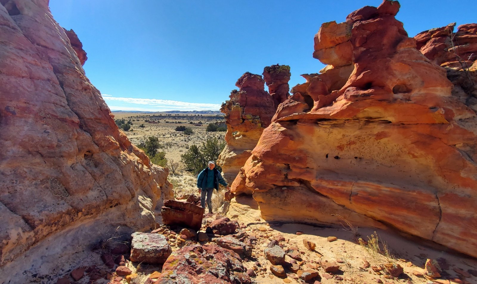 Weather was beautiful this day in New Mexico, perfect for returning to the Rio Puerco, and to visit geologic formations that are a favorite of our friend and photographer Pat Barrett. We enjoyed a really good hike and the geologic formations are something to behold.