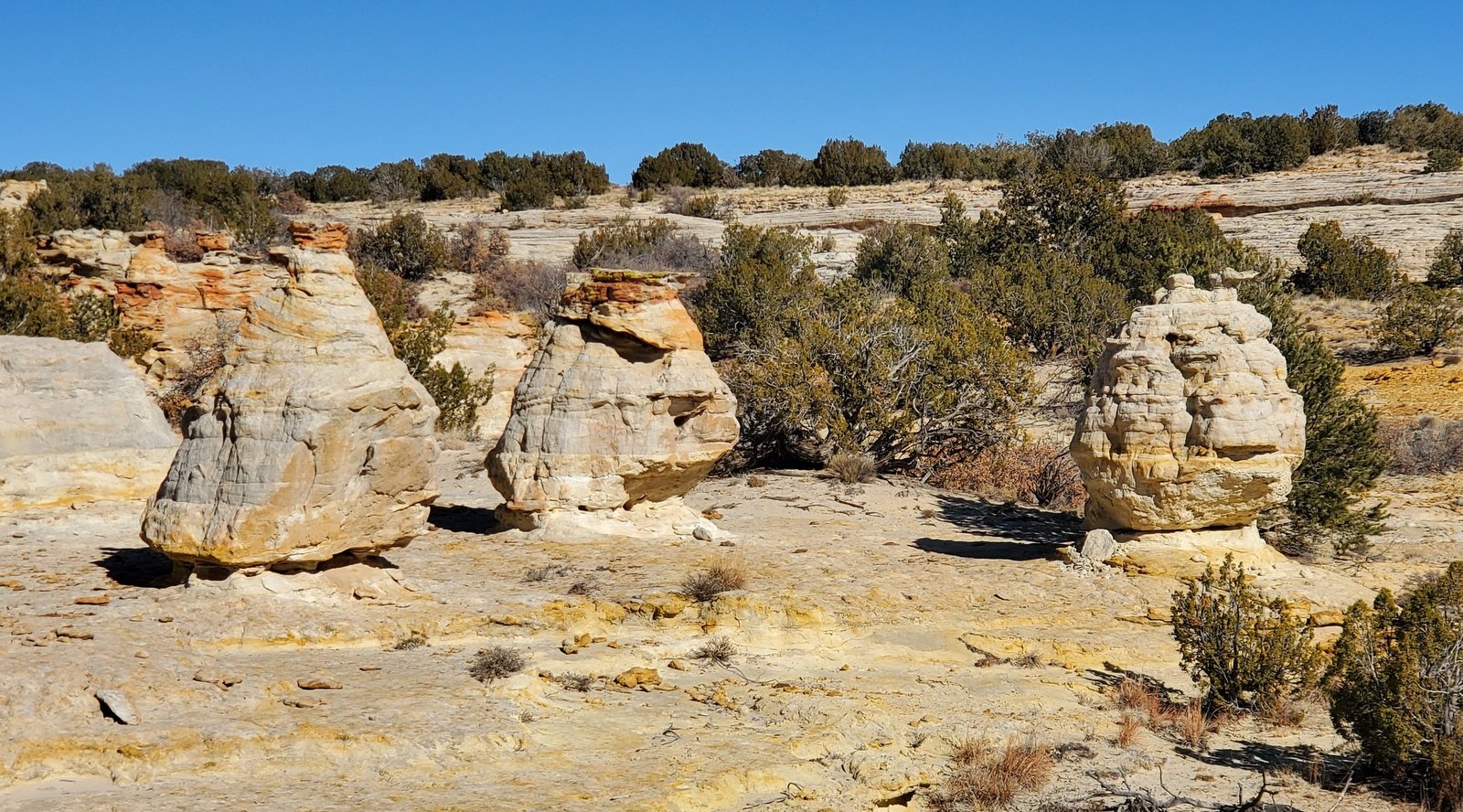 UPDATE, 11/29/2022: I’ve discovered the “proper” name for this small but amazing outcrop of hoodoos: Cañada del Ojo. See References below.