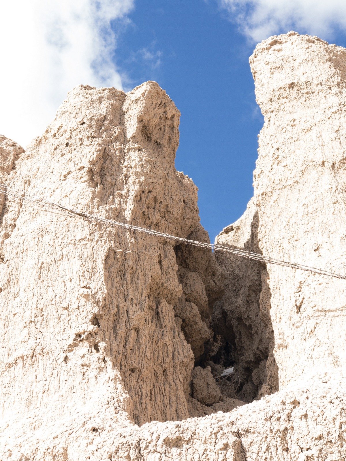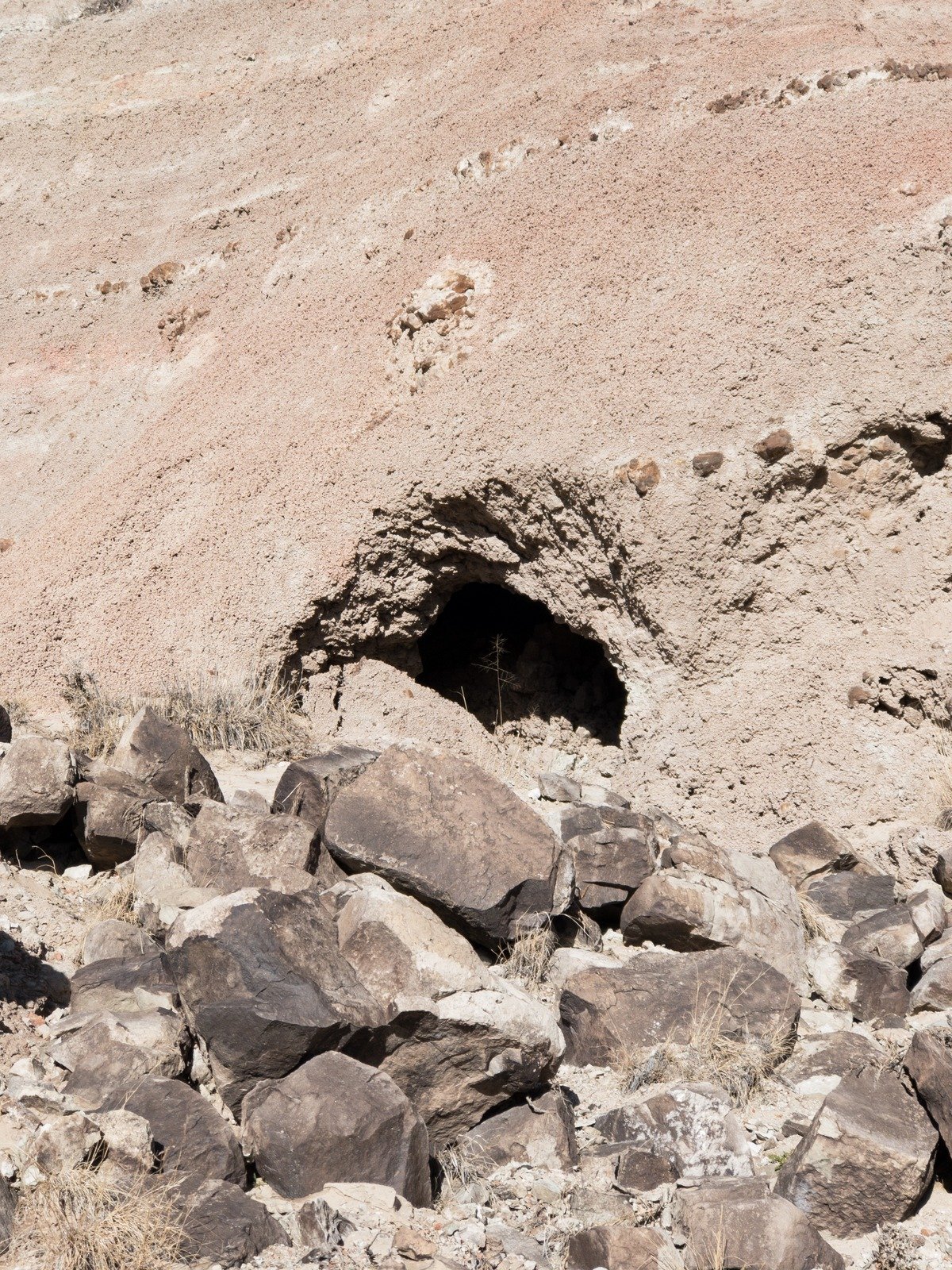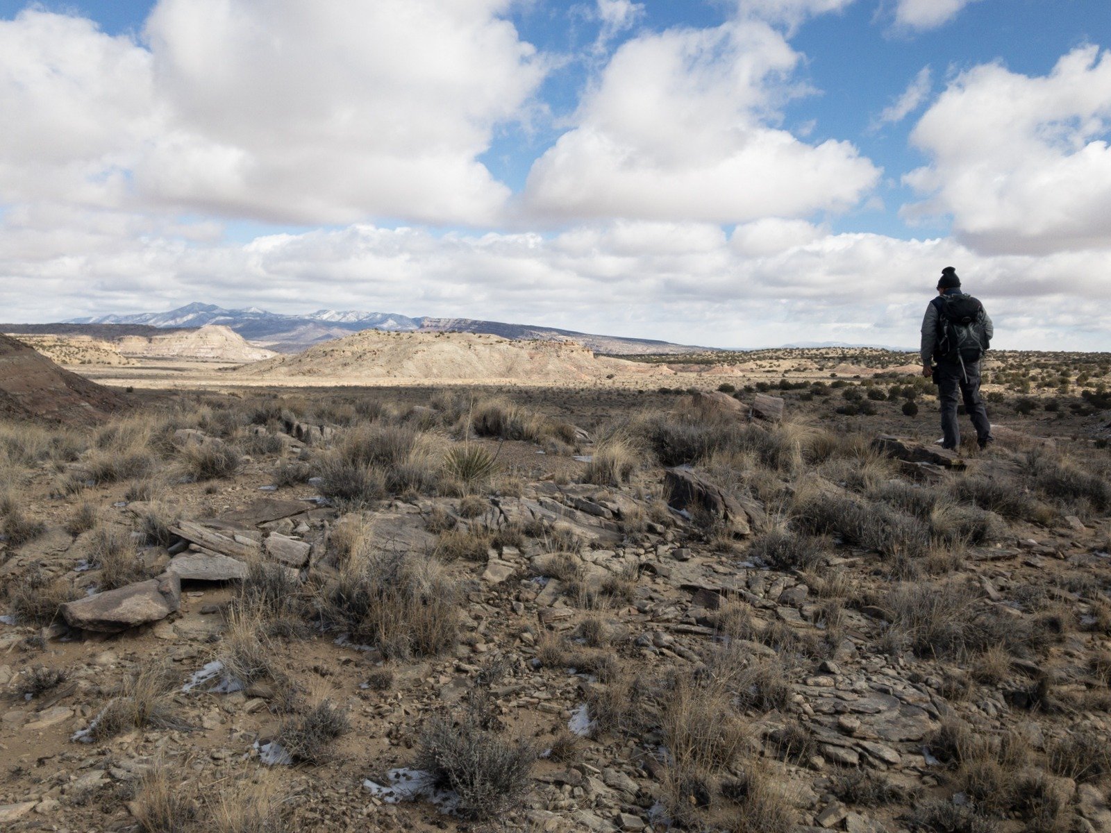 As expected, we began the hike with wind and 38 degrees. We soon were in the lee of the mesa which protected us somewhat from the wind. We then faced the first of two rocky descents in narrow clefts in the terrain – not great distances but required extra care on the rocks, some of which were covered with a dusting of snow.