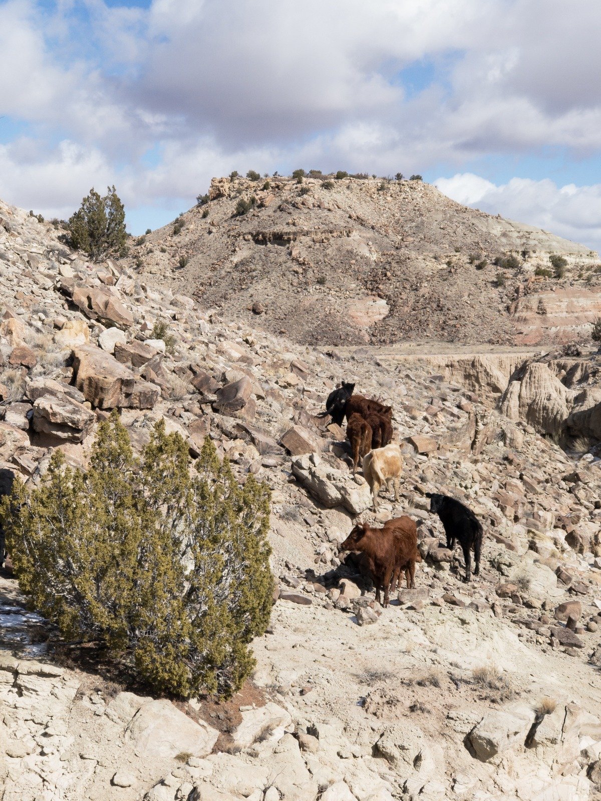 Jay here: Speaking of cows, we kept running into them. Well, not into them as much as around them. The most amusing meeting was when we came across 7 cows and a calf and there was a standoff on opposite sides of a deep arroyo until we made it clear we were going another way. We do admire and appreciate all the trails they leave for us to follow.