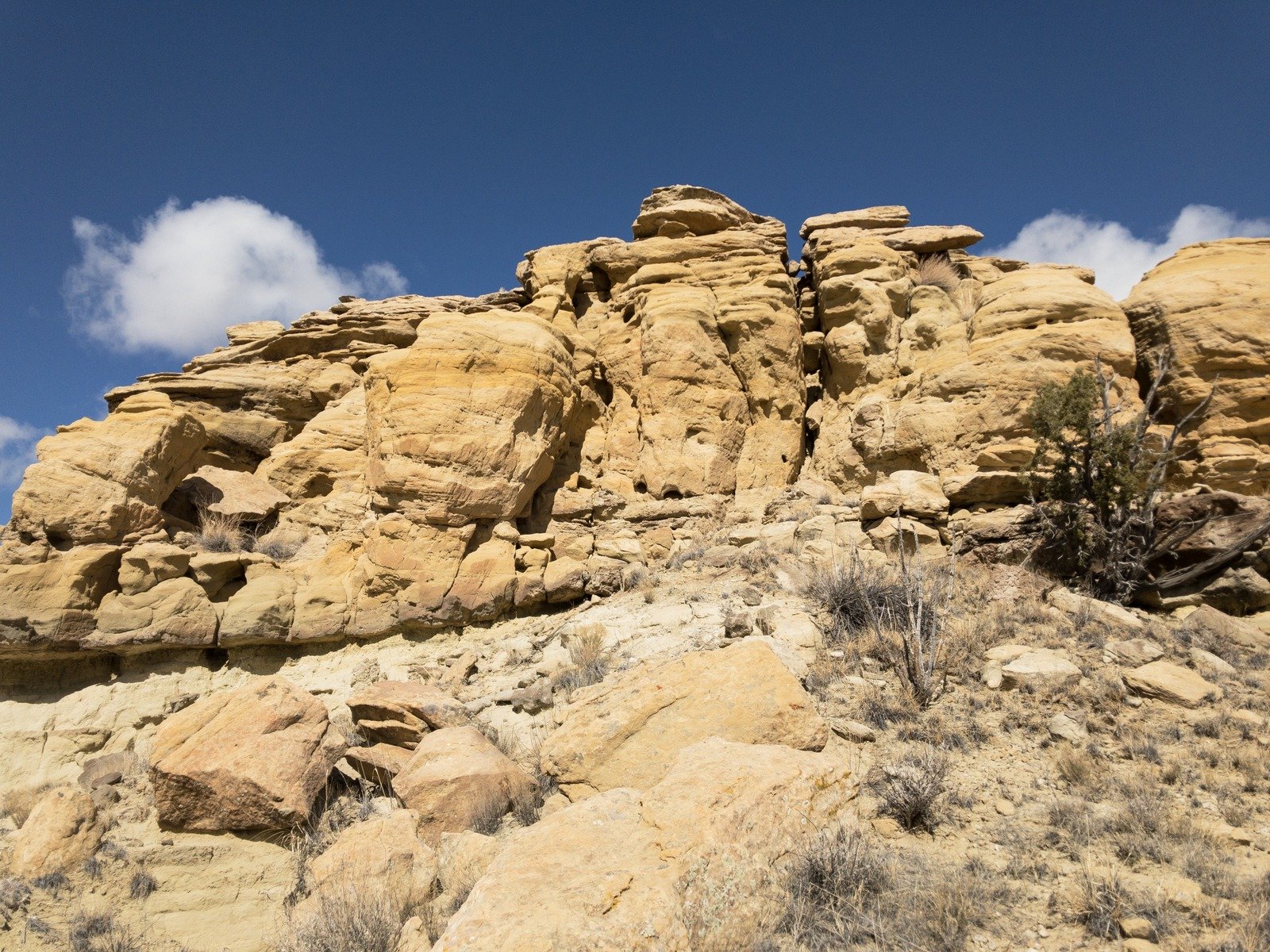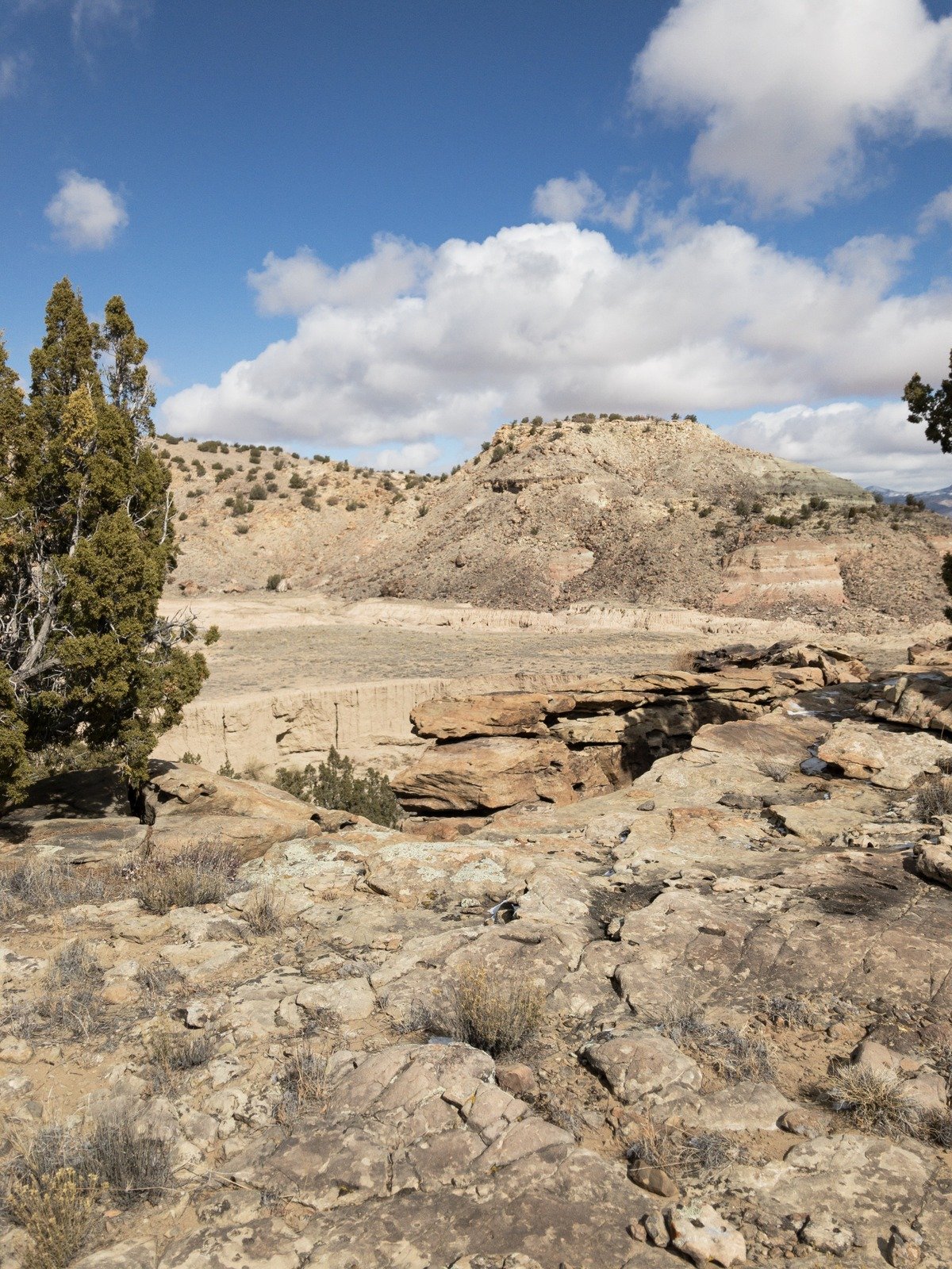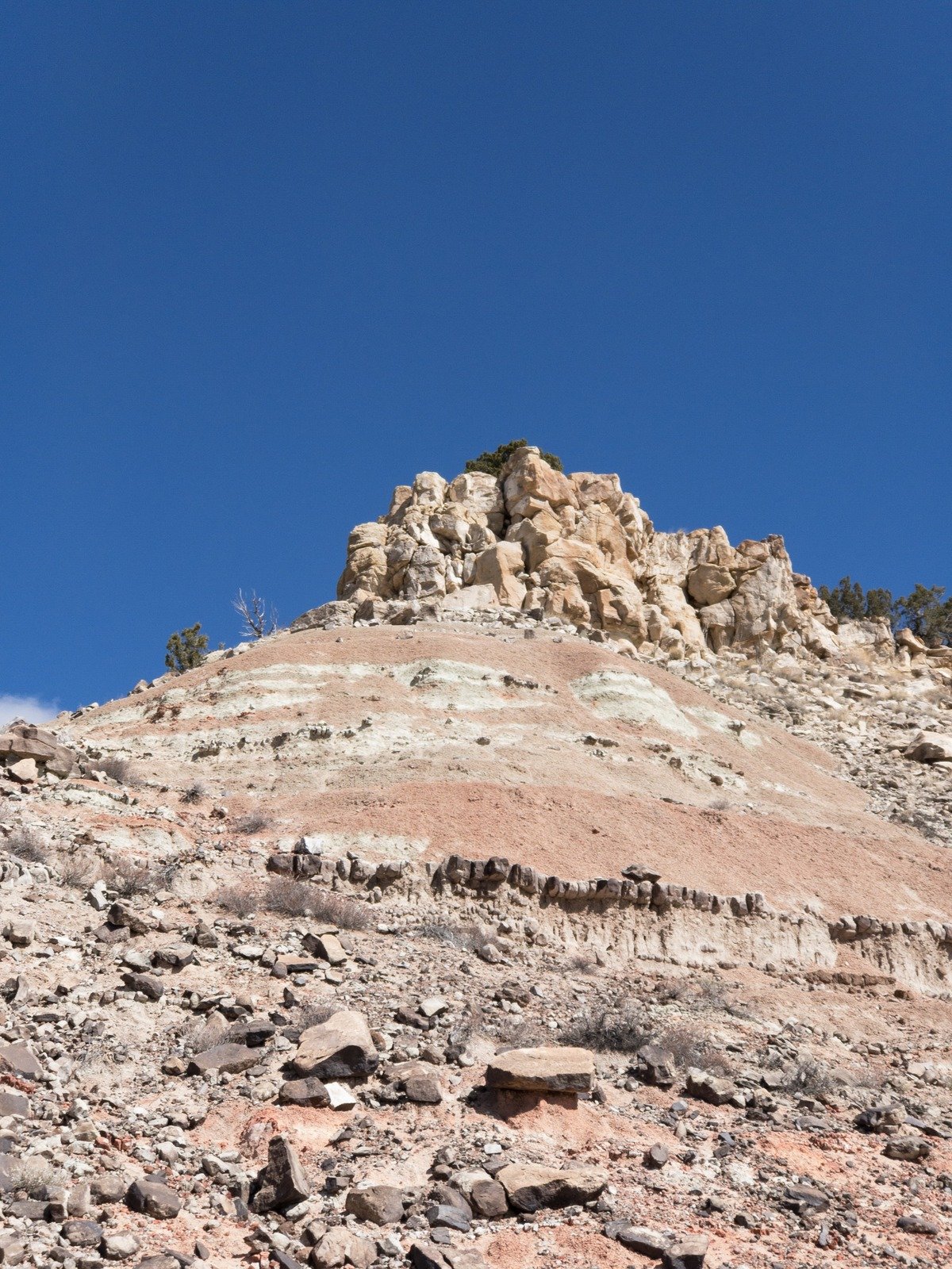 The remainder of the hike was easy, just a small ascent near the end. There was a section that seemed familiar – only when I reviewed past hikes did I realize that we passed a section of the mesa where we had ascended to the top, and that we passed below the site of the Dinosaur Dig.