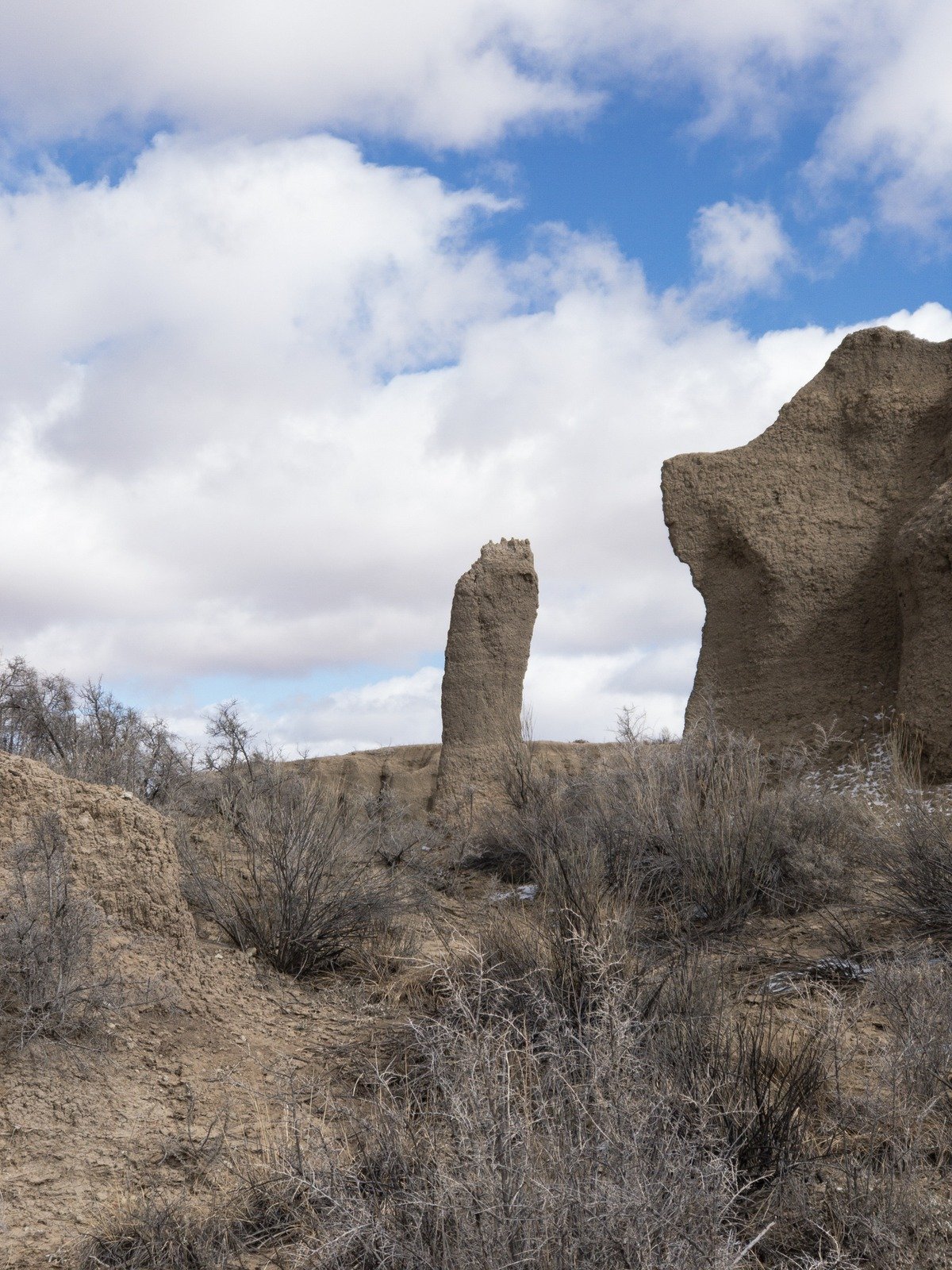 This was another hike for which we did not have references from other hikers. It brought home the realization that one can easily go most anywhere in the Ojito for a great hike. The geology is vastly varied; interesting soils and rocks, picturesque multi-colored mesa walls, the results of Mother Nature’s sculpting of the land, and more. Try as we might, the photos simply cannot bring to the reader of these reports the fascinating features of the Ojito Wilderness.