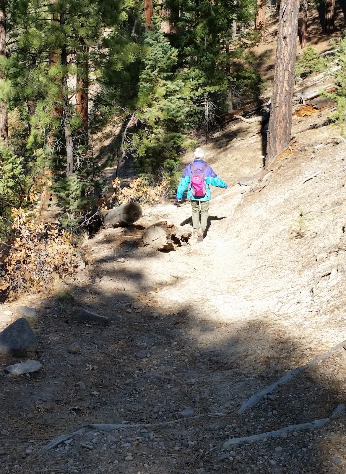 The return was uphill, not our favorite for the last half of a hike. We were nudged on uphill, having made note on the way down of a short side trail leading to an overlook where we might have our mid-hike break. We were not disappointed – the view was great. (See the short excursion to the south on the GPS track at the 3.23 miles from start, or about half a mile from the trailhead.)