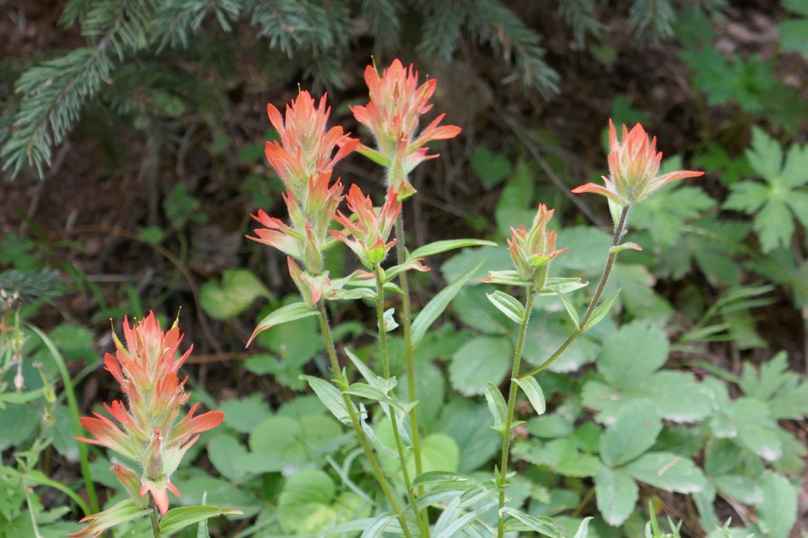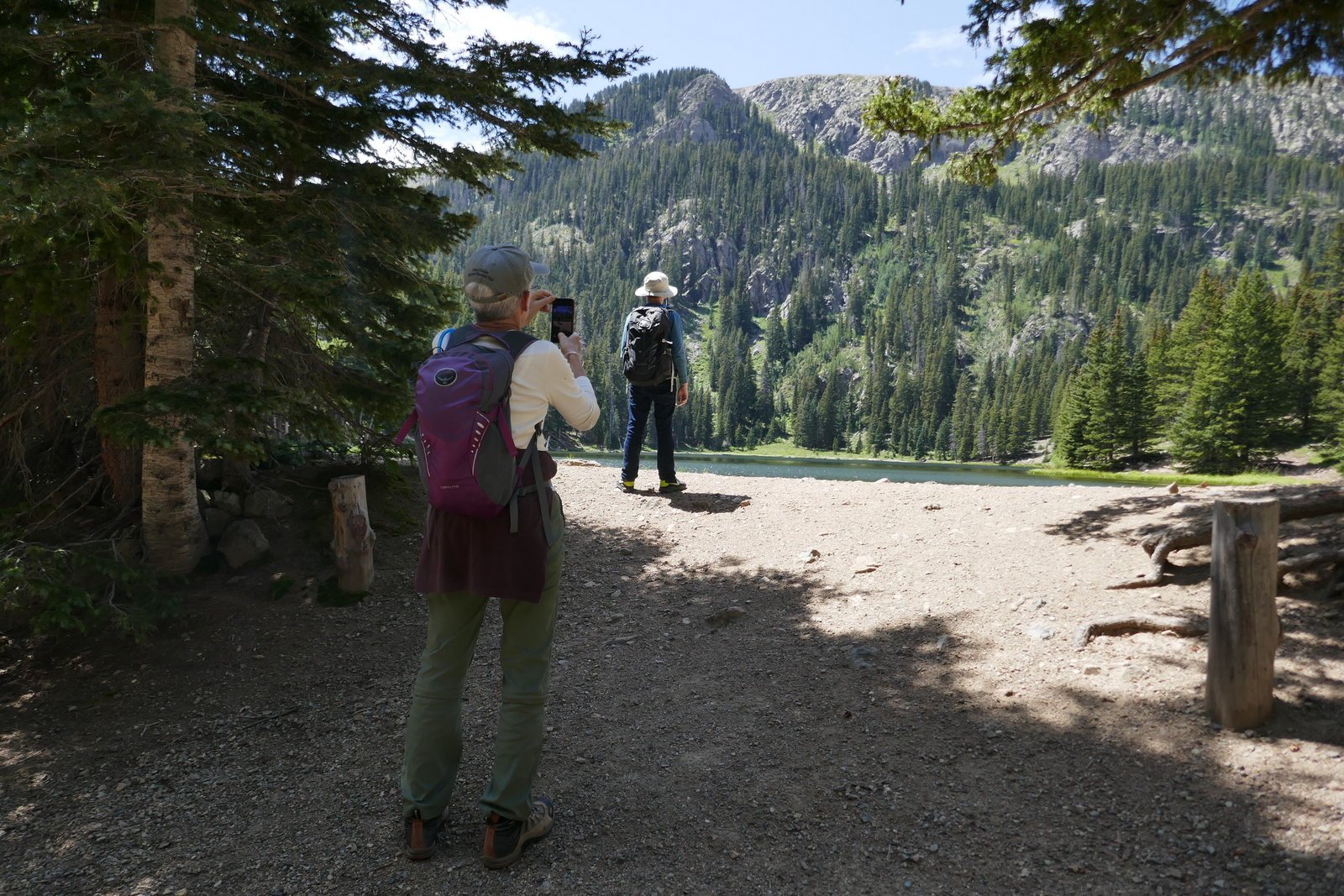 To get to the trailhead, drive through Red River on NM 578 and continue to the end of the pavement. Then continue on the first road to the right, Forest Road 58; because of recent rains this somewhat rough gravel road had water running down the road in some sections. (A high clearance vehicle is preferable, but there were “street” autos in the parking lot.) Continue for a bit more than a mile to the parking lot. The trail proceeds from there.