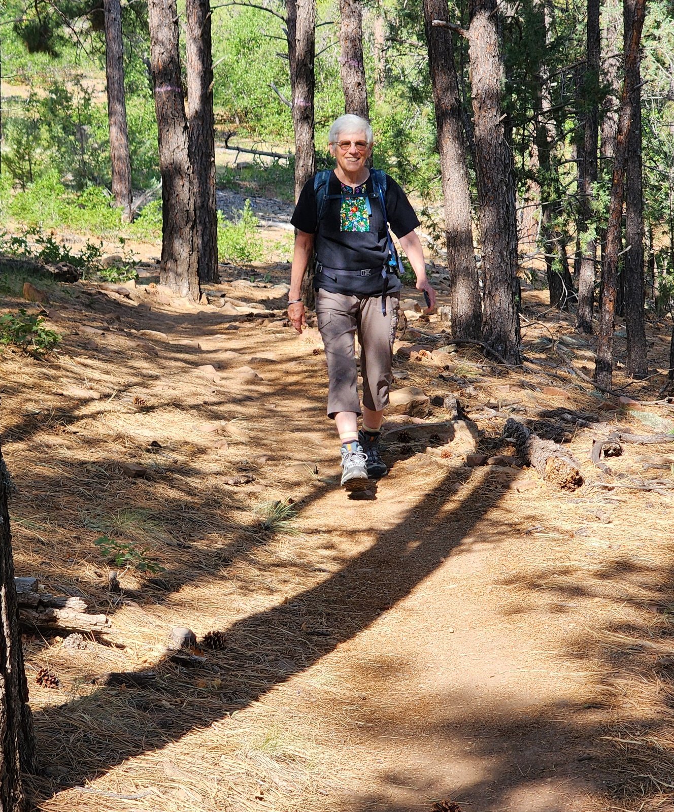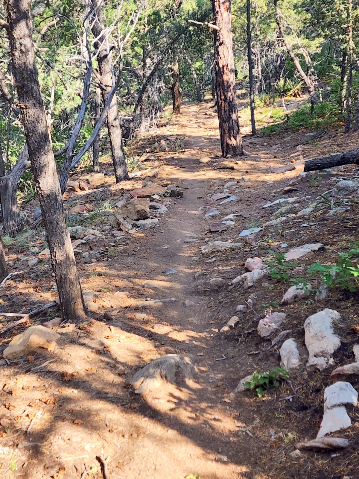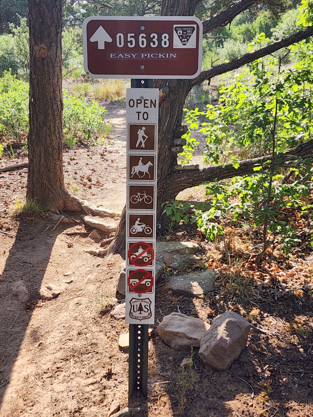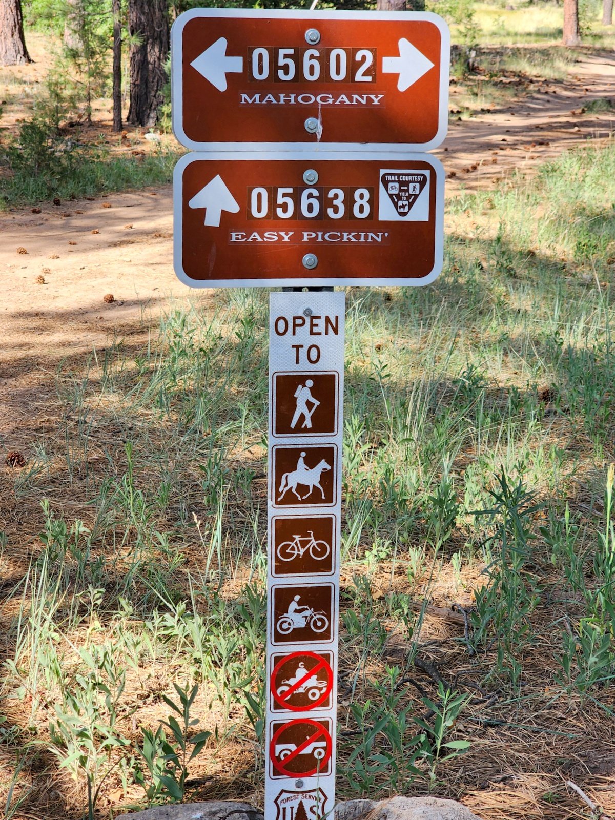 It is great to get back on the trail after many months dealing with medical issues. Oak Flat is a perfect area – well used smooth trails, generally smooth and with easy and minimal elevation changes. Plus, it isn’t far from home, it is an open forest of oak and ponderosa pine trees, and we can have breakfast or brunch at one of our favorite places, Roots Farm Cafe in Tijeras.