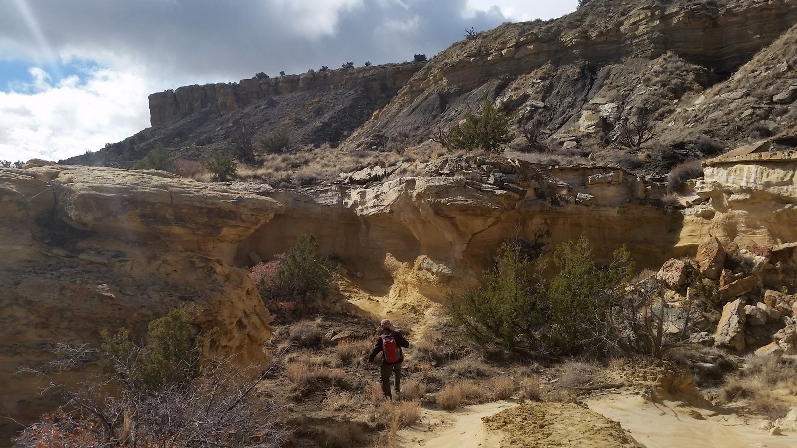 Jay here: There are two simple reasons we keep going back to the Ojito Wilderness. Number 1 is the incredible geology of the place. There’s endless variety to marvel at and it always comes with some amazing backdrops. Number 2, we’ve barely scratched the surface of possible known trails and unknown trails. Number 3 (even though I said there were 2 reasons), the time to go is now. Summer will be too hot. Which brings me to the wicked sleet storm that descended on us during the last quarter mile of our hike. Only in New Mexico could a storm like that come up so fast and then stall over the top of us. It made for a slippery escape from an already hairy two-track, and yes, thank you 4-wheel drive.