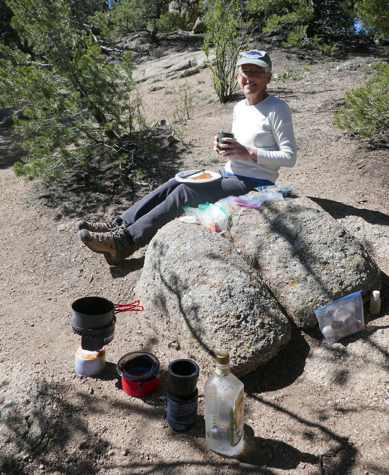 Hiking up Piedra Lisa is strenuous; likewise hiking back down the trail is strenuous in a different way. Because it is quite smooth but in many places with a layer of sand, careful management of downhill speed/energy is required. This can be as wearing on muscles as the climb up, ‘tho different muscles. It is, however, contributing to our conditioning to do more and sometimes strenuous in the coming months.