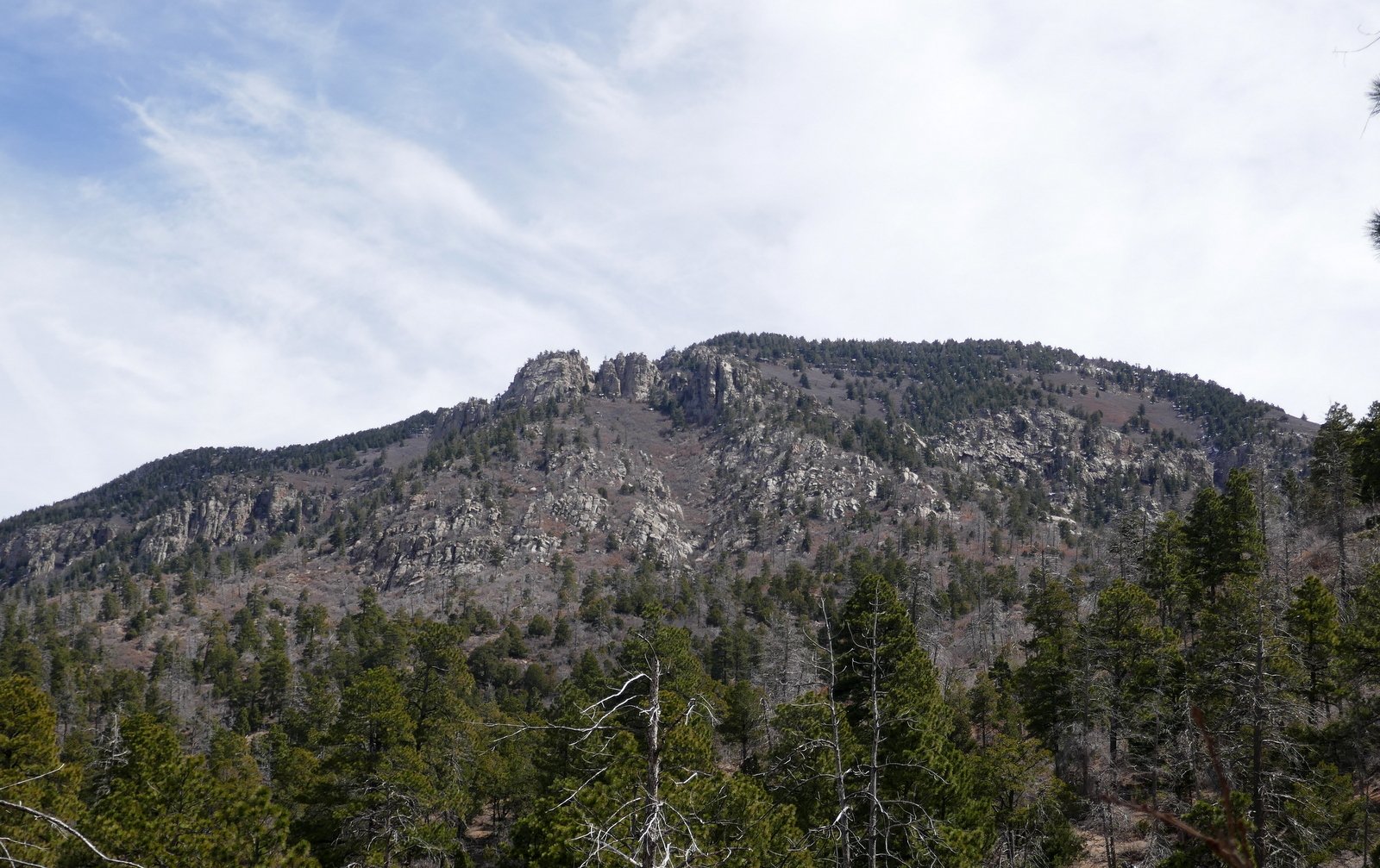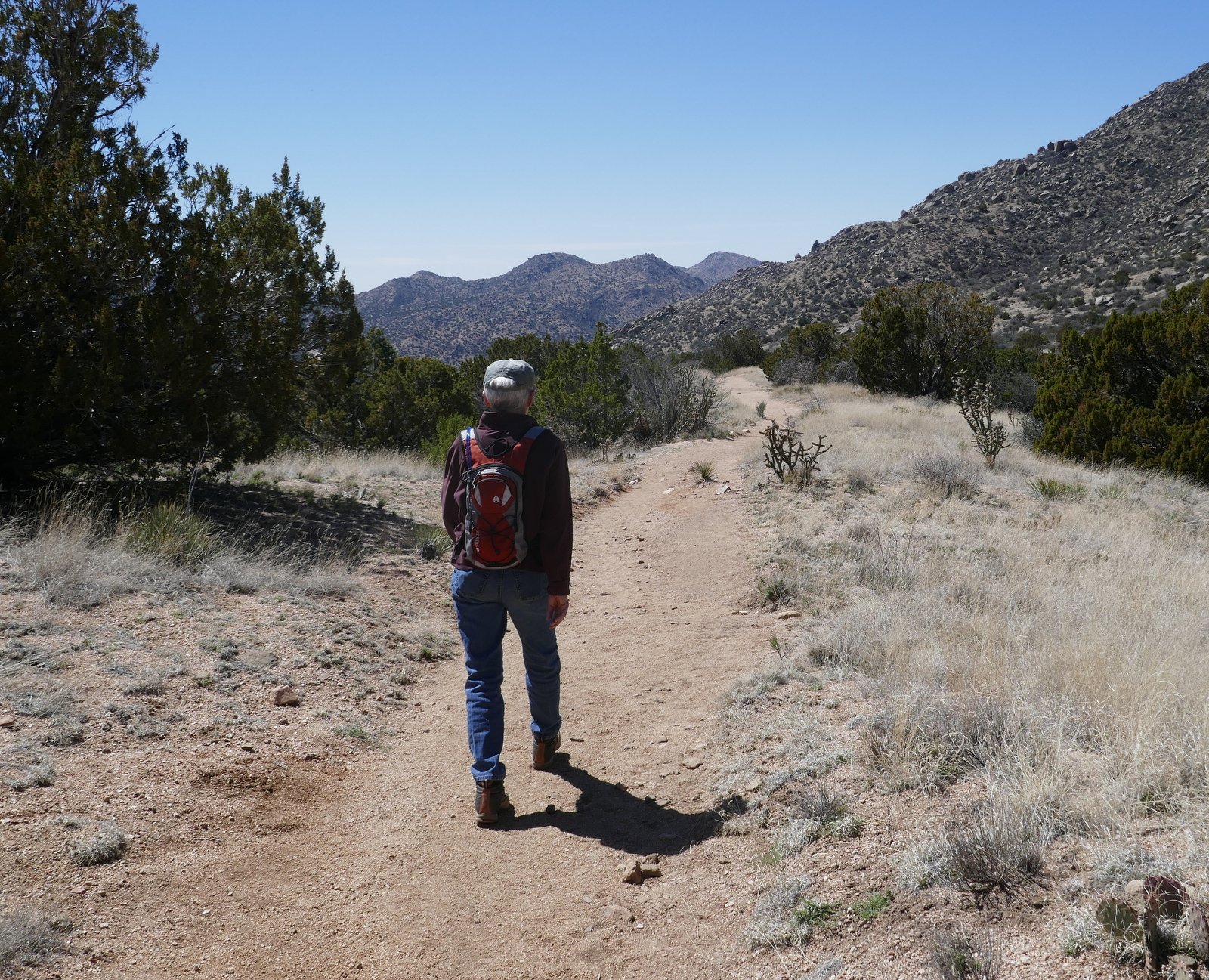 ‘Twas our recollection that Pino is a gentle, continuous slope so we could get -some- elevation gain without much strain. And the views of the northern Sandias above us and Albuquerque and the Rio Grand valley below us would reward our effort. So it was.