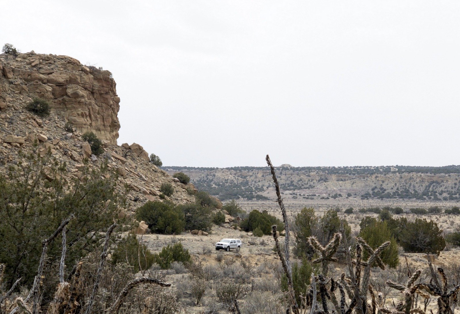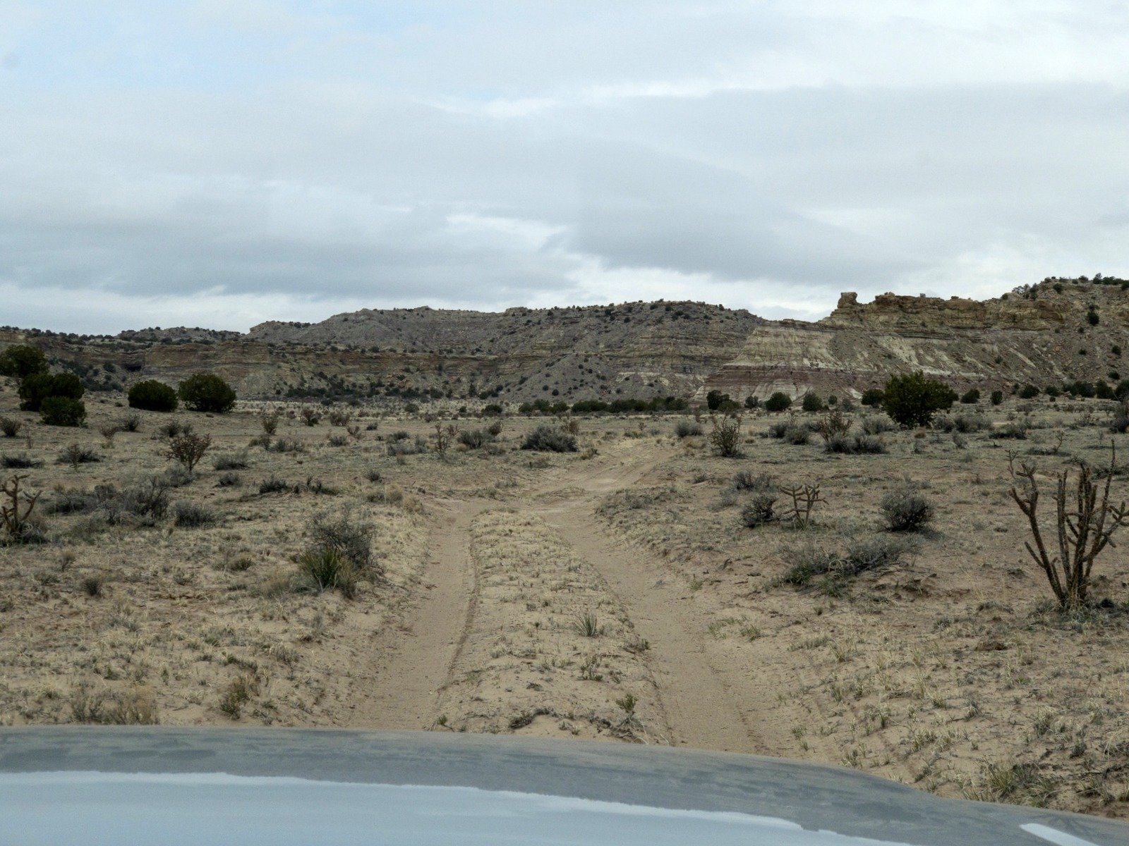 From there we proceeded into an exploration of the northern extents of the Ojito Wilderness. The two-track was generally good, until that is we encountered a more challenging stretch – steep and somewhat washed out (I think one would need a high clearance vehicle for this stretch). Just past this stretch was a gate. Our first thought was to hike from here, but after a quarter of a mile on foot, the wind and cold caused us to reconsider – back to the gate (again only chained) and make this a DriveAbout.