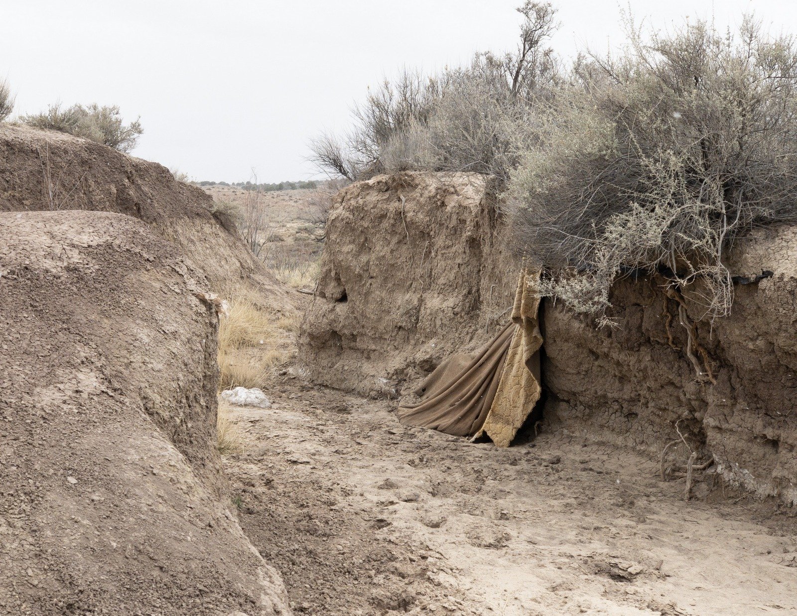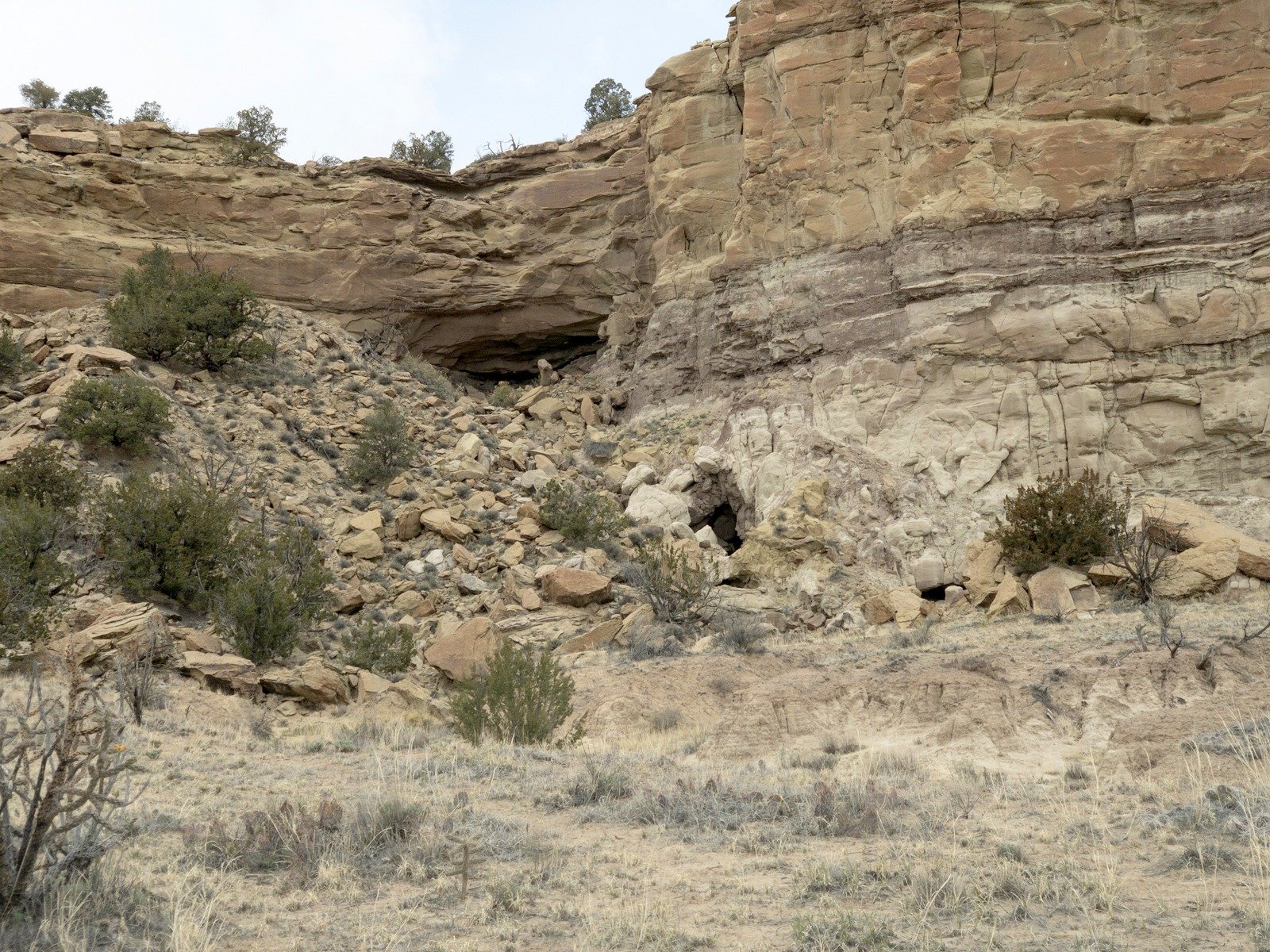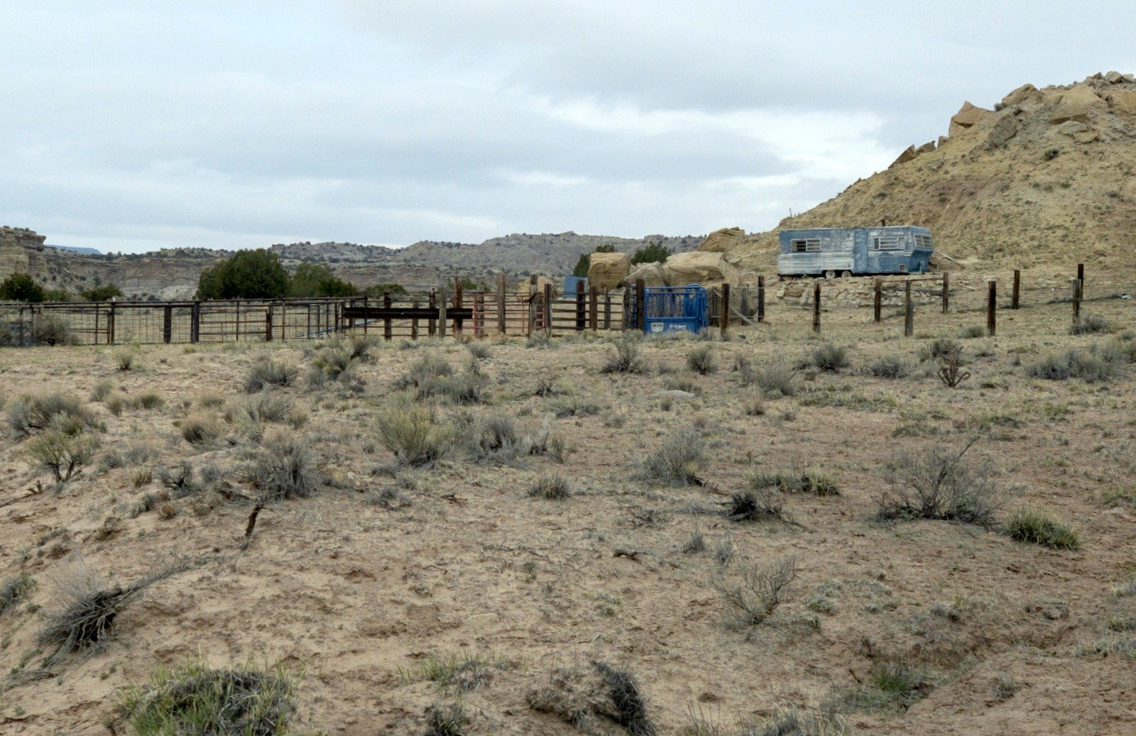 Continuing on what would be a ‘nice’ two-track, we headed southeast in the Querencia Arroyo with Cucho Mesa on our right and unnamed mesas ahead. Encountering a ‘Y’ in the two-track, we headed more westerly into a large basin; we continued until the two-track ended at the base of the mesa. Still curious about the area, particularly if we might get near territory familiar from other hikes, we returned to the ‘Y’ and went up the other leg (labeled on the topo map as a “jeep trail”). We proceeded until encountering a ravine crossing that was more than we wanted to challenge.