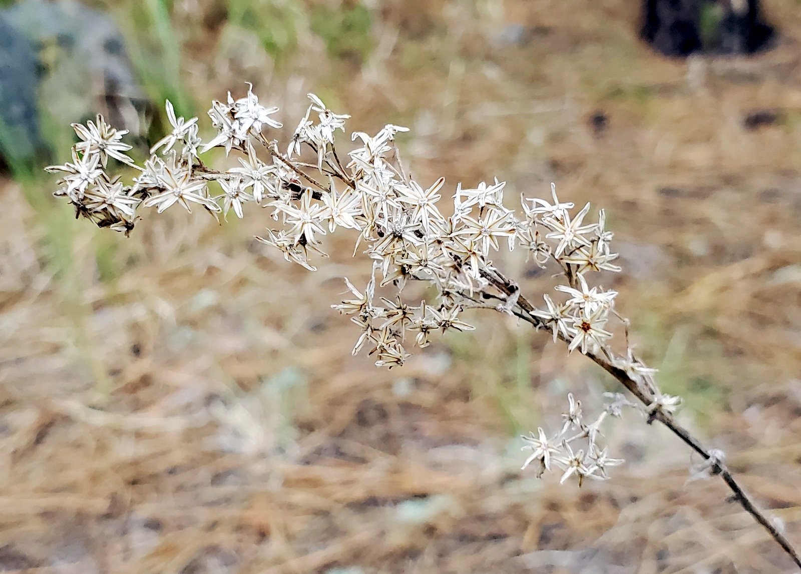 On the far side of the Meadow we hiked through more open forest, level ground, easy walking, generally following Redondo Creek. We crossed the Creek 2 or 3 times, working our way upstream until we found ourselves in -real- bushwhacking – thick growth of scrub oak and other plants, including one with thorns that seemed to reach out to grab us. With this, plus having been out for 3 miles, we chose to stop for our first mid-hike break, then start back to make this it our usual 6 mile hike.