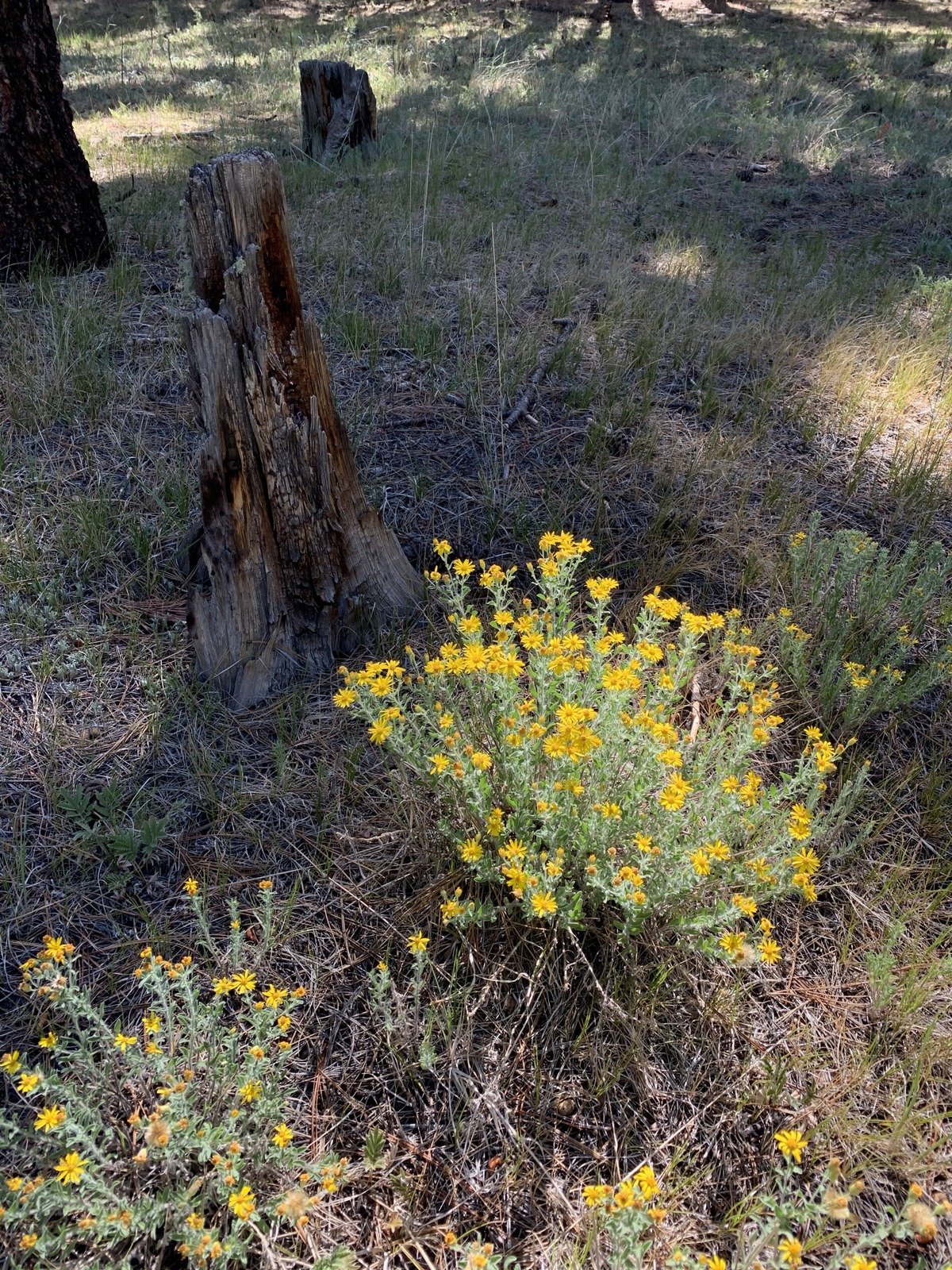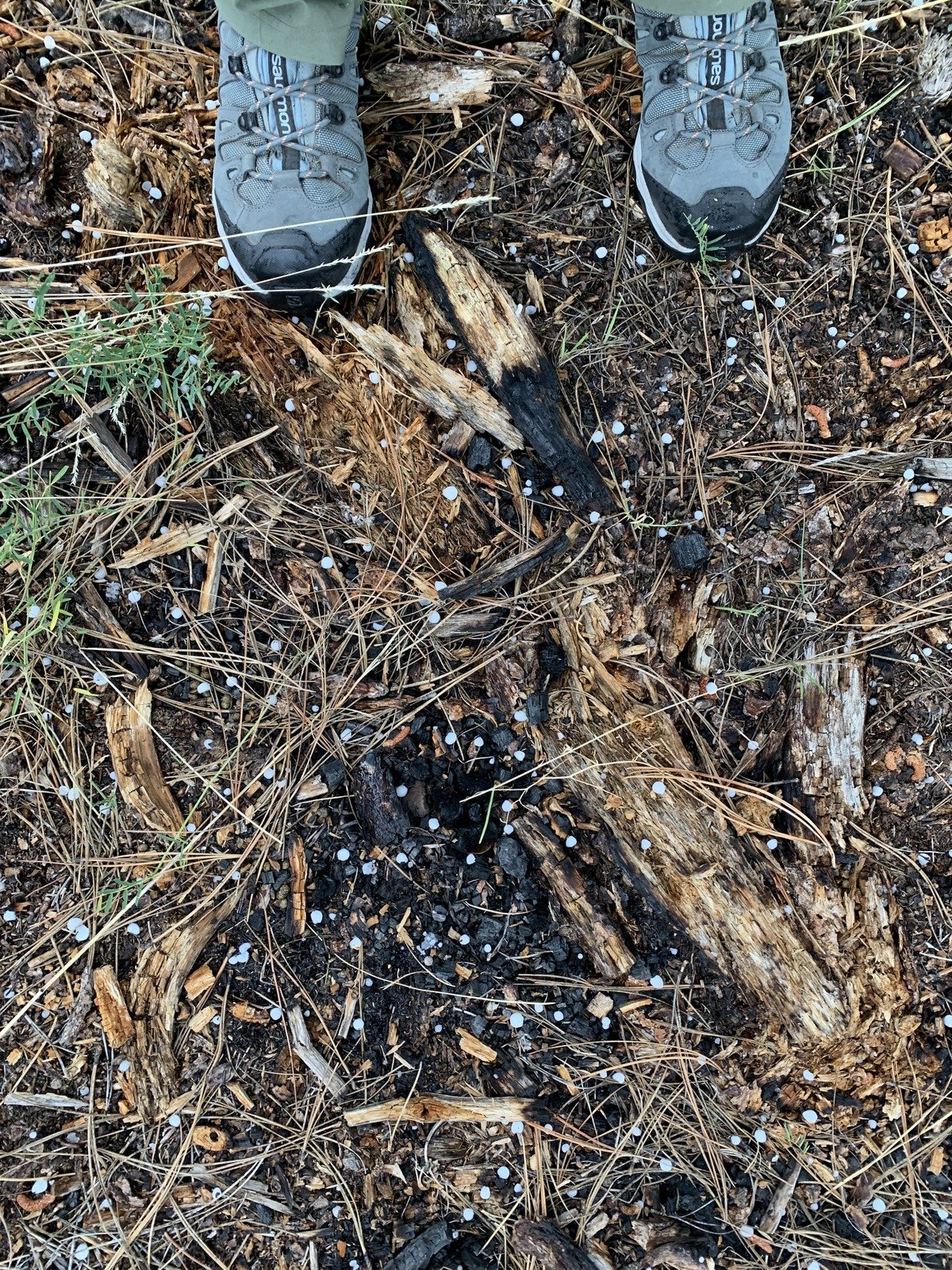 All across Banco there was evidence of fire, some areas from long ago, other instances more recent. Indications of recent burns coupled with large areas of wood chips led us to suspect this was from a recent thinning project. Some trees were cut down, chipped, and chips were spread about particularly on 2-tracks. In other examples, the trees and their stumps must have been selectively burned; there was no evidence of fire beyond a few feet from the stump or trunk. For many of the burned cases, there were tunnels where roots must have completely burned out. This all seemed strange.