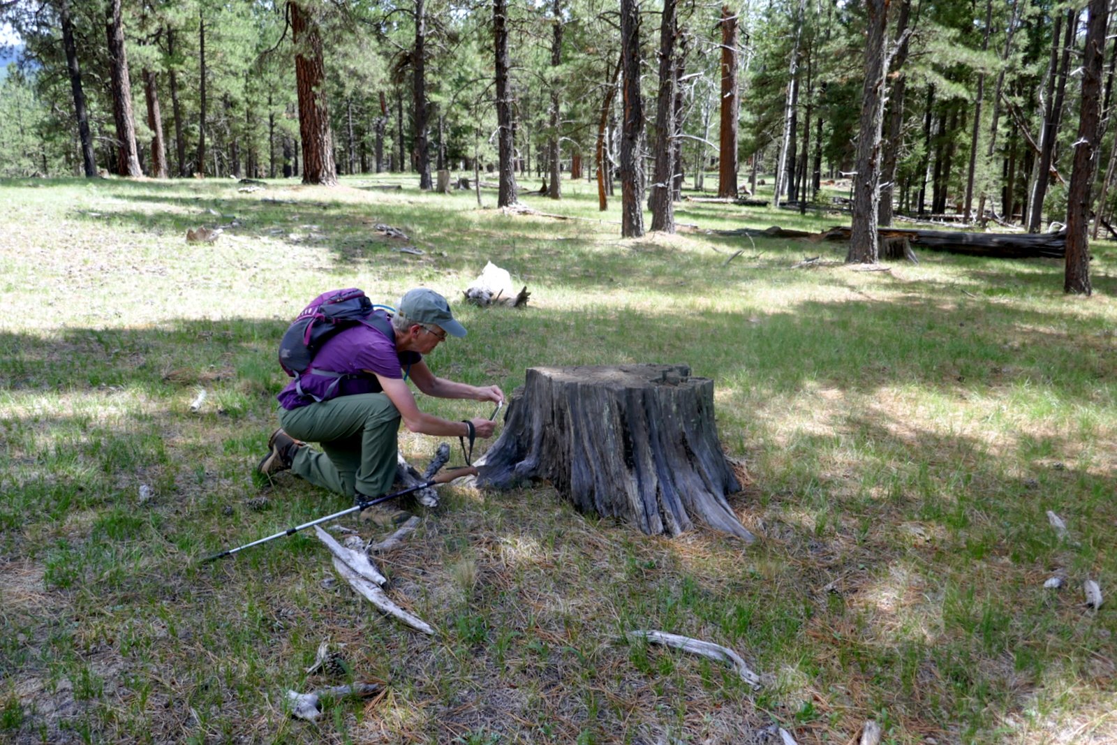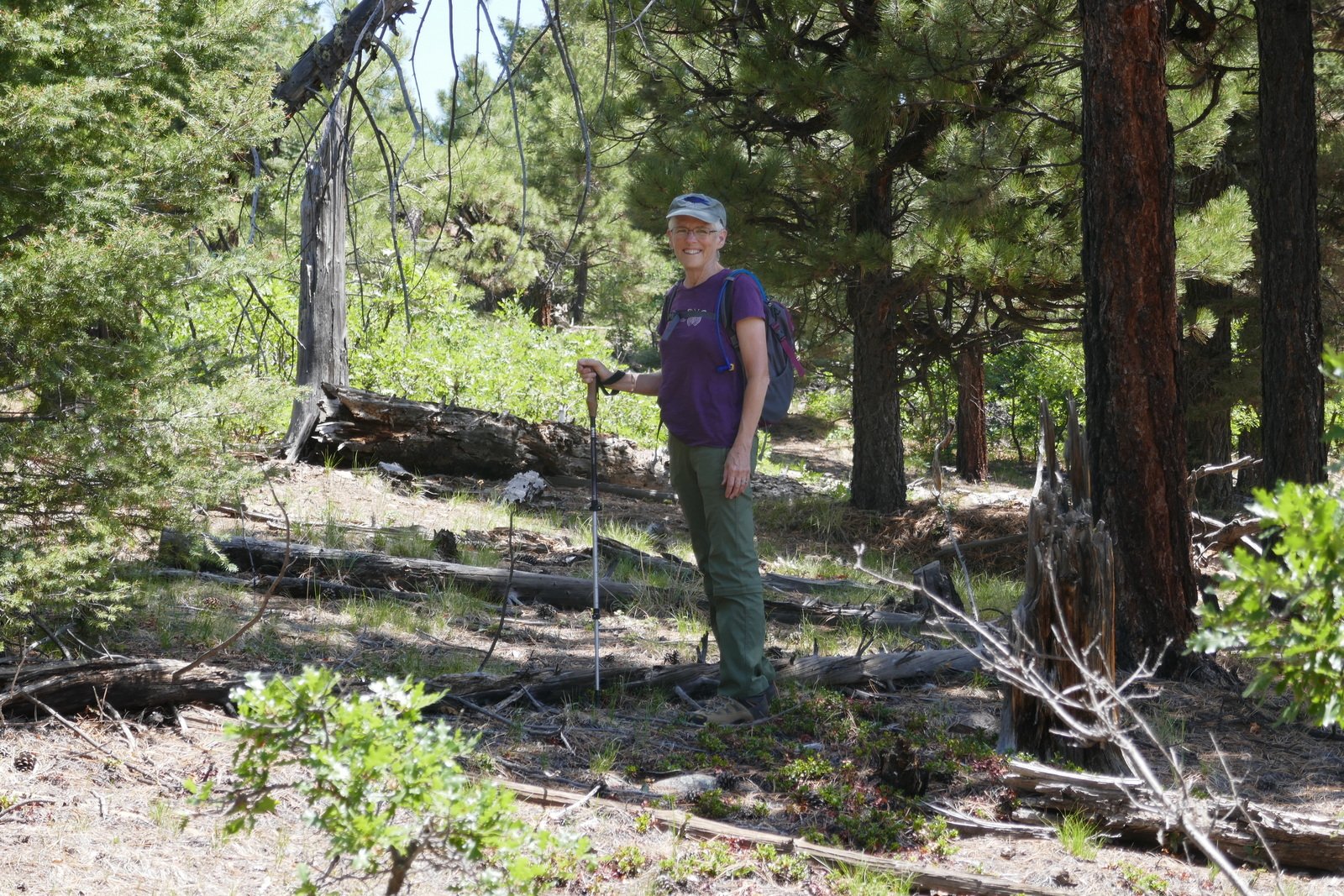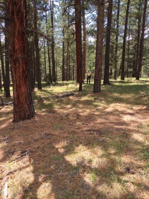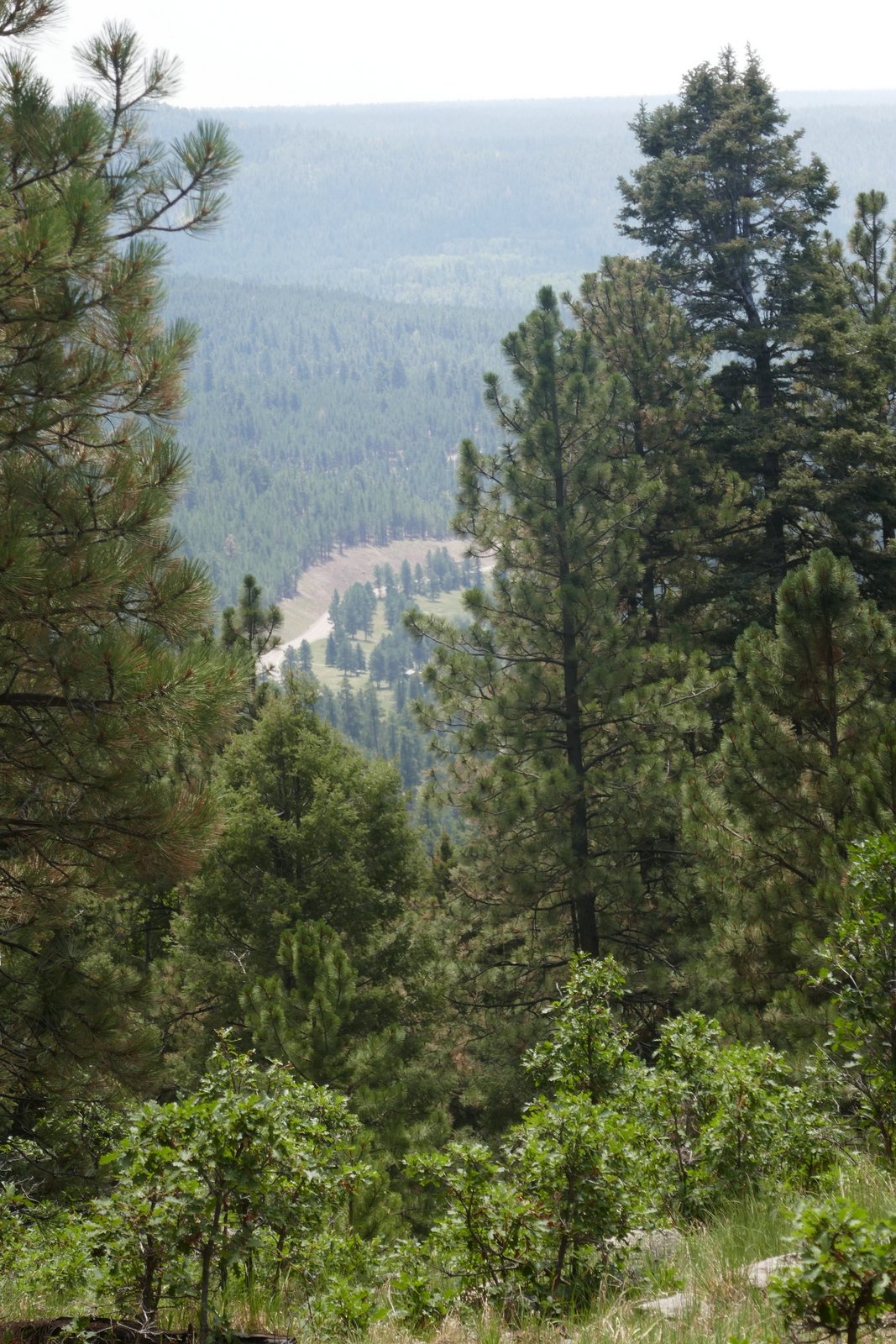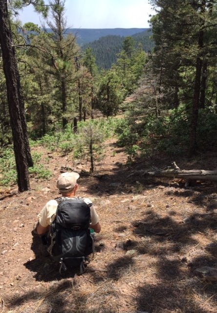 Once on top, close to 9,000 feet, we enjoyed a nice open forest with occasional views across canyons to other canyons and mesas. We checked our track against the 2nd sketch, and based on our experience and lessons learned (below), we plotted our return track to follow a ridge rather than a canyon back to NM 126 and the campground. The proved to be a good choice – the descent was steady but not steep, and we were able to follow game trails all the way down (those deer and elk have it figured out). Nearing the road we found open spaces that should be ideal for campsites with short backpacking from the road.