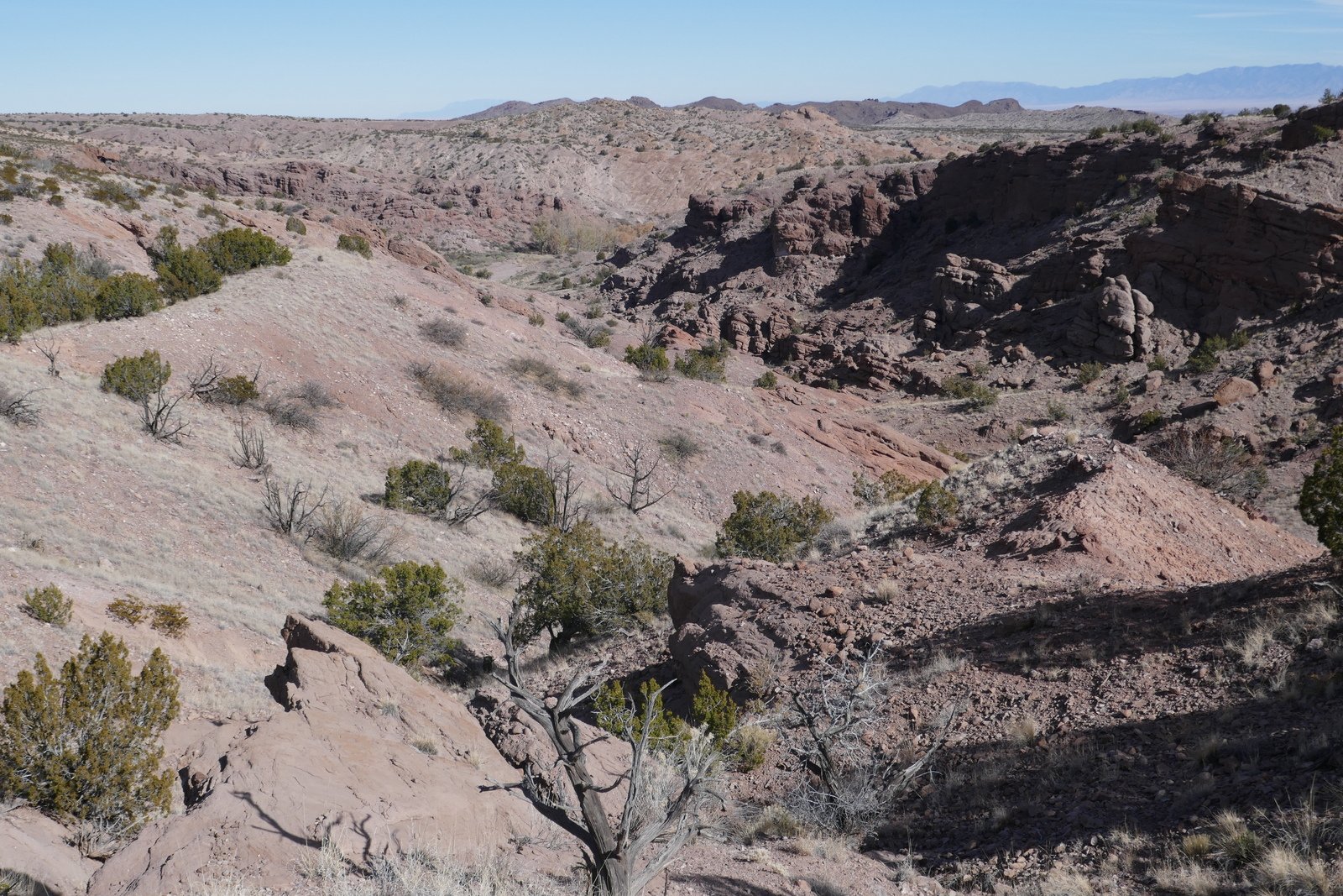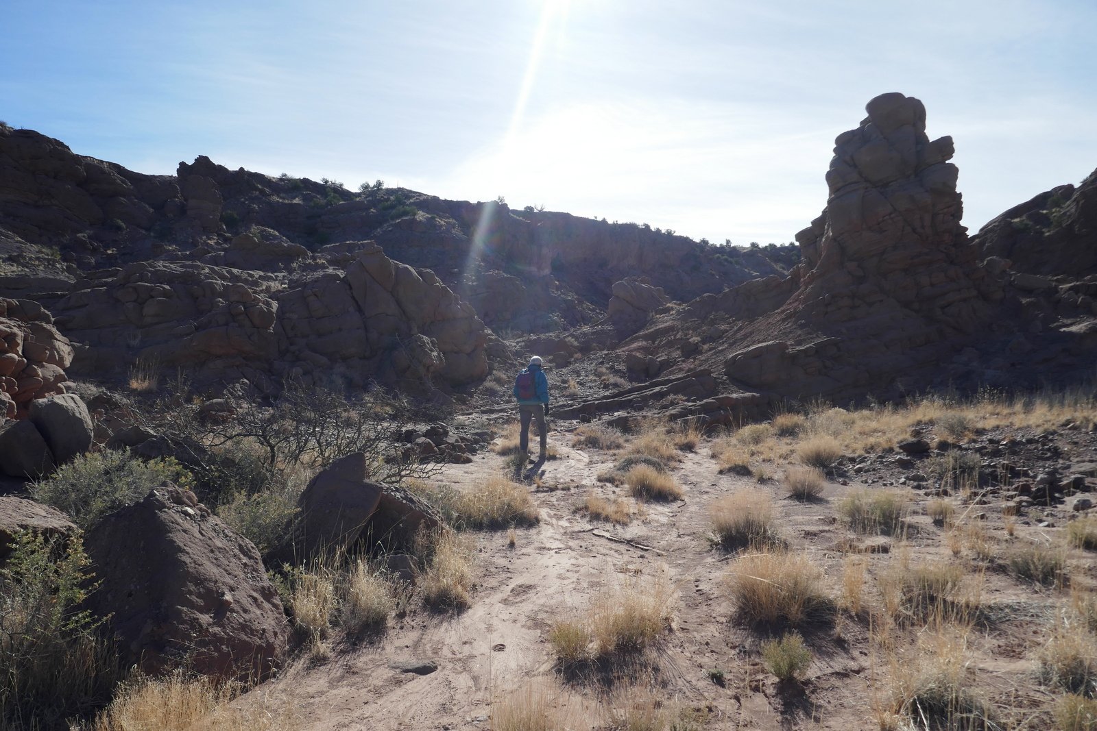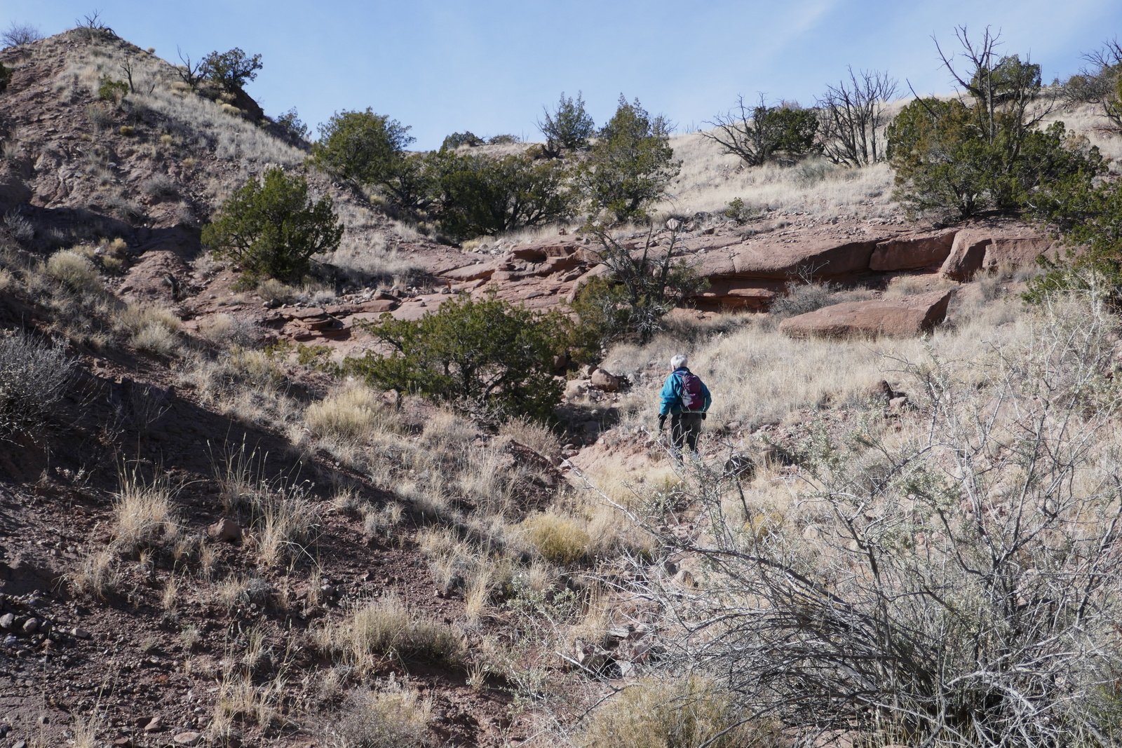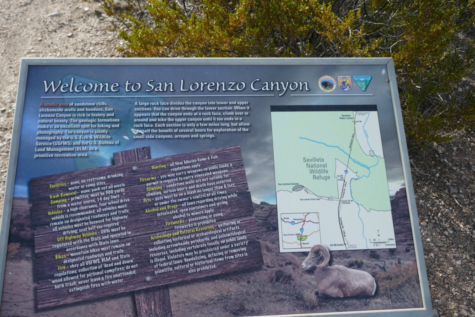 Tis winter, and again for this hike we choose territory without lots of trees, reserving such shaded areas for summertime hiking. I visited San Lorenzo Canyon back in 2014 with Vince, and thought there must be more to explore, so headed down Socorro way with Pat on this chilly winter day.
