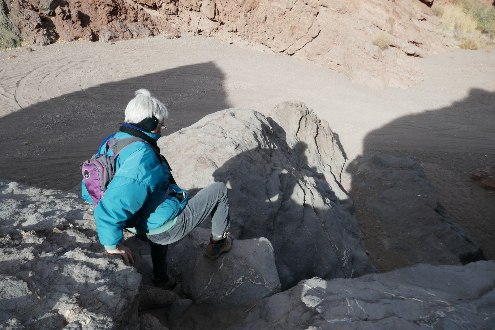 As the shadow of the Canyon wall started intruding into our break-space, we packed up and headed back down the Canyon. We wondered if we would find an easy down over the blocking rock or would we have to find a way bac