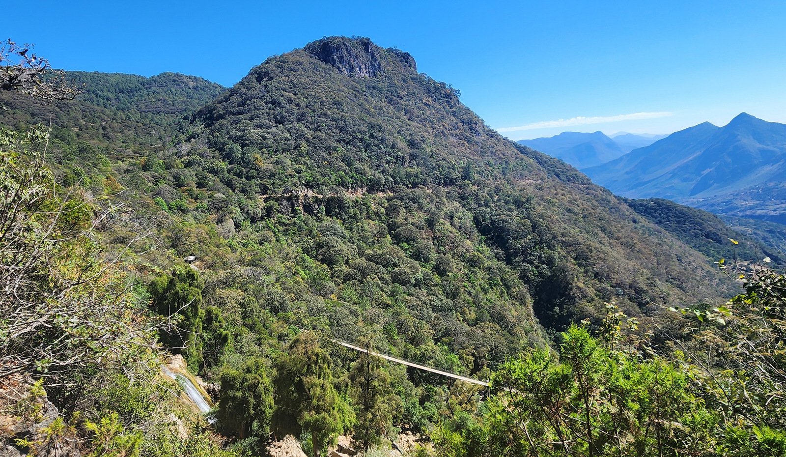 This was a visit to a special attraction for Yosondúa, the Cascada Esmeralda, a large waterfall made up of numerous cascades some 300 feet high. It was not much of a hike, but rather a walk down from the parking place to the base of the waterfall.