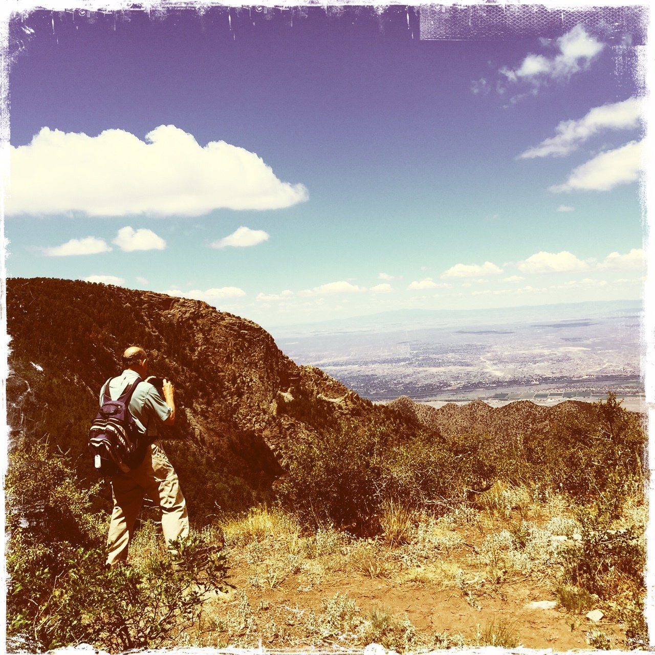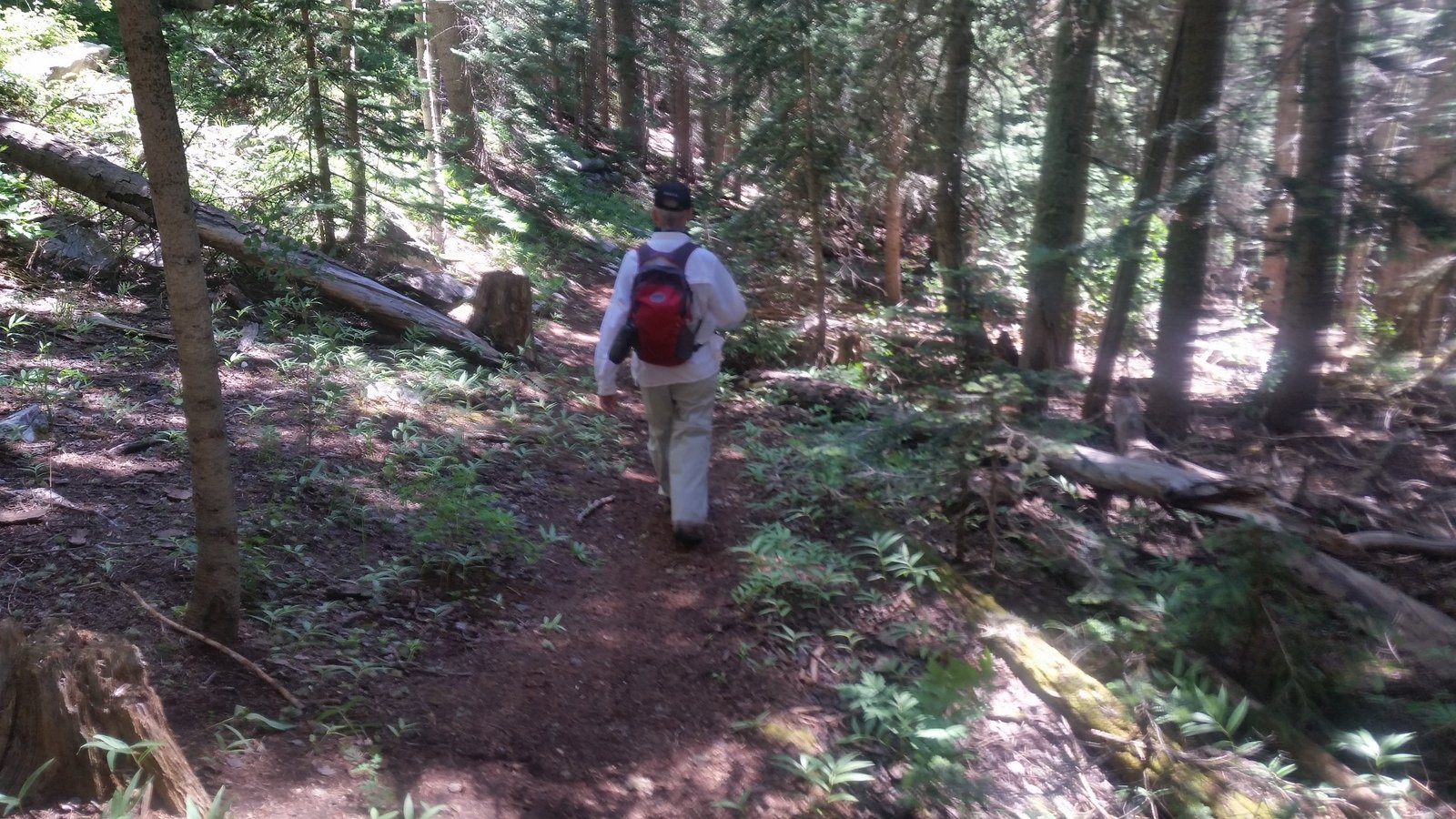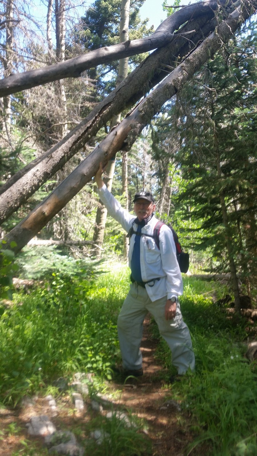 ‘Twas to be a hot day at 5000 feet elevation in Albuquerque. So we went “to the mountain”, high up on the east side of the Sandia Mountains. The Survey Trail, used in the winter for cross country skiing, makes for a very nice hike in the summer. It starts at 10,275 feet elevation where it is cool (58 degrees when we started) and stays close to that elevation throughout.