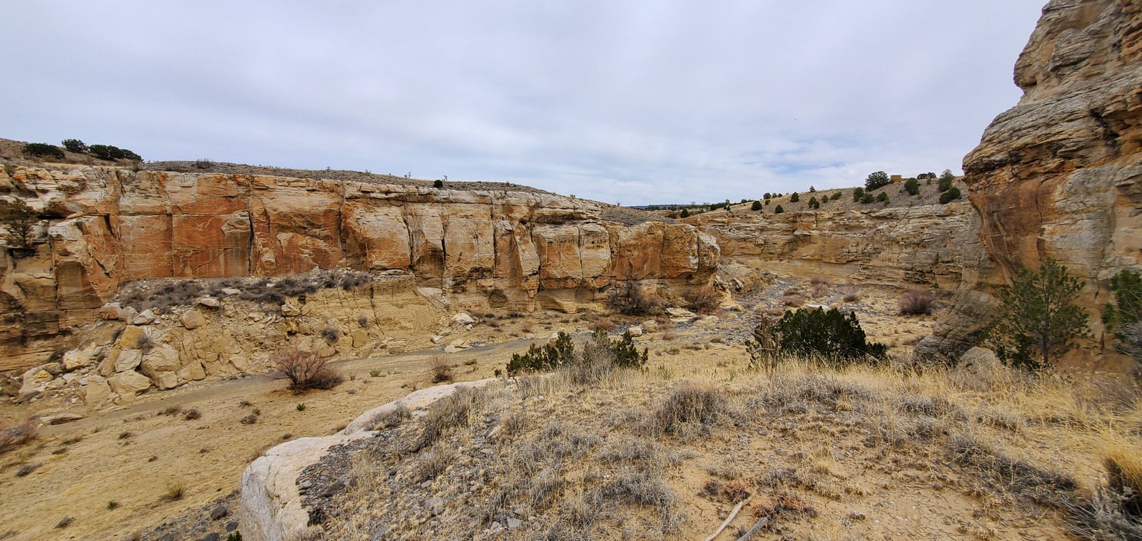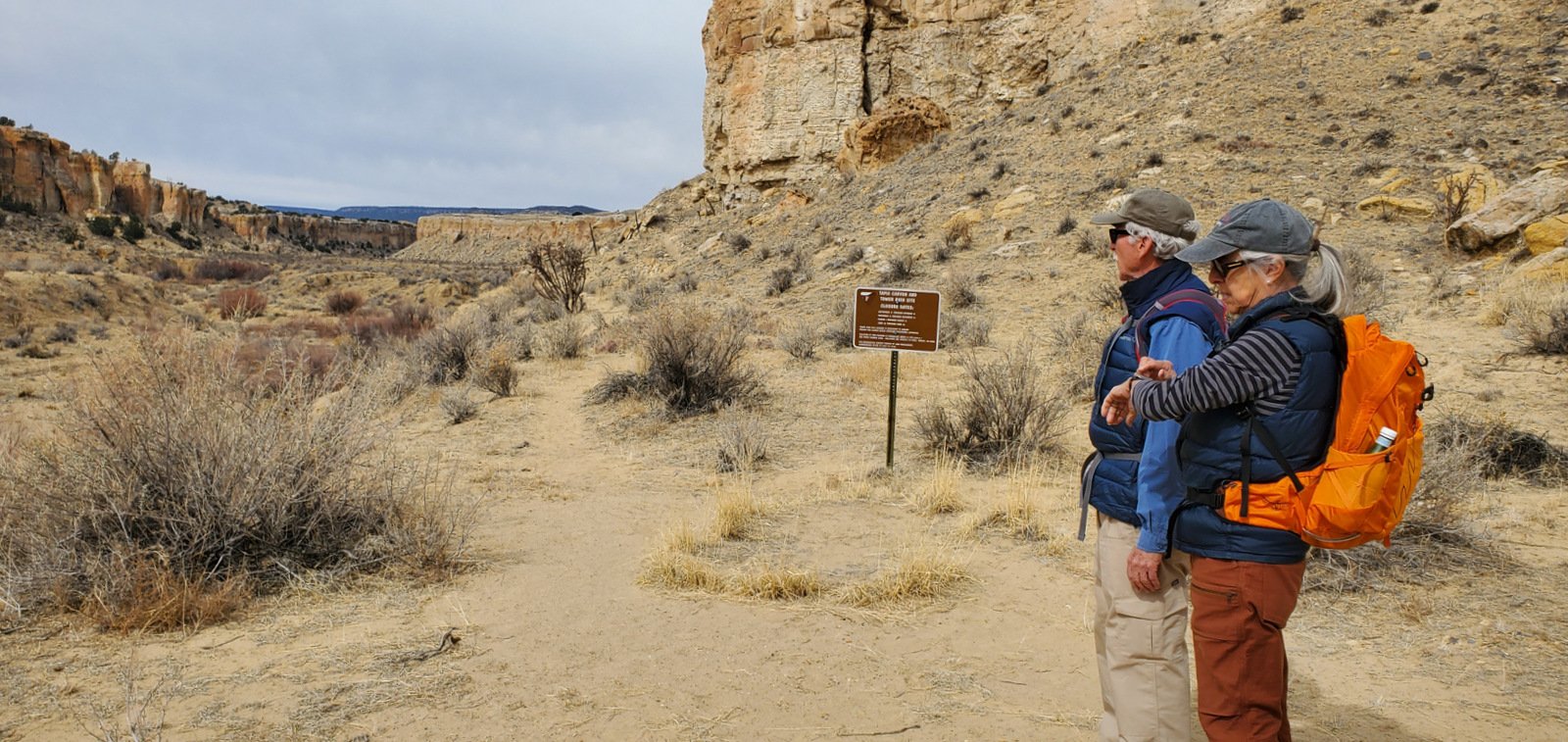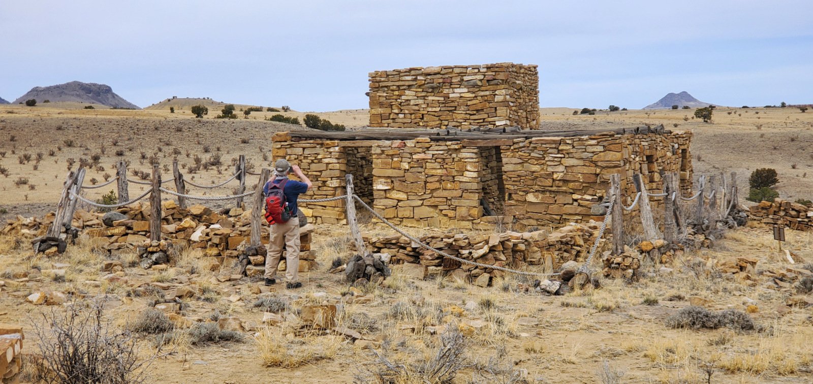 So up onto the mesa we went, looked at the block building and kiva circles of rocks, then continued on to an easy descent back into the canyon.
