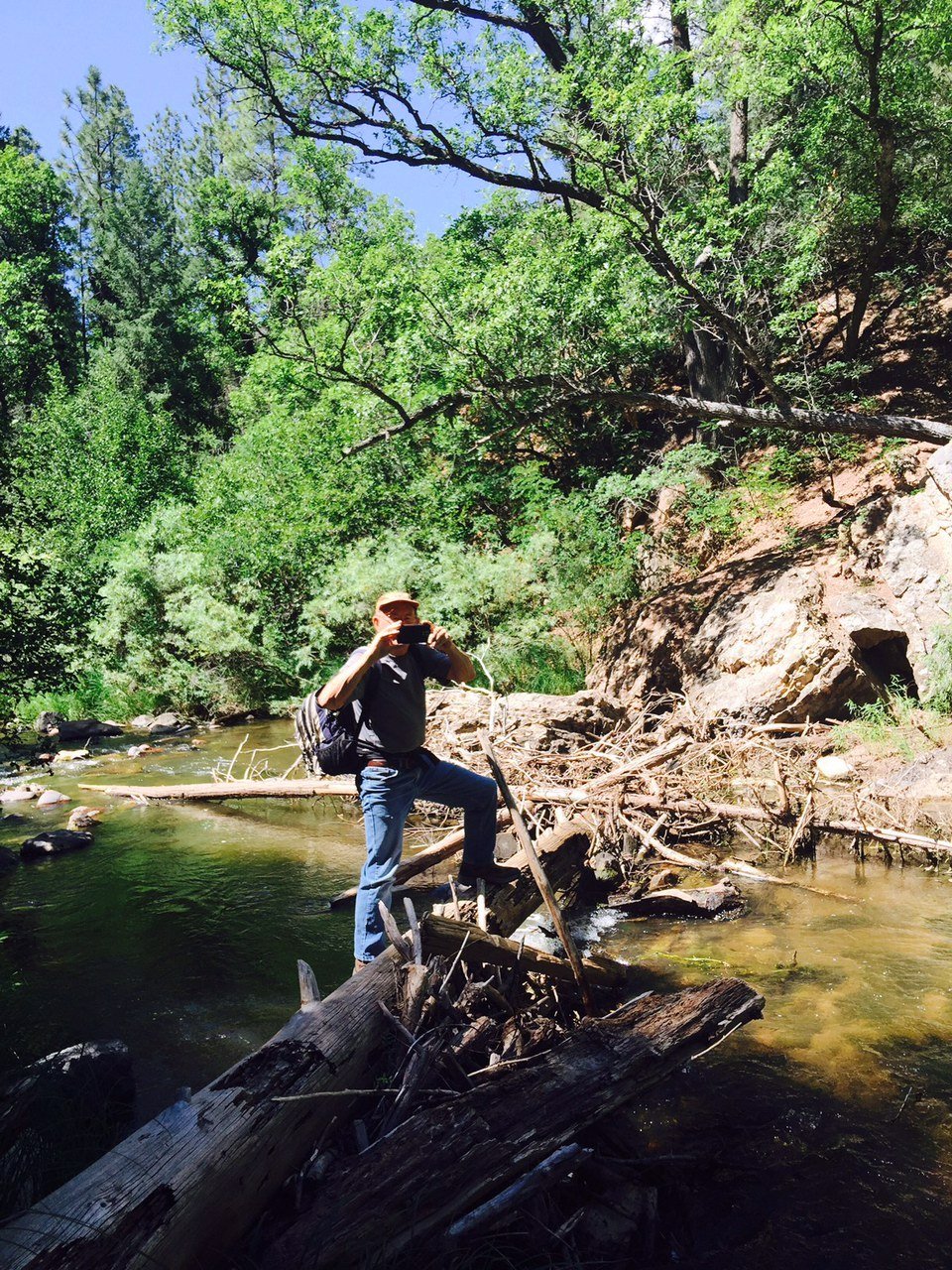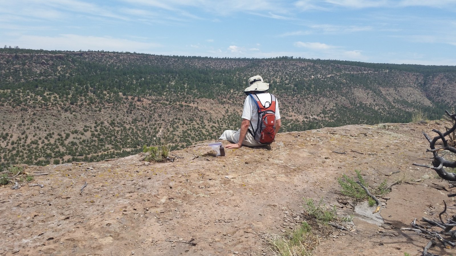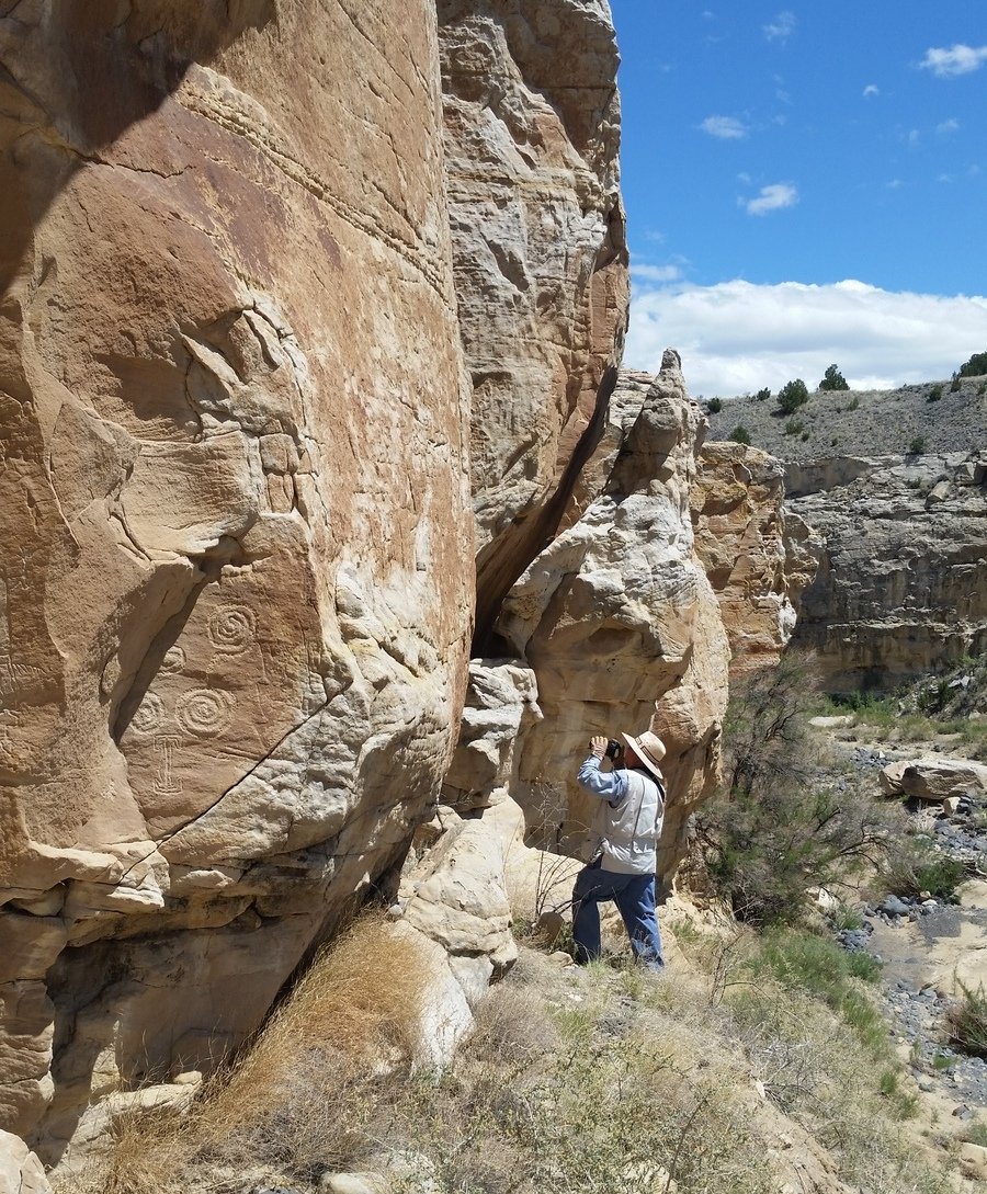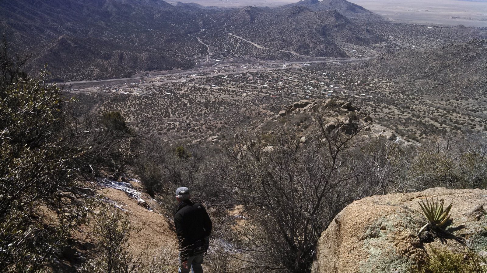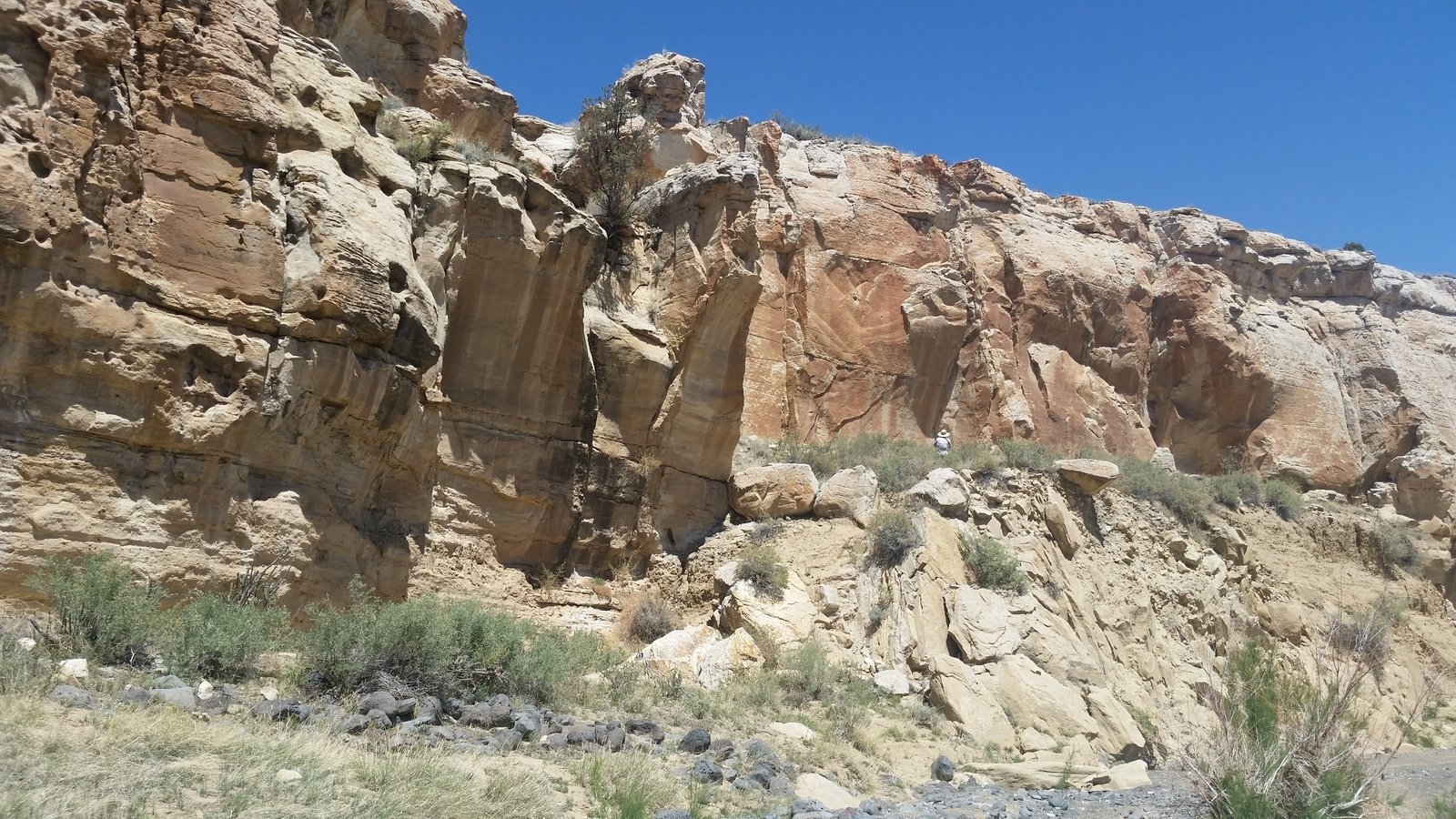 The Box is a short canyon with US 60 passing at its mouth.  ‘Tis a favorite location for rock climbers, working the eastern wall of the canyon; we saw 10 or so people ‘on the wall’ the day we visited. The photos below give one an idea of the depth of the canyon – look closely and you will see Vince down in the canyon’s bottom.
