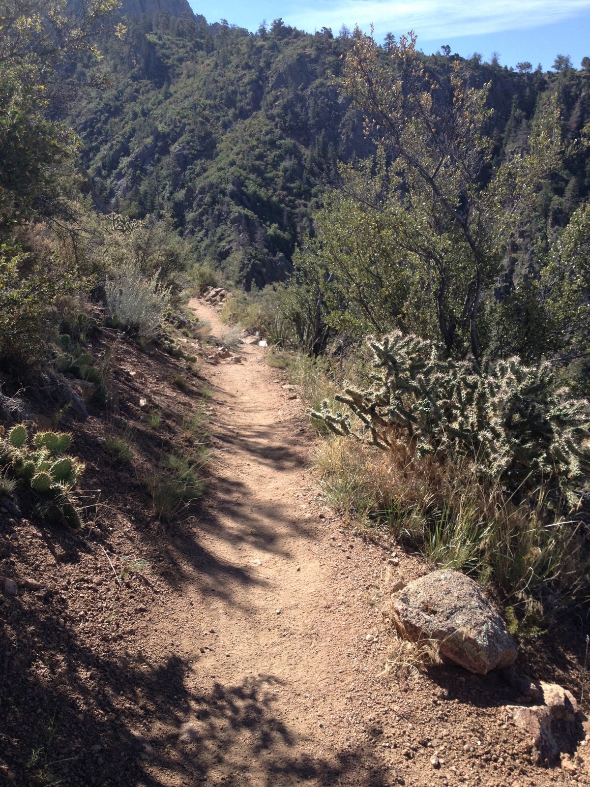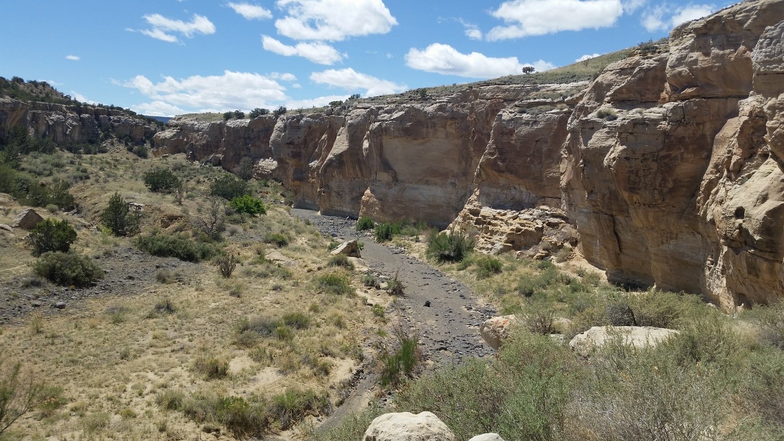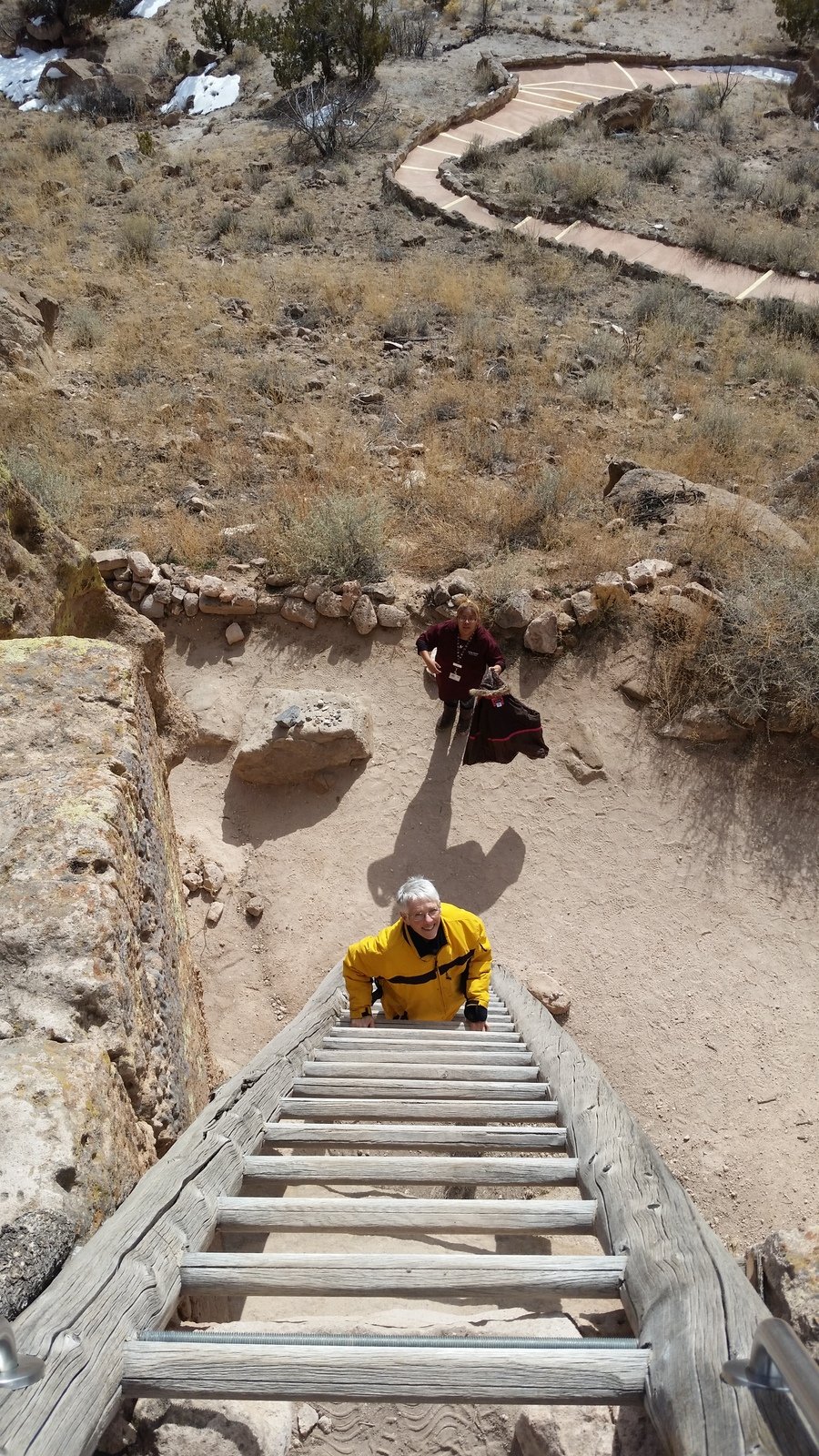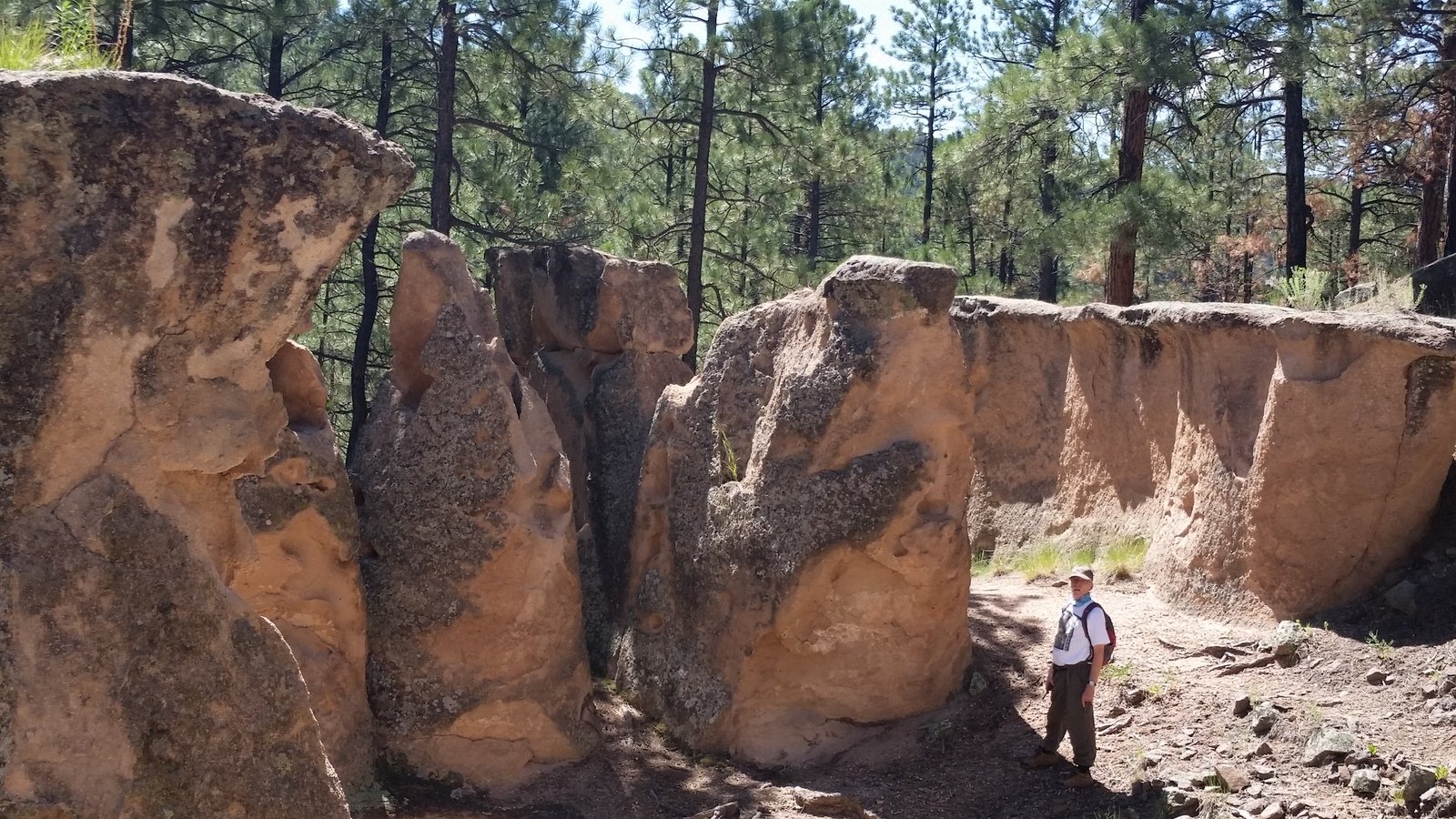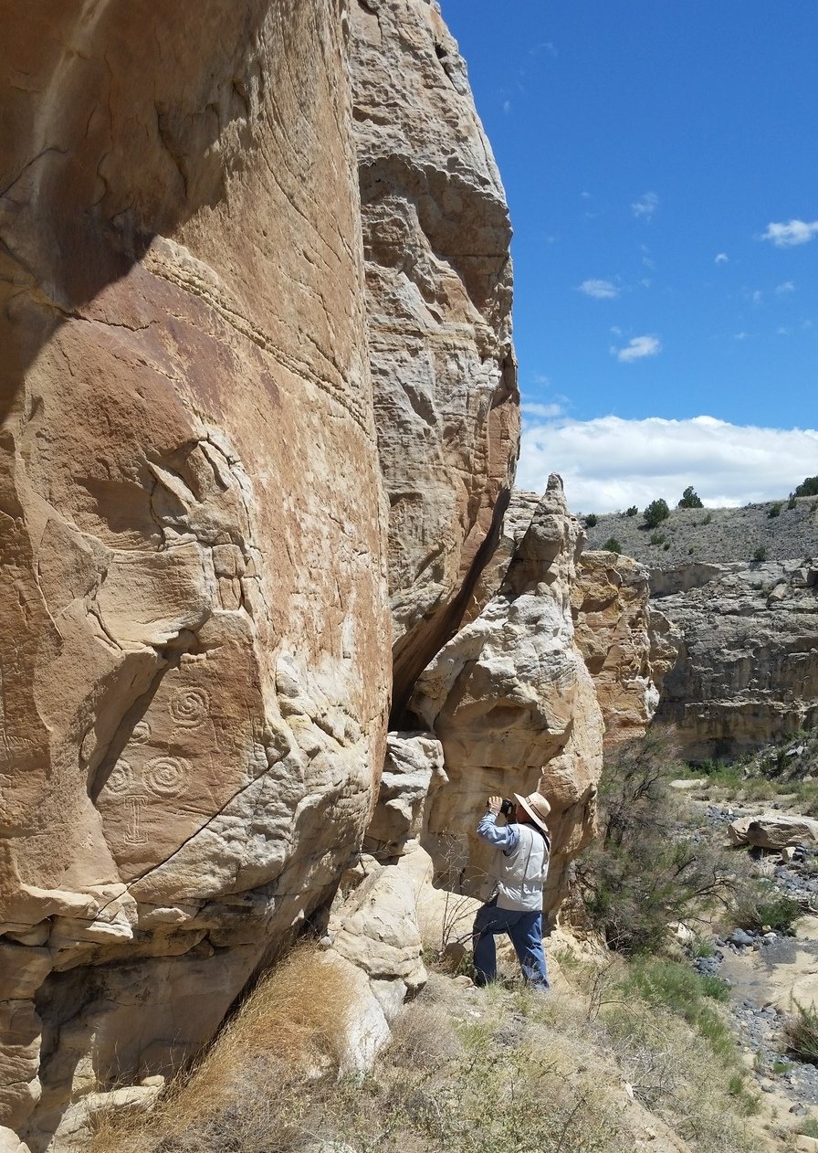 The Box is a short canyon with US 60 passing at its mouth.  ‘Tis a favorite location for rock climbers, working the eastern wall of the canyon; we saw 10 or so people ‘on the wall’ the day we visited. The photos below give one an idea of the depth of the canyon – look closely and you will see Vince down in the canyon’s bottom.